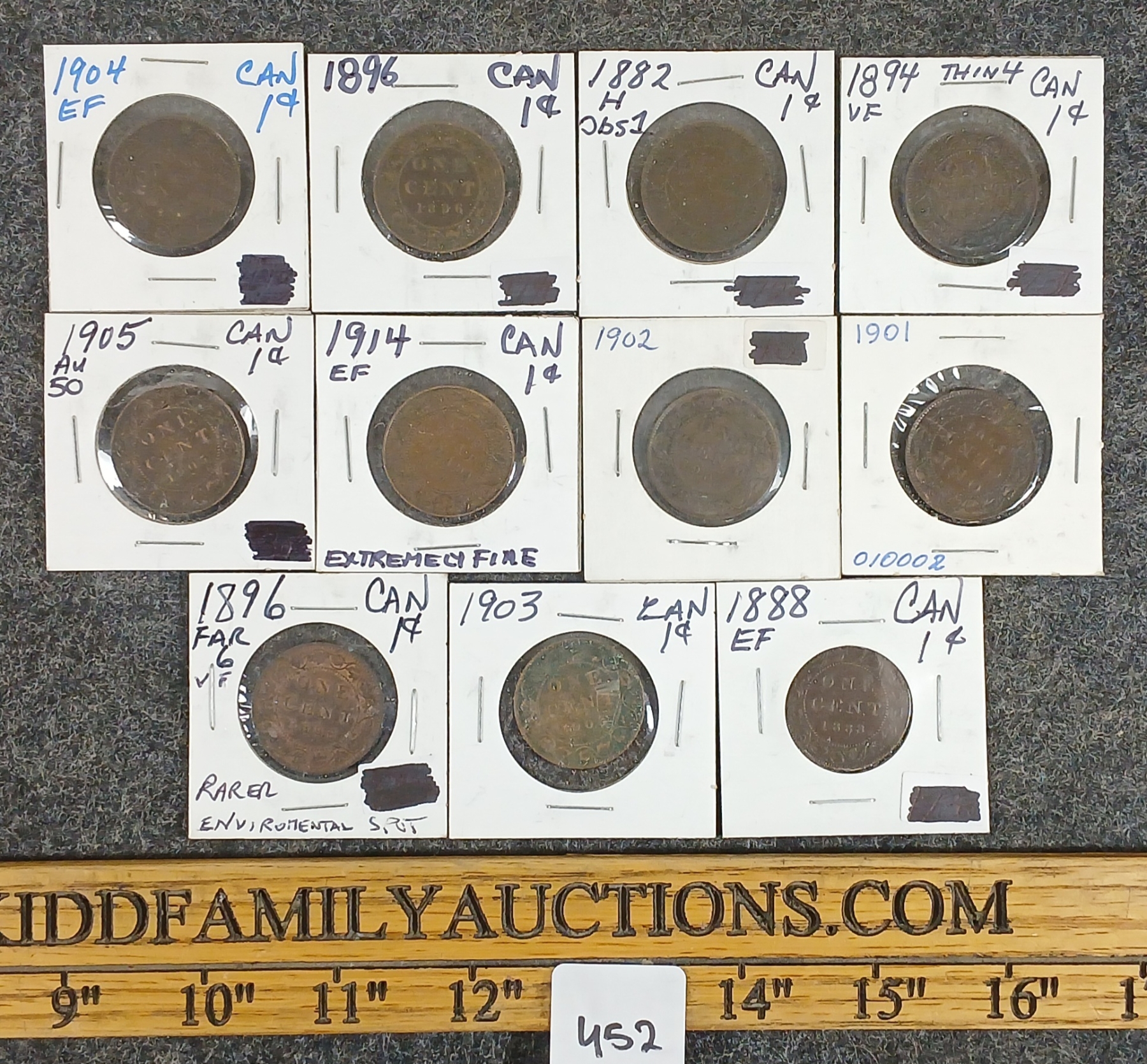 Lot 452 LOT OF 11 - 1882-1914 CDN 1 CENT COINS