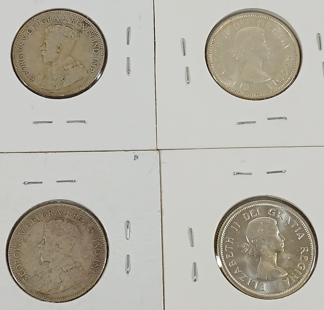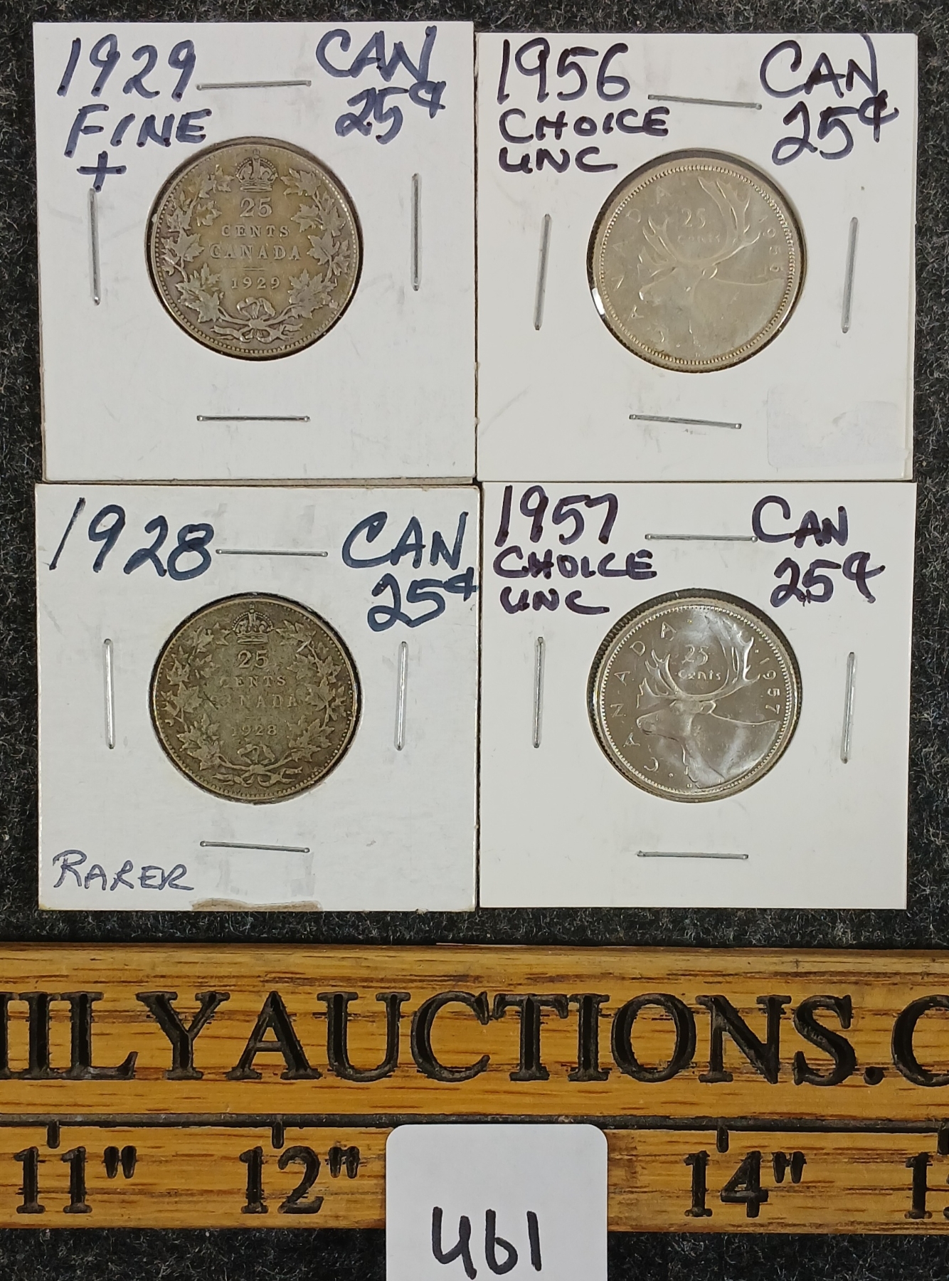 Lot 461 LOT OF 4 - 1928-1957 CDN 25 CENT COINS