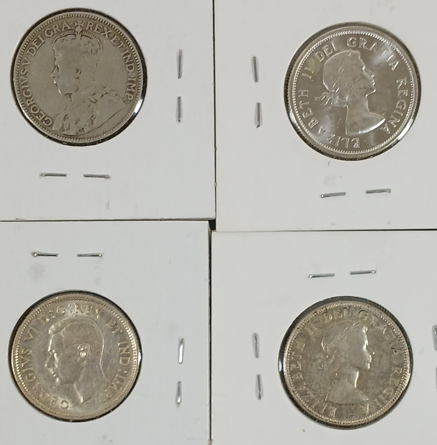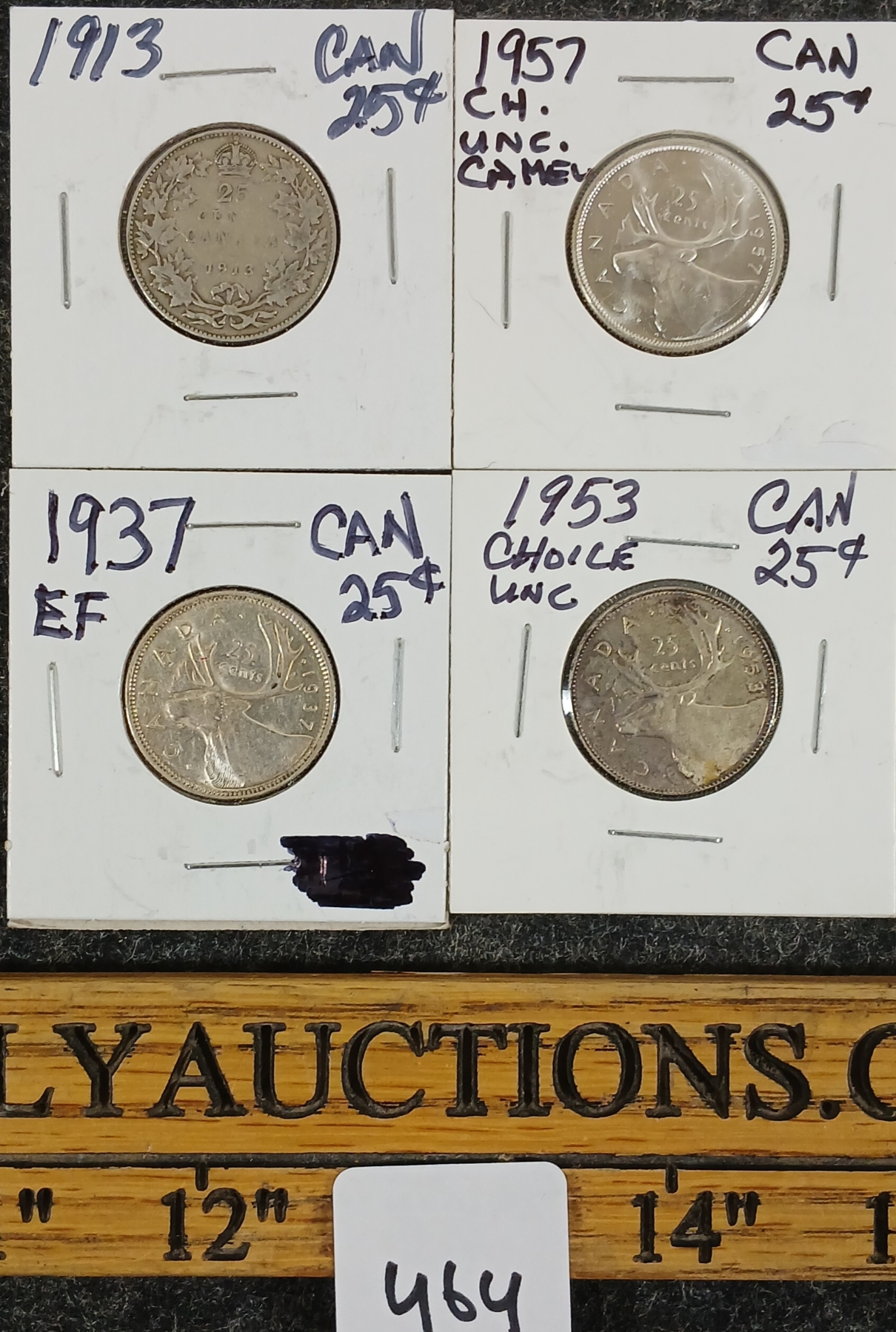 Lot 464 LOT OF 4 - 1913-1957 CDN 25 CENT COINS