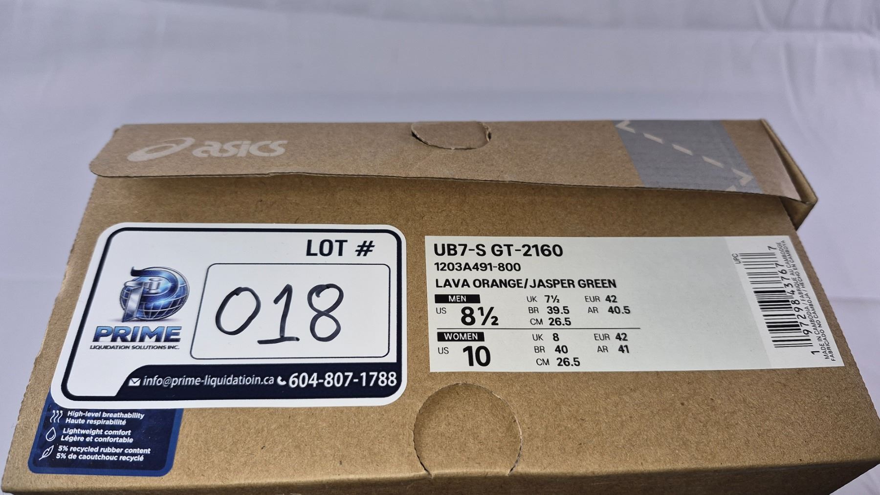 New Pair of Asics UB7-S GT-2160 (Lava Orange/Jasper Green) Size- Men's 8.5, Women's 10 (018)