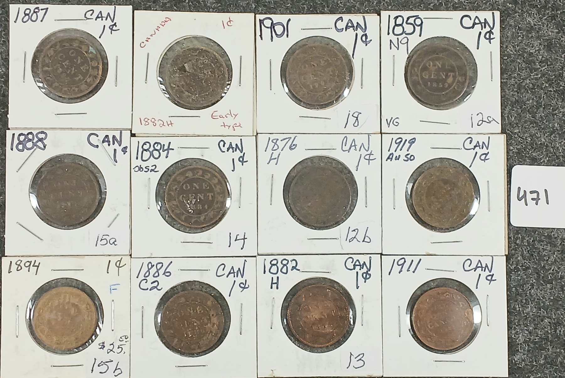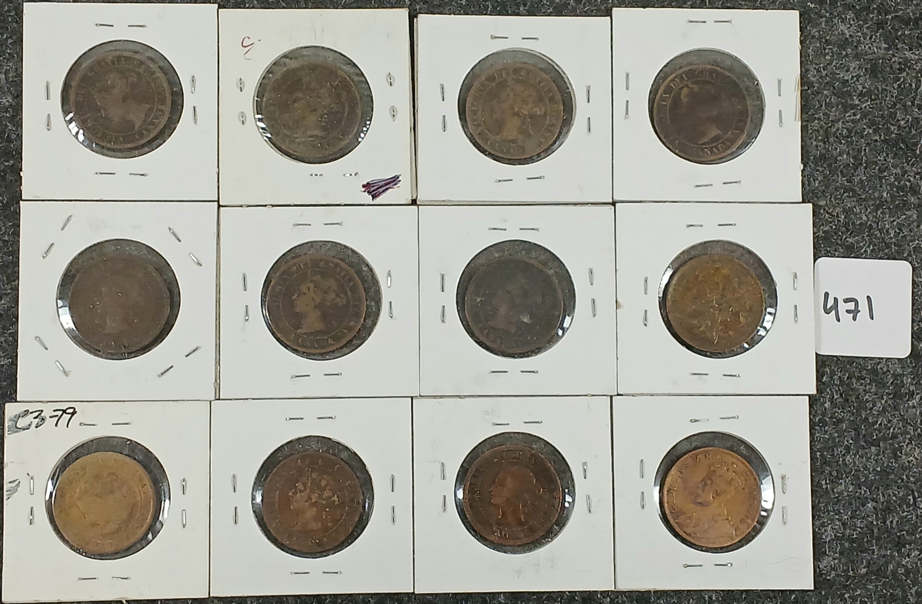 Lot 471 LOT OF 12 - 1859-1919 CDN 1 CENT COINS