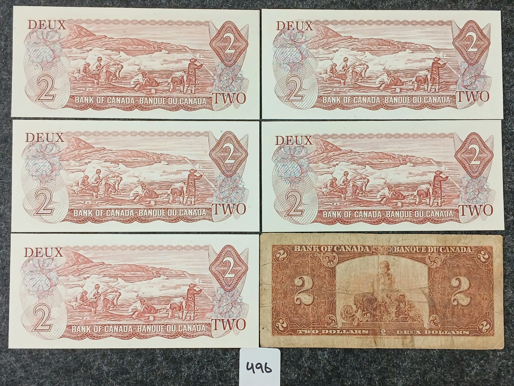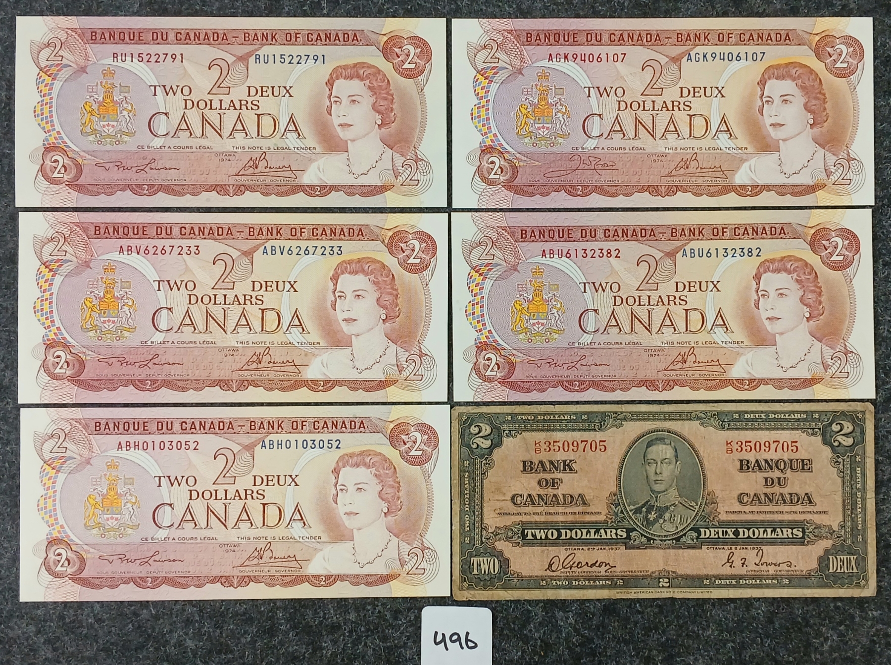 Lot 496 LOT OF 6 - 1937-1974 CDN $2 BANKNOTES - INCL UNCIRCULATED