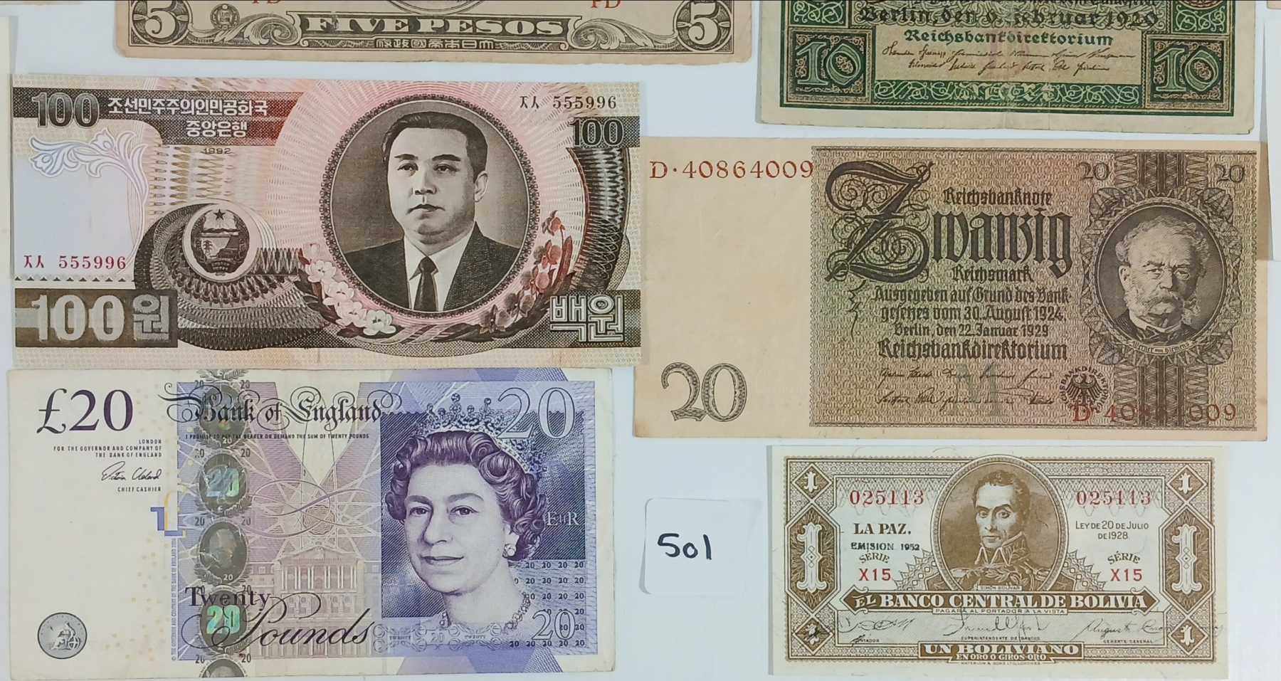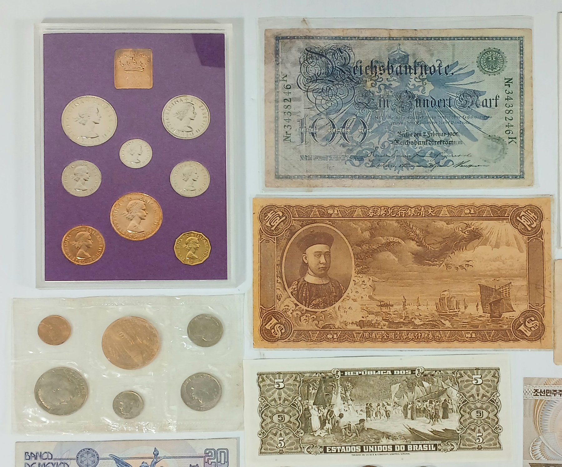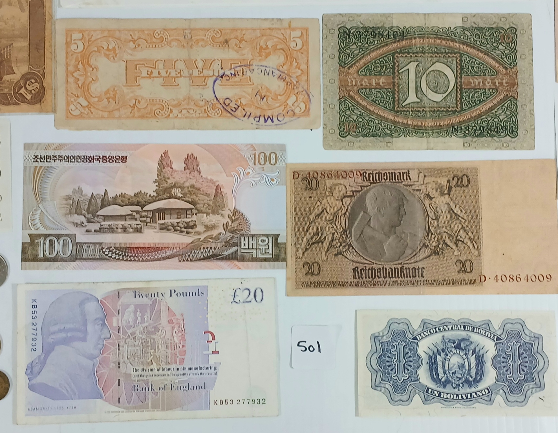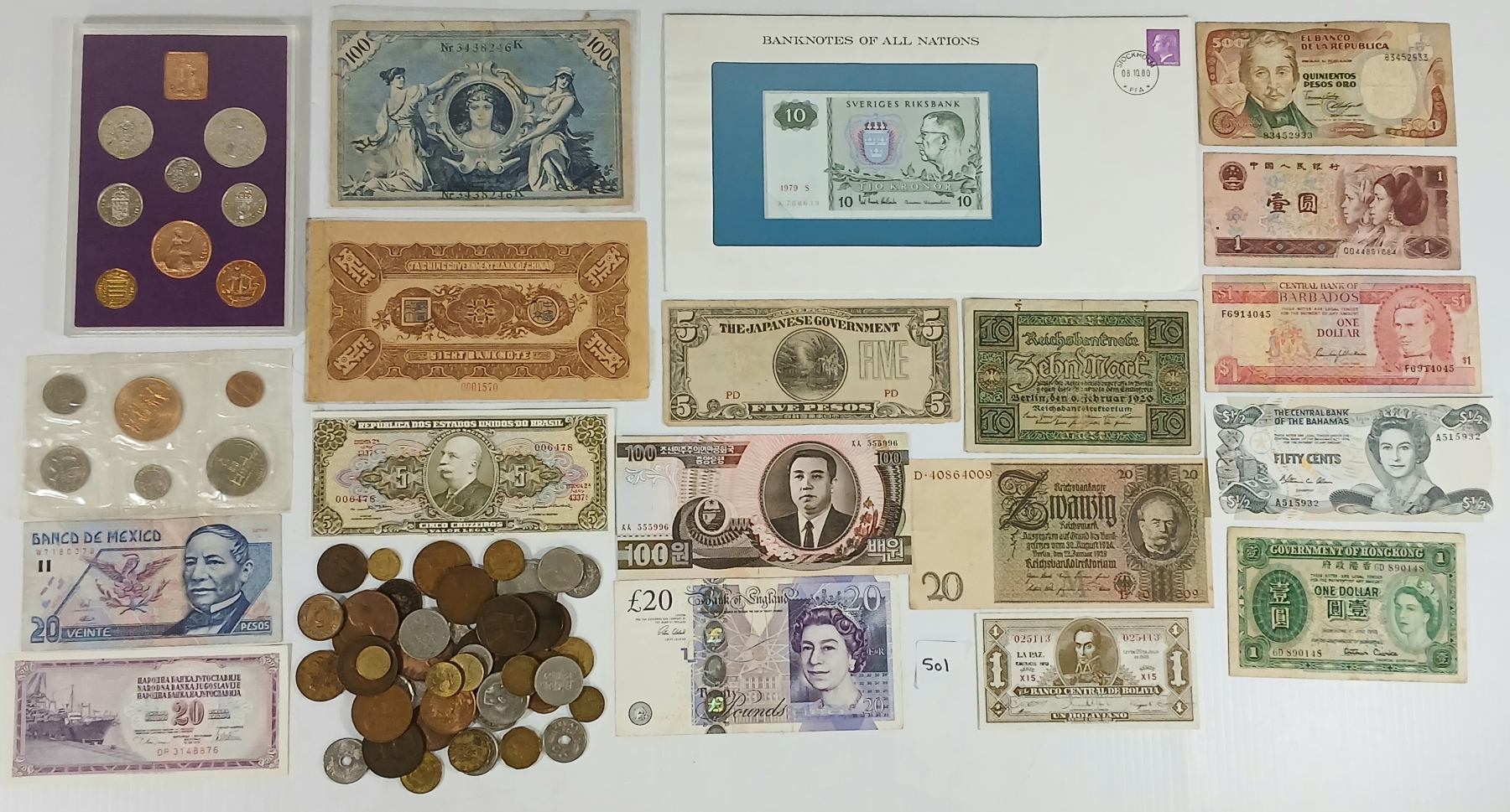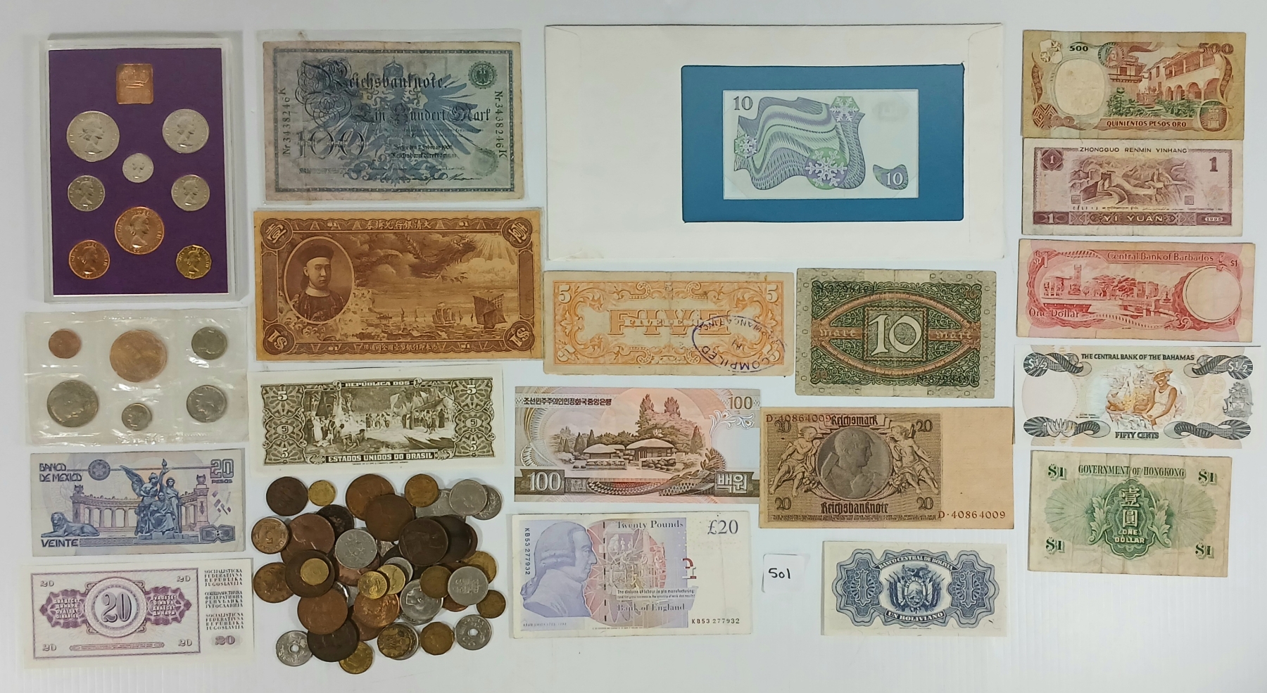 Lot 501 QTY OF WORLD COINS & BANKNOTES - INCL ENGLAND, GERMANY, JAPAN, ETC