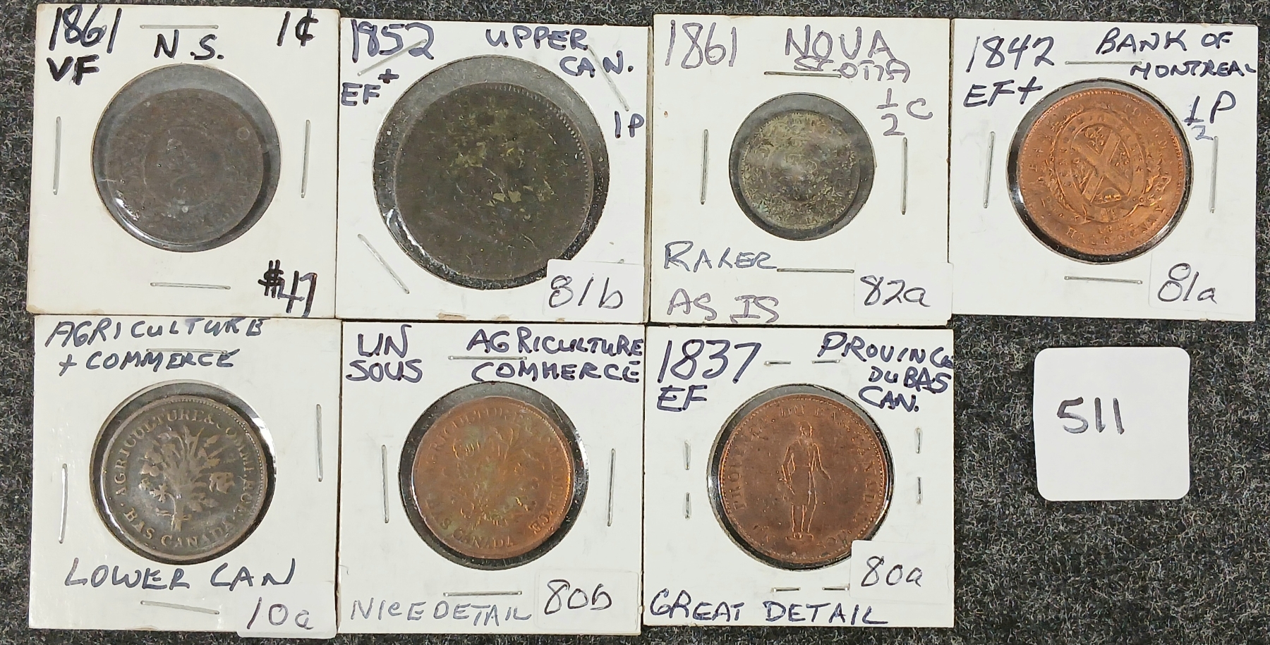 Lot 511 LOT OF 7 - 1837-1861 CDN COINS & TOKENS - INCL NOVA SCOTIA HALF CROWN