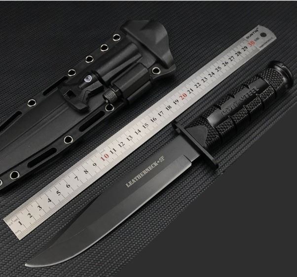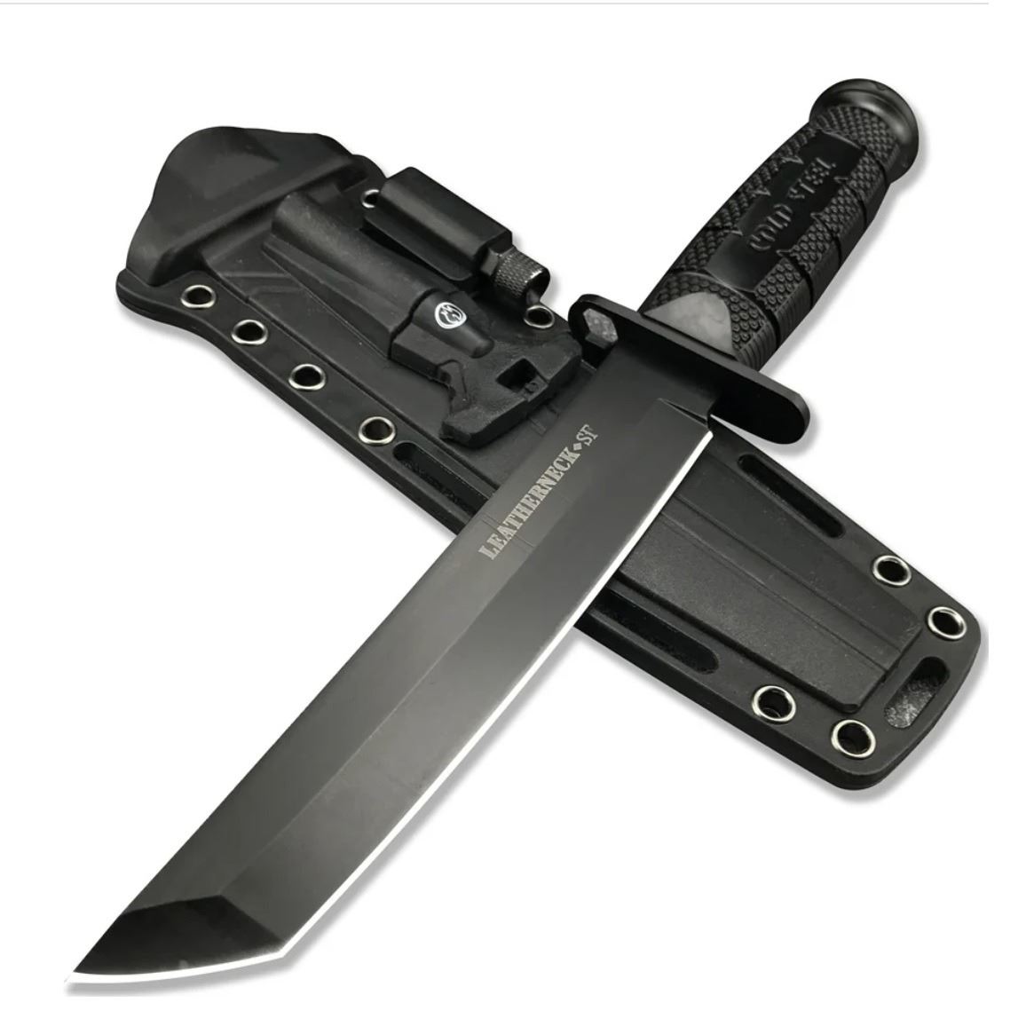 Tactical Survival Hunting Outdoor Camping Knife Cold Steel Leatherneck Fixed Blade Bowie Kydex Sheath &Small Flashlight and Flintstone