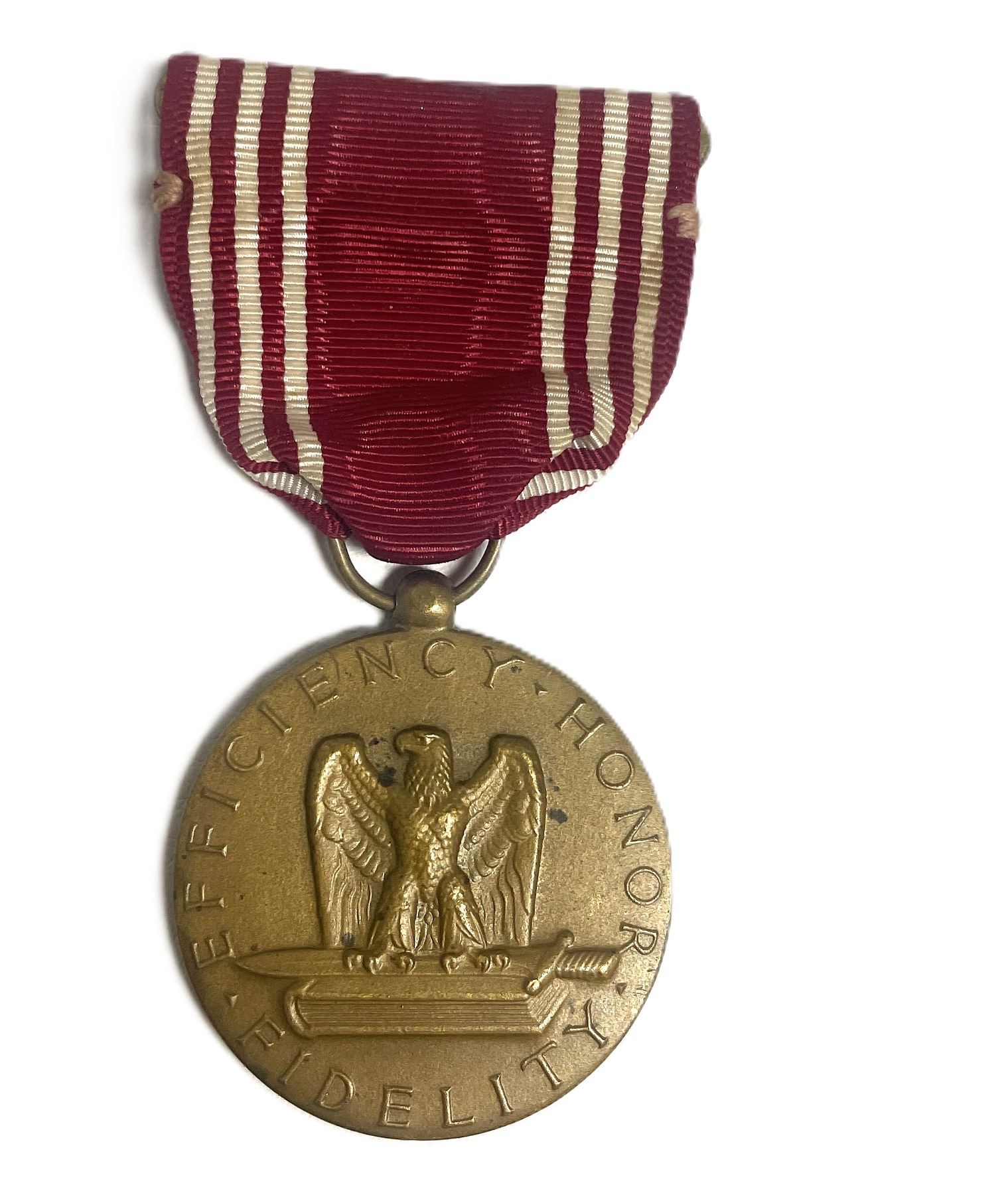 United States Army Good Conduct Medal, which features the eagle emblem and the motto "Efficiency, Honor, Fidelity