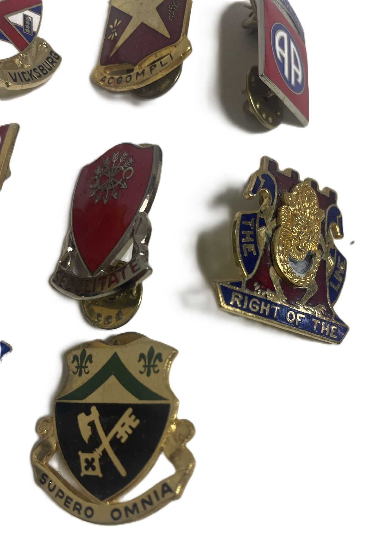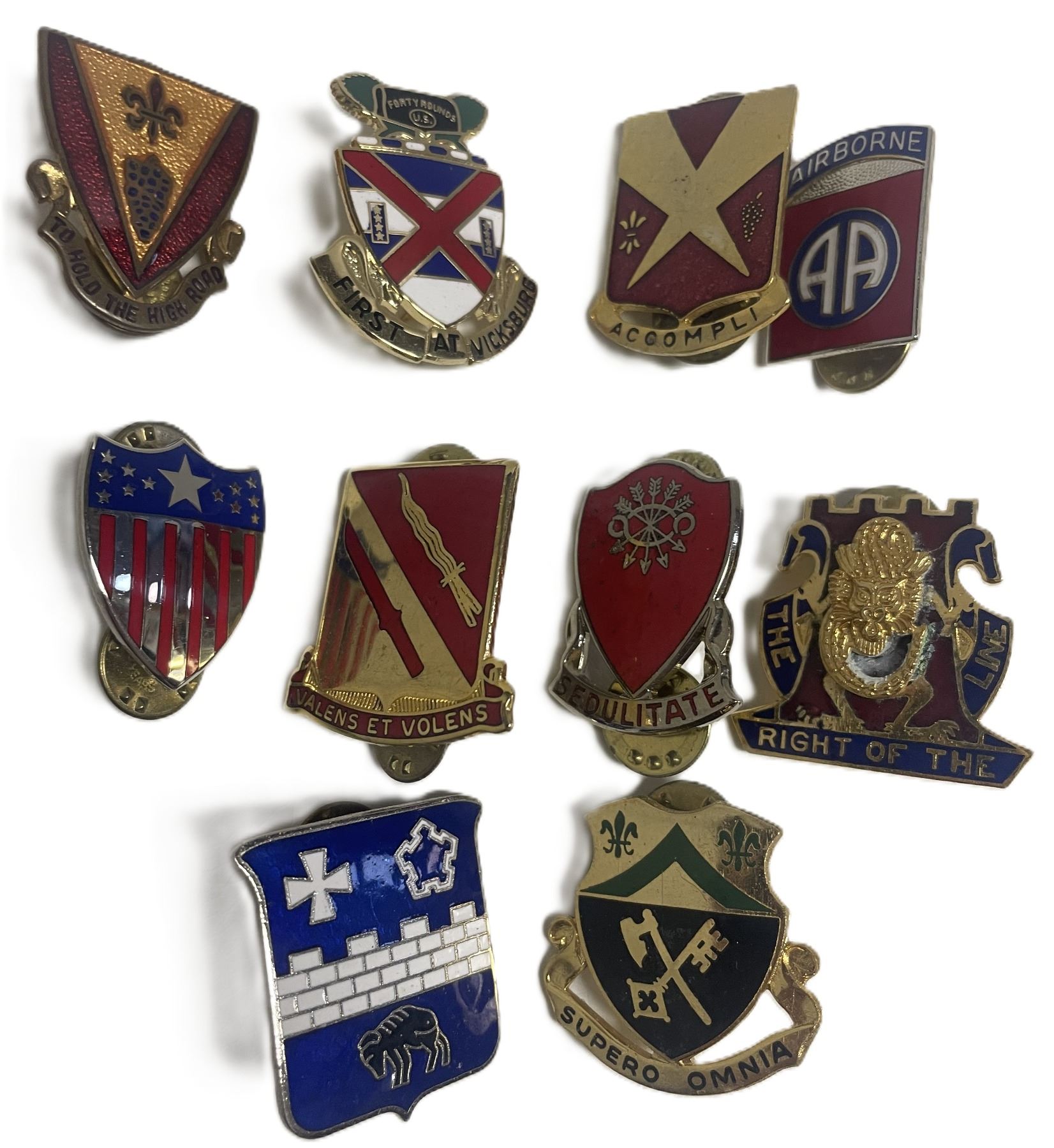 Lot 21 United States military Distinctive Unit Insignia (DUI) pins , UNIT CRESTS