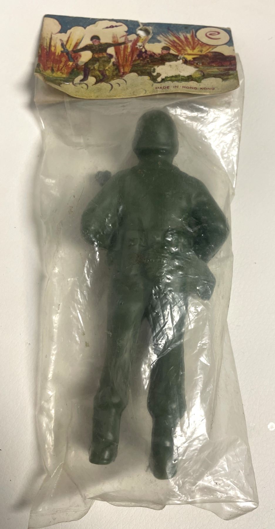 Lot 47 4" green plastic army man in package , made in Hong Kong
