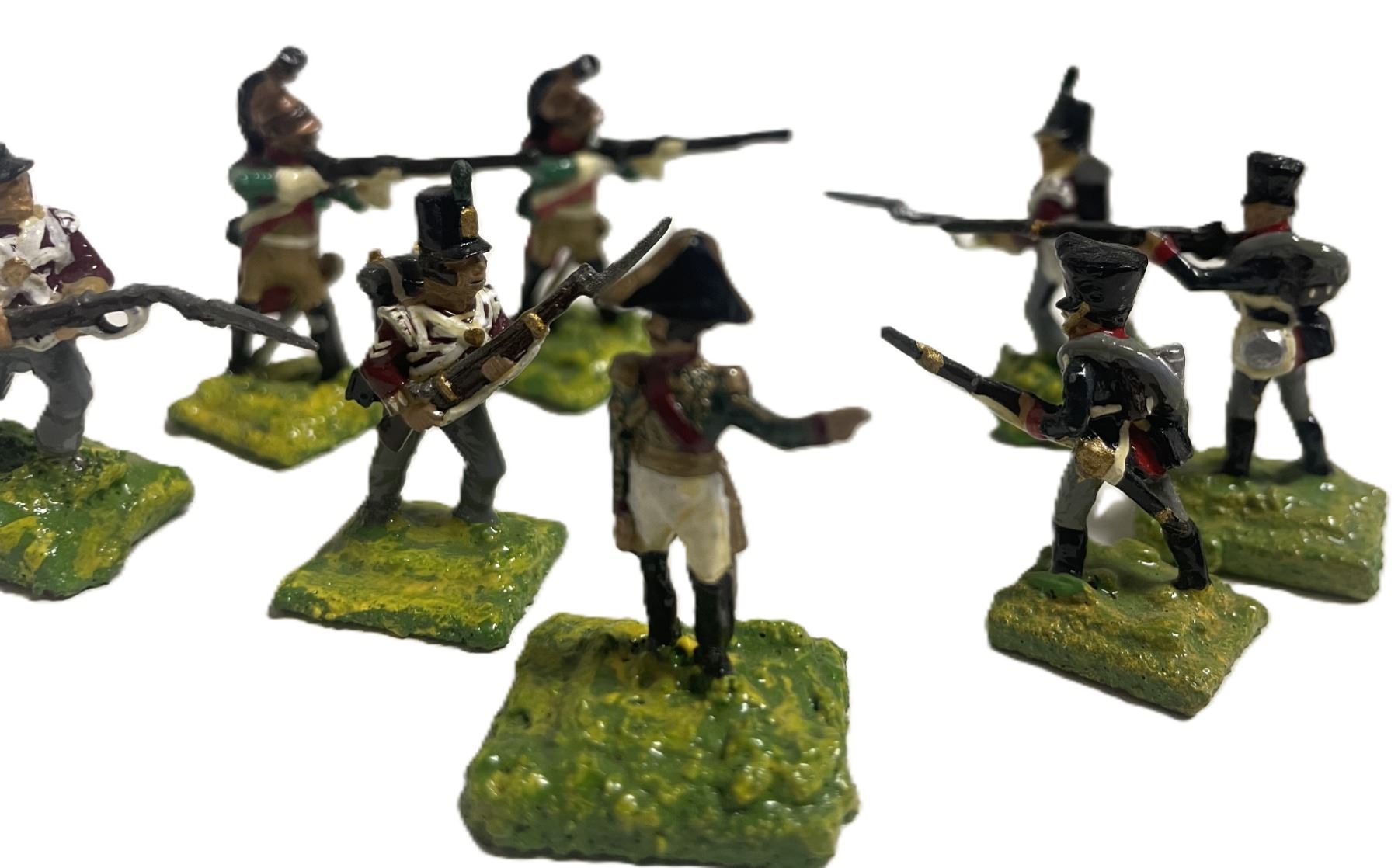 vintage Napoleonic-era toy soldiers, likely made of lead or white metal.