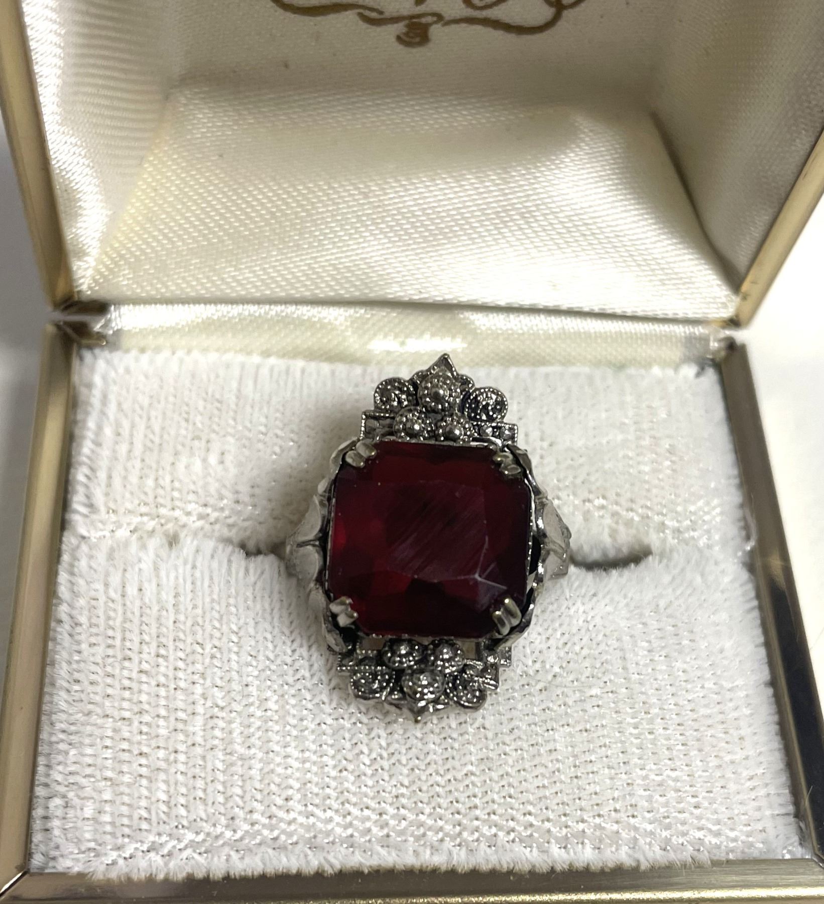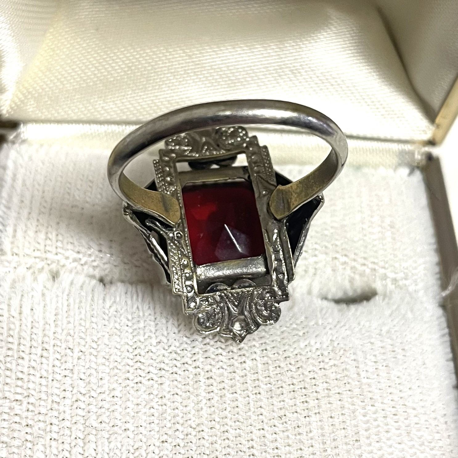 Lot 64 Red stone fashion ring, size eight
