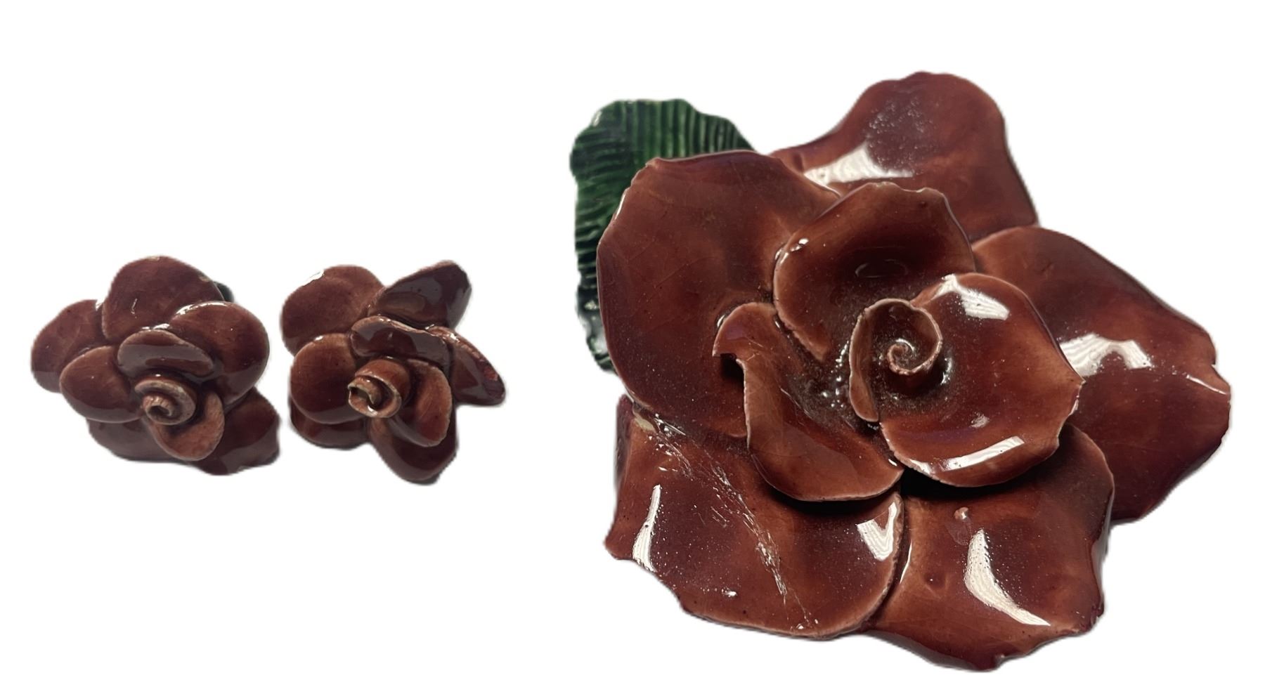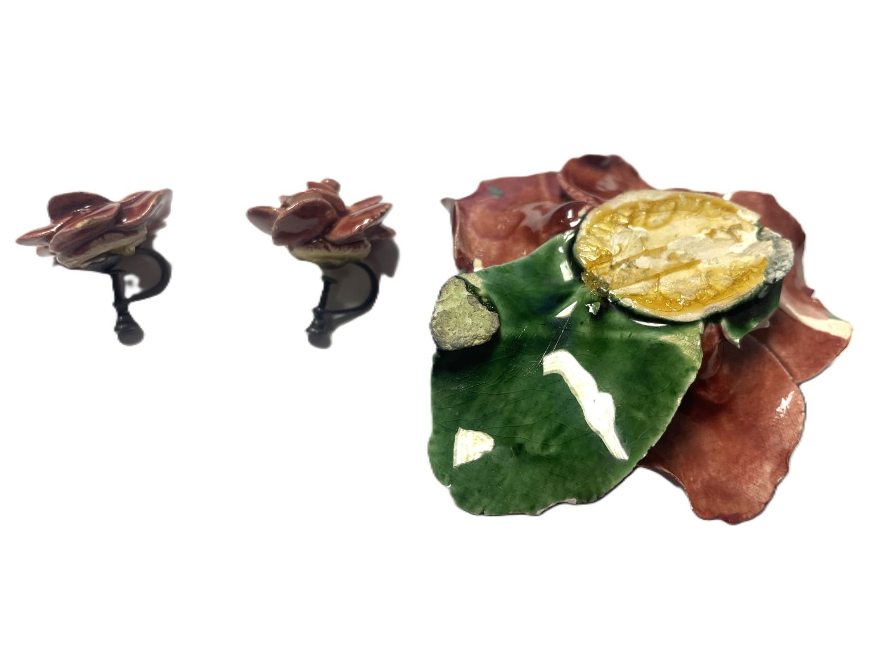 Lot 65 Ceramic Brooch and earings, brooch needs repair