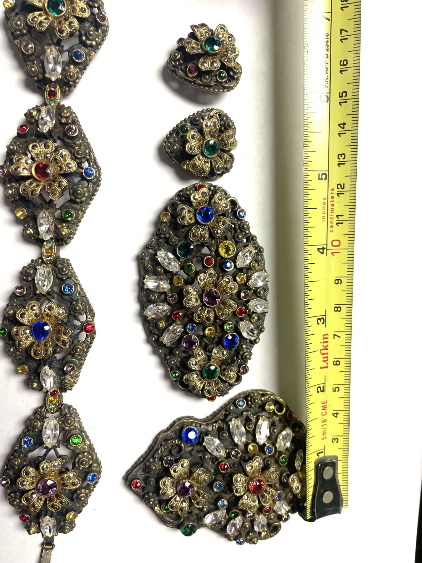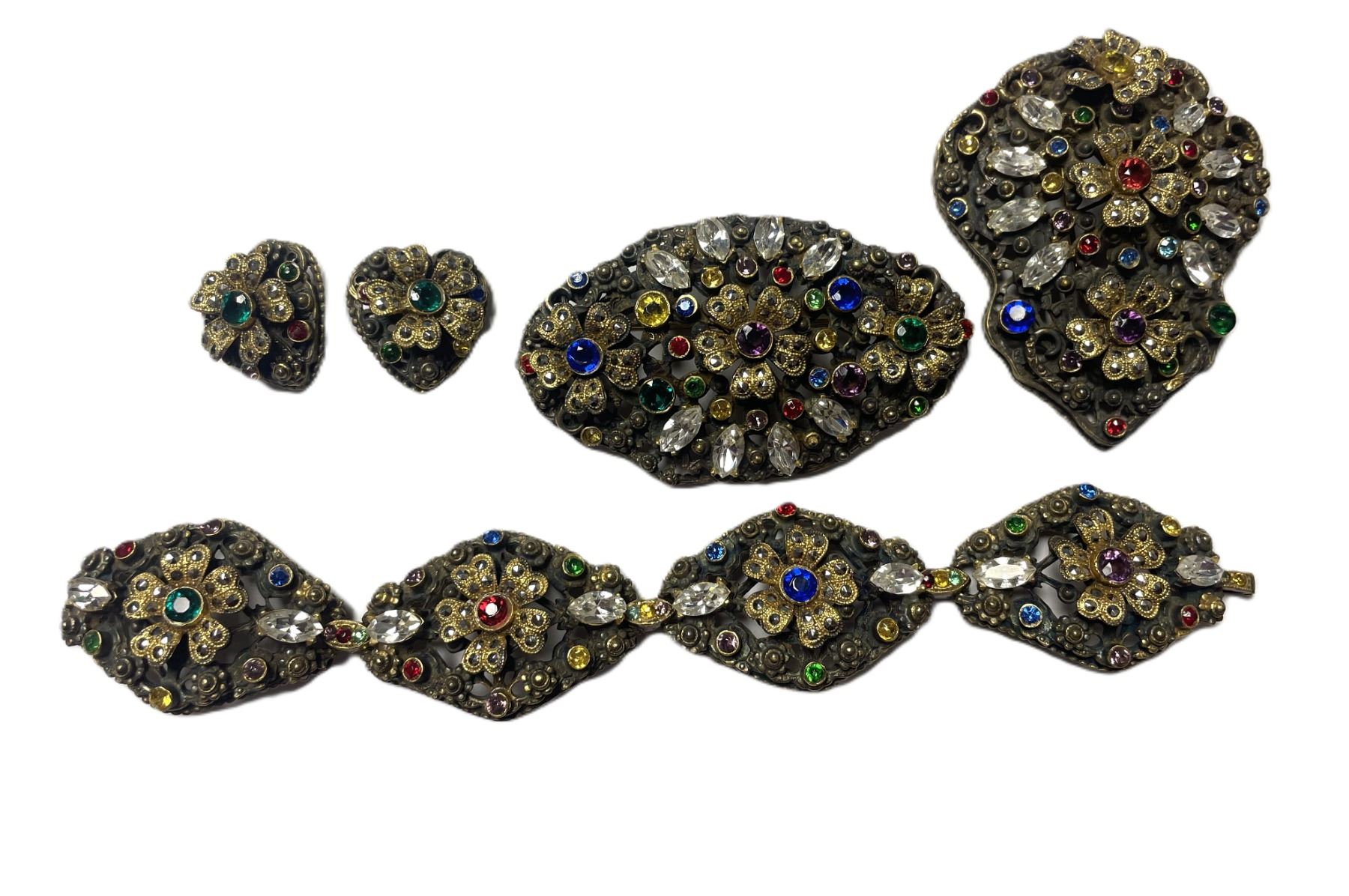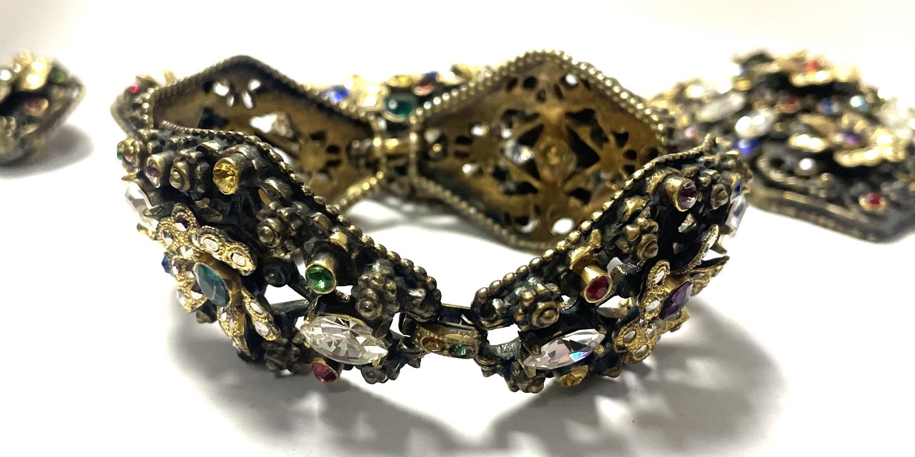 Austro-Hungarian Design: This style is characterized by heavy silver or gold-toned metalwork, often set with glass stones, colorful enamel, and marcasites