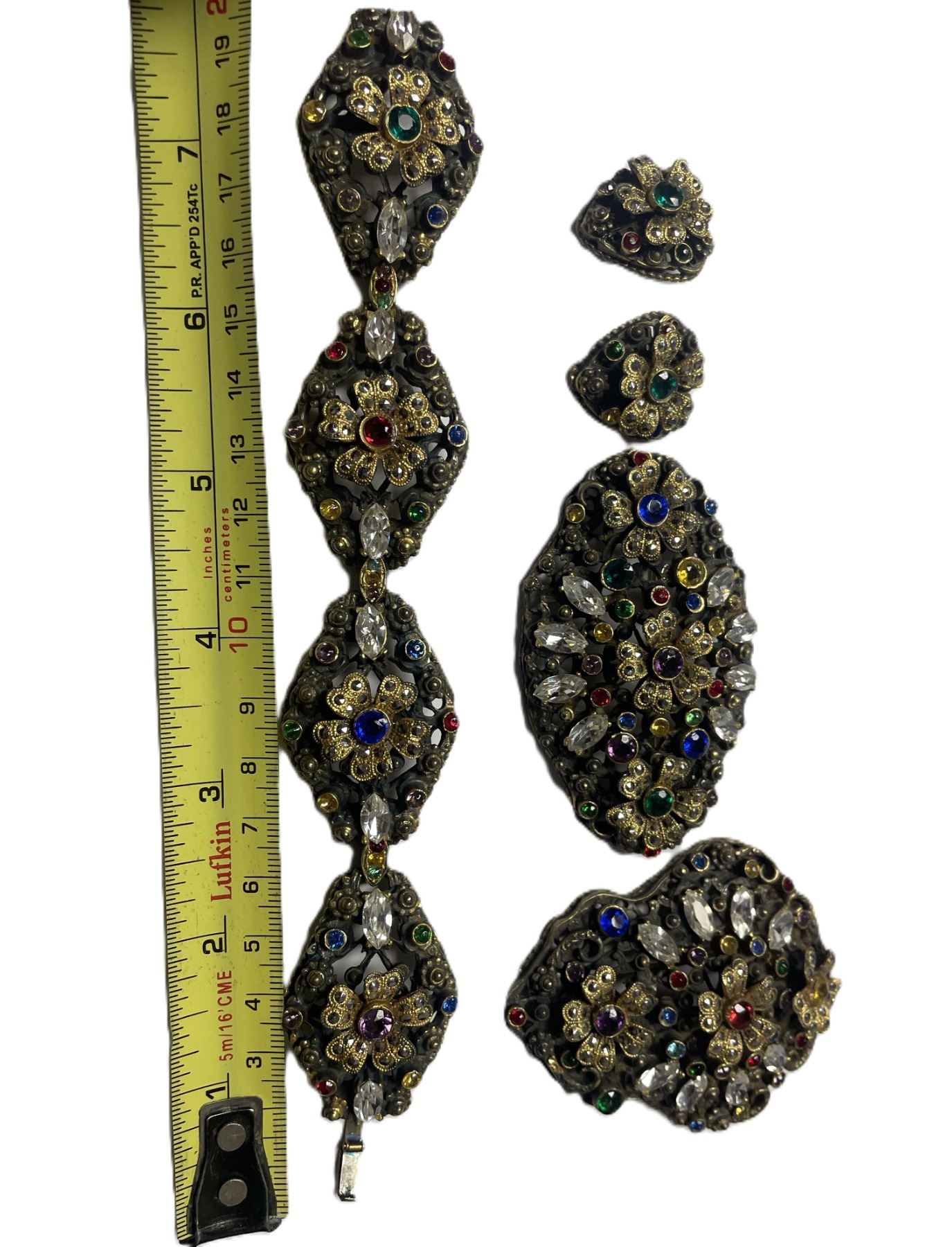 Victorian Revival Style: The pieces use ornate, darkened metal filigree and floral motifs typical of 19th-century Austro-Hungarian designs.
