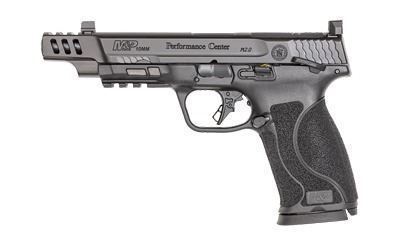 Smith & Wesson, M&P M2.0 Performance Center, Striker Fired, Semi-automatic, Polymer Frame Pistol, Full Size, 10MM, 5.6" Ported Barrel, Armornite Finish, Black, Optic Height Night Sights, Manual Thumb Safety, Optics Ready Slide, 15 Rounds, 2 Magazines
