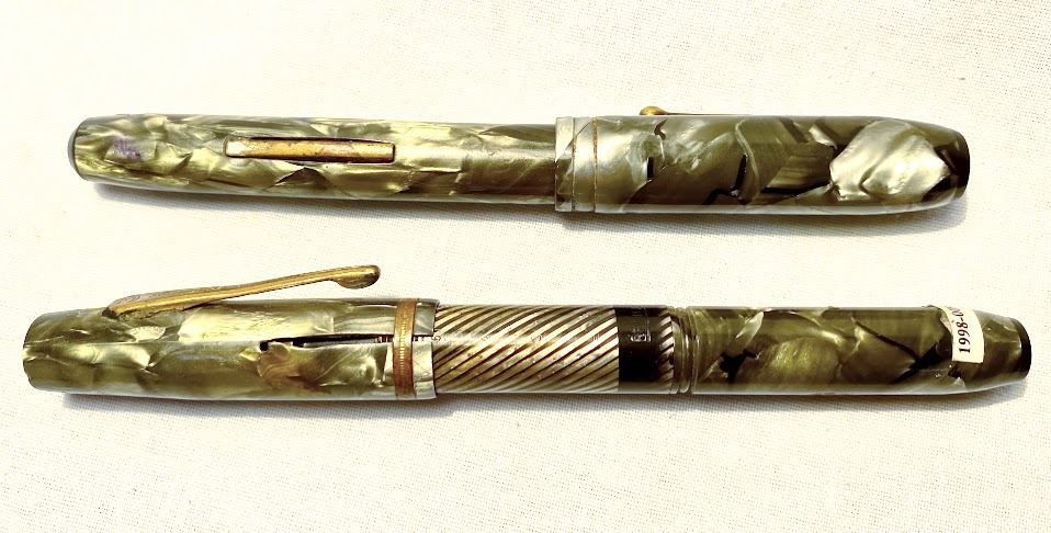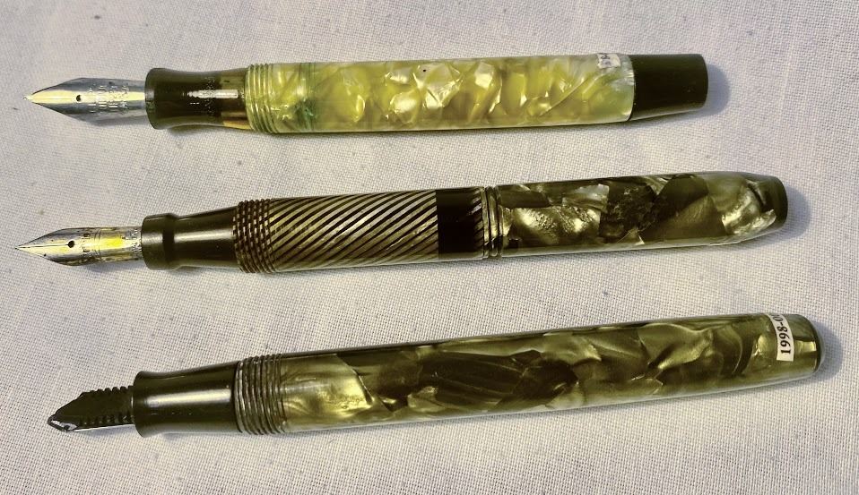 Lot 1018 3 Vintage Green Marbled Fountain Pens
