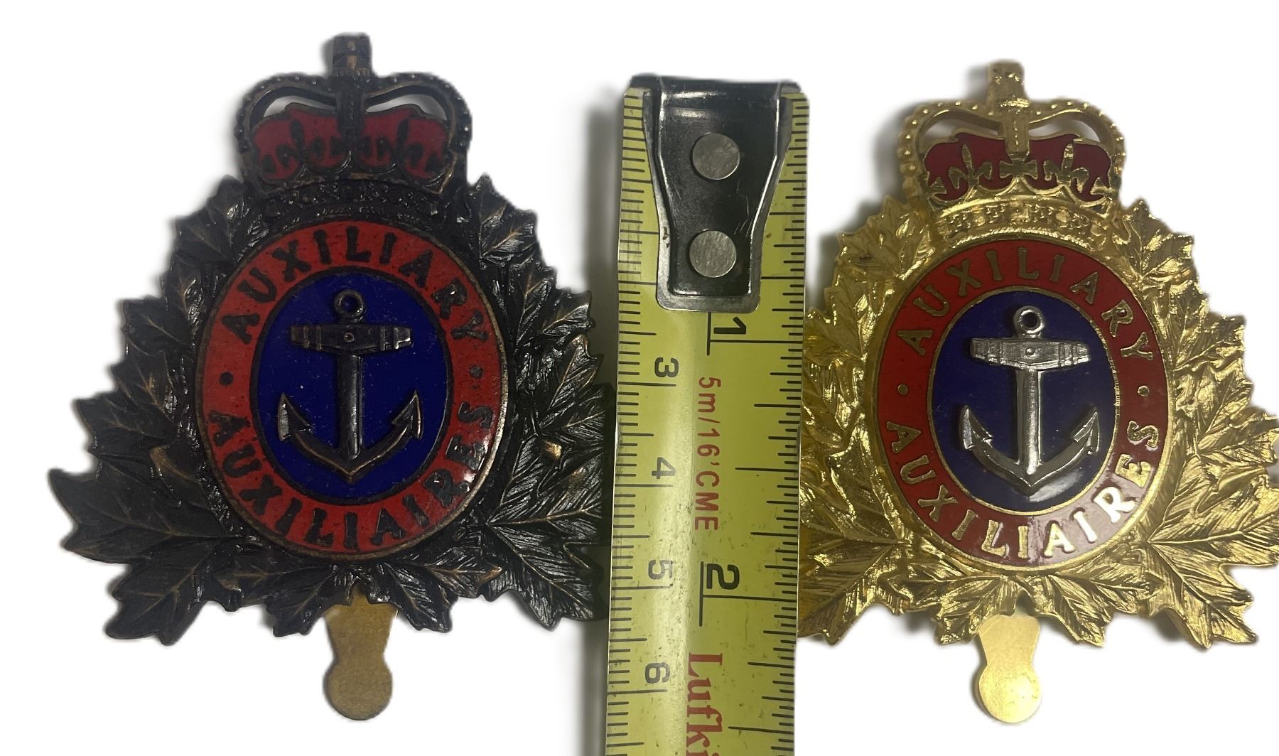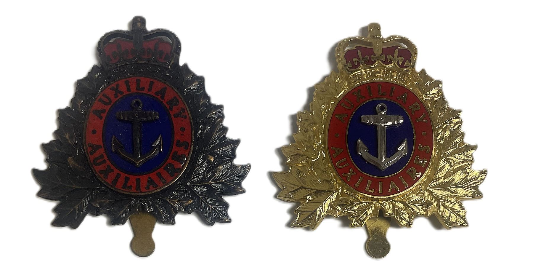 Lot 113 TWO RCN Auxiliary Vessels Crew Pattern and Officers Enameled Cap Badges