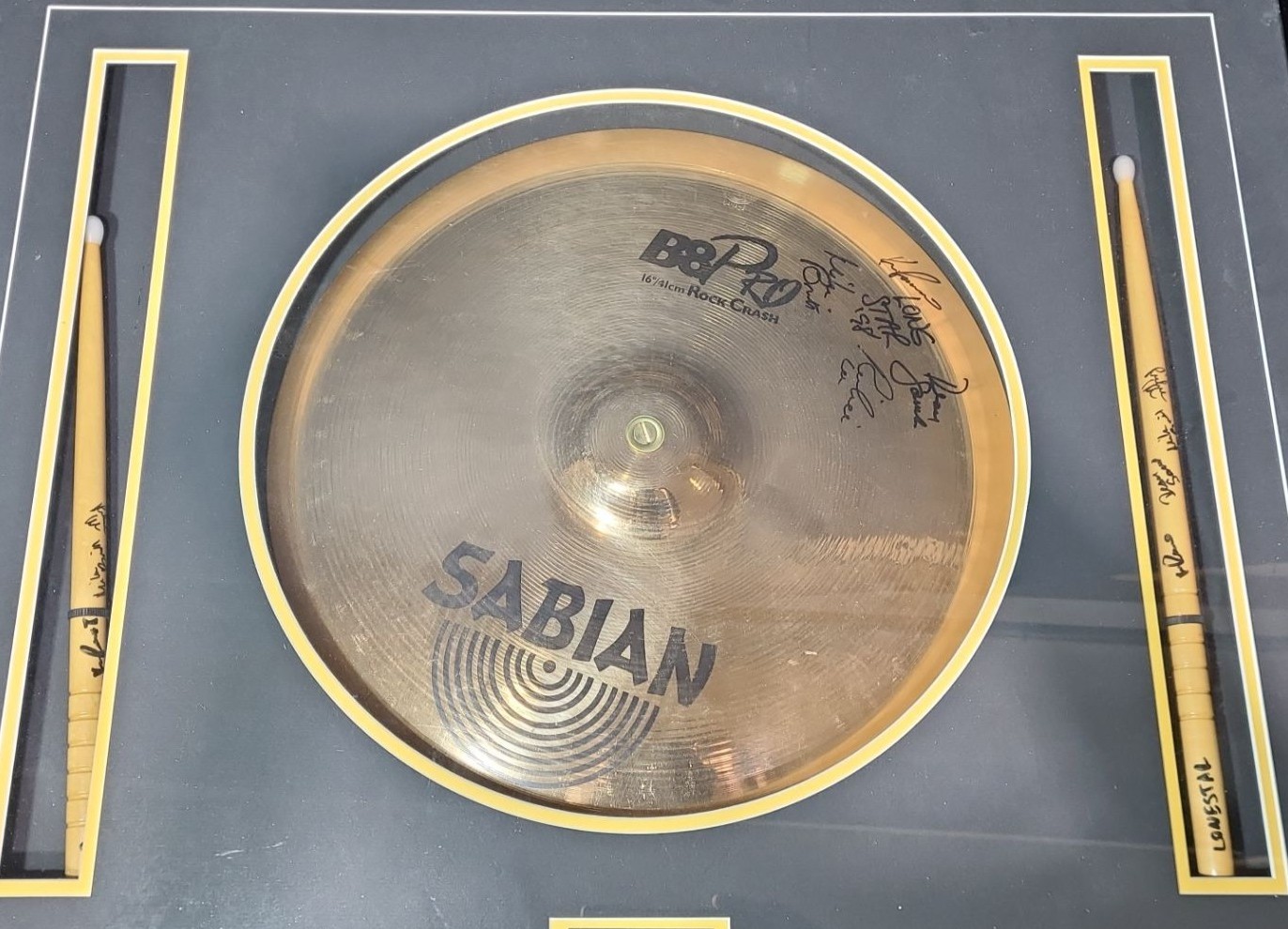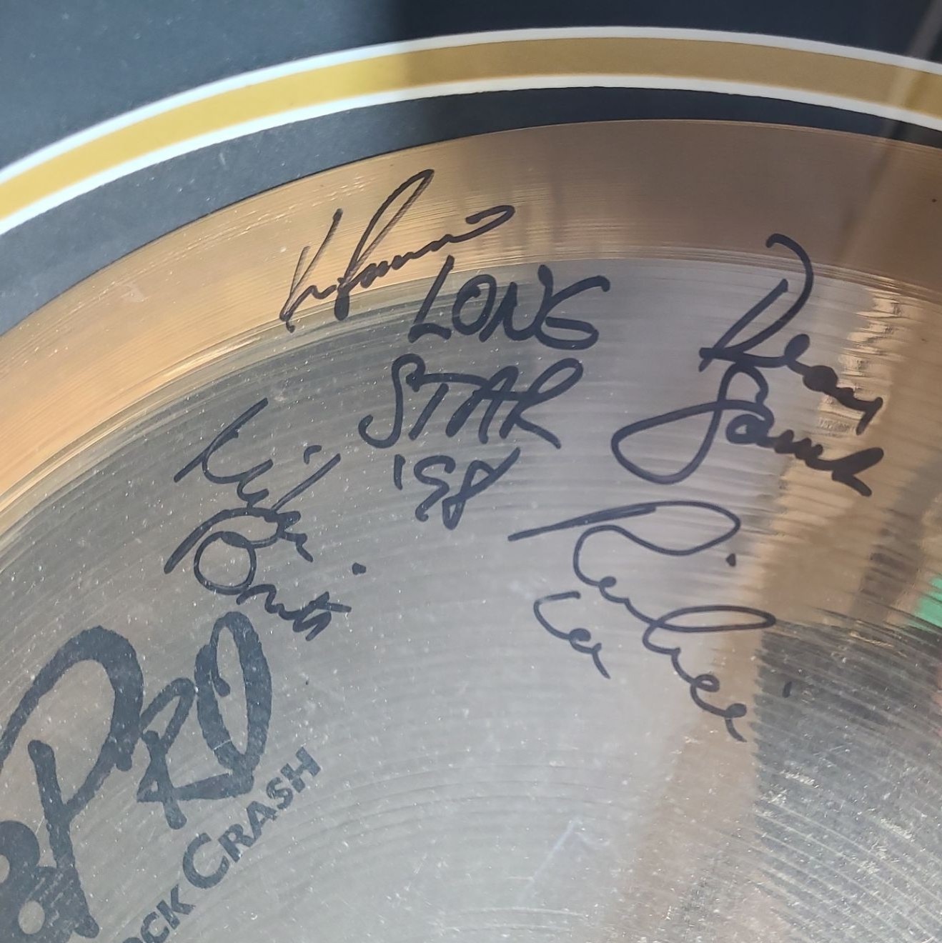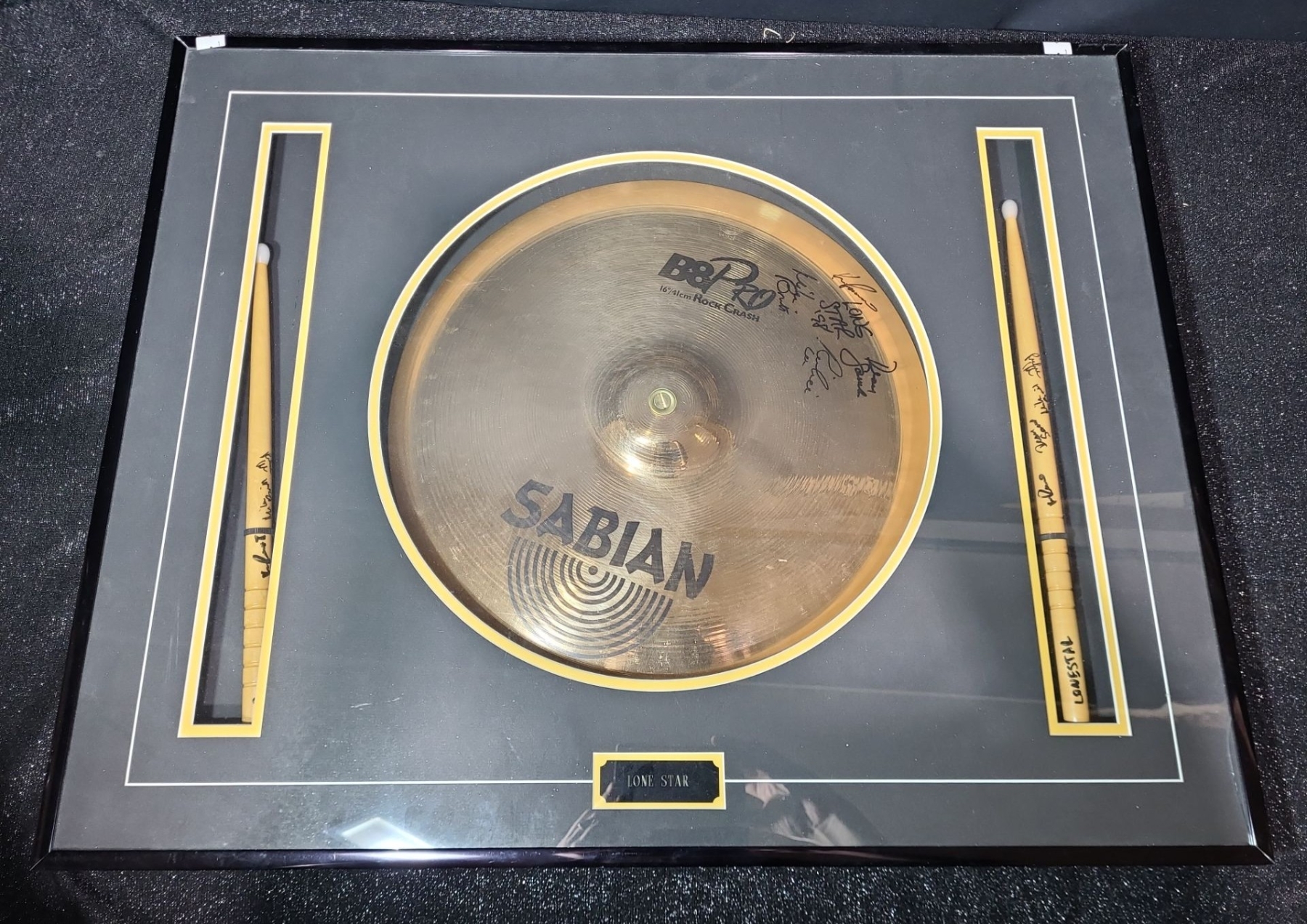 Lot 1 "Lonestar" Band Autographs on Cymbal and Drumsticks, 24 x 30.5 Framed Under Glass