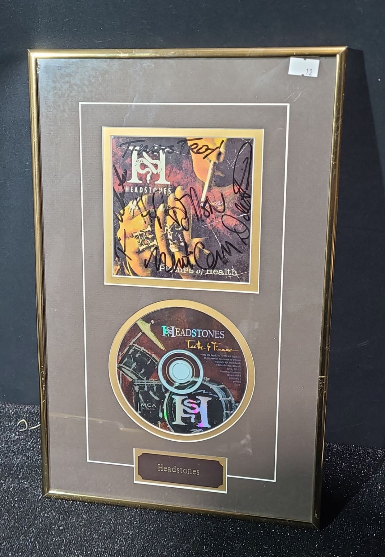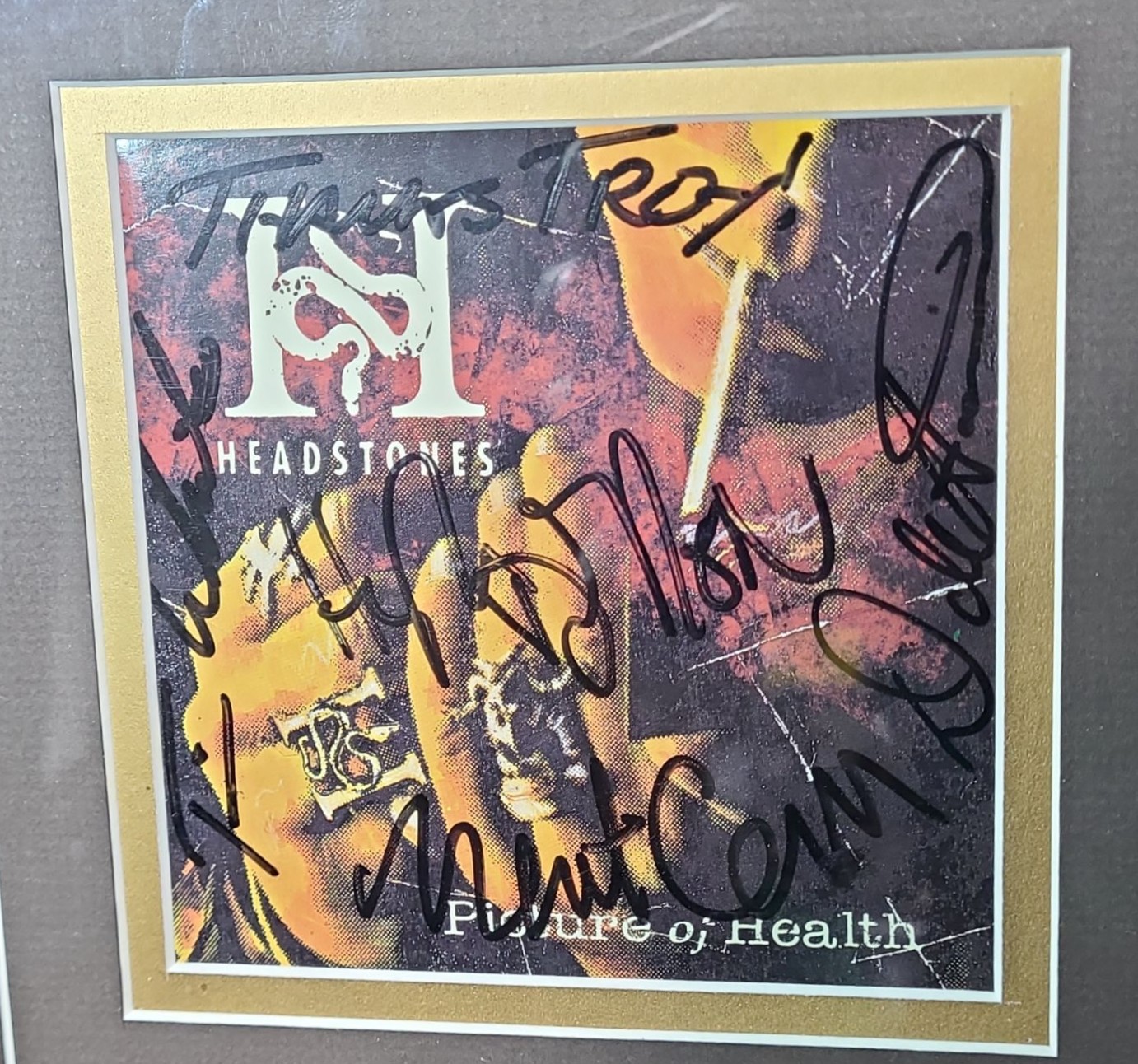 Lot 12 Headstones "Picture of Health" Autographed CD Sleeve, 10 x 15.5 Framed Under Glass