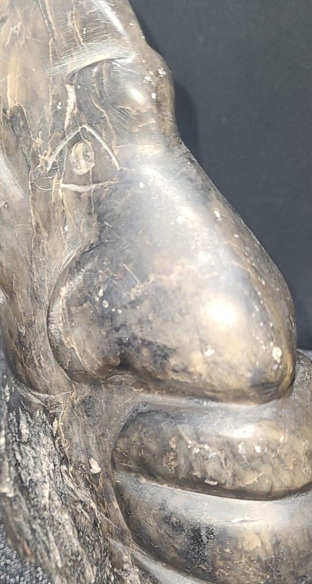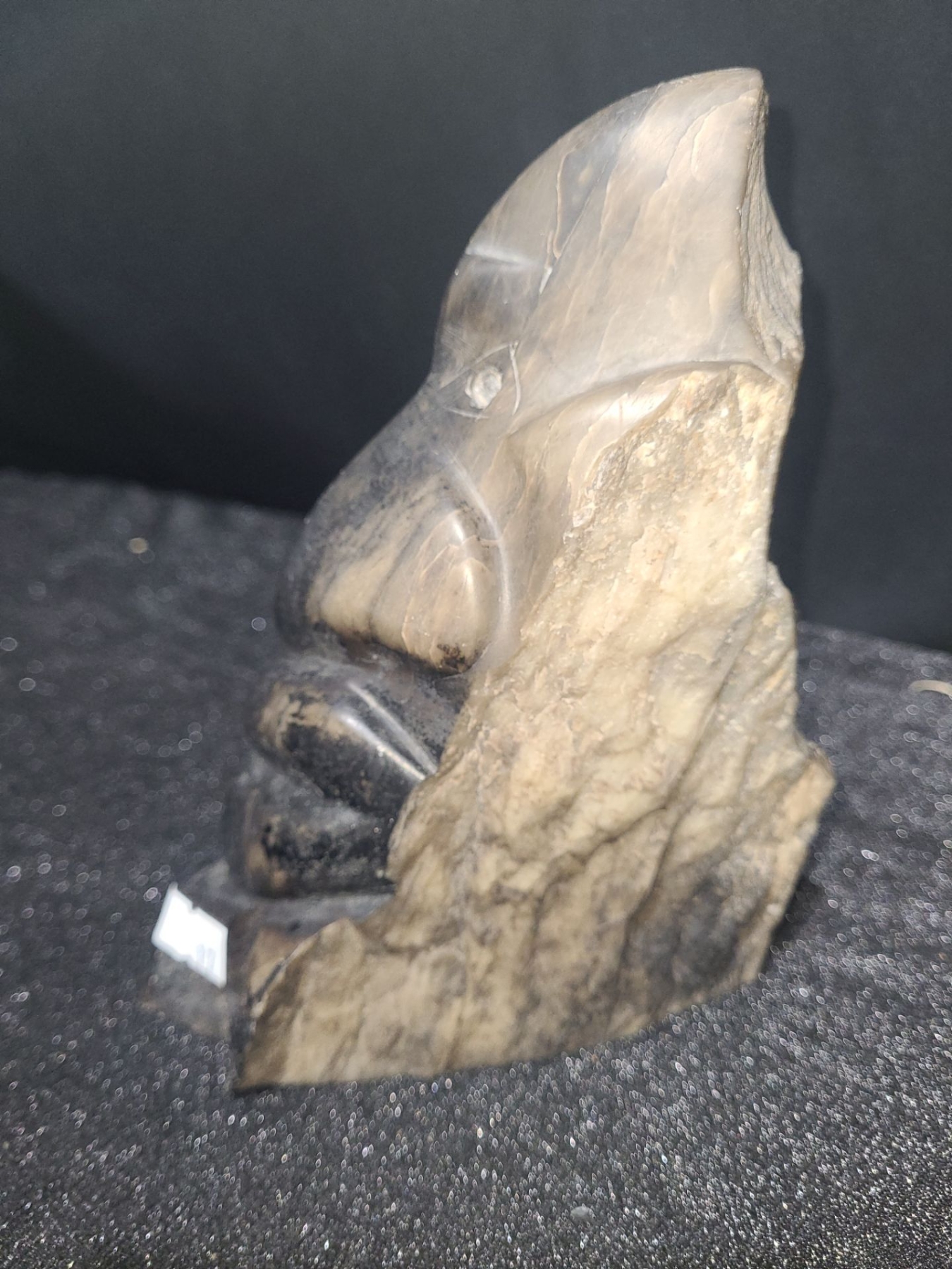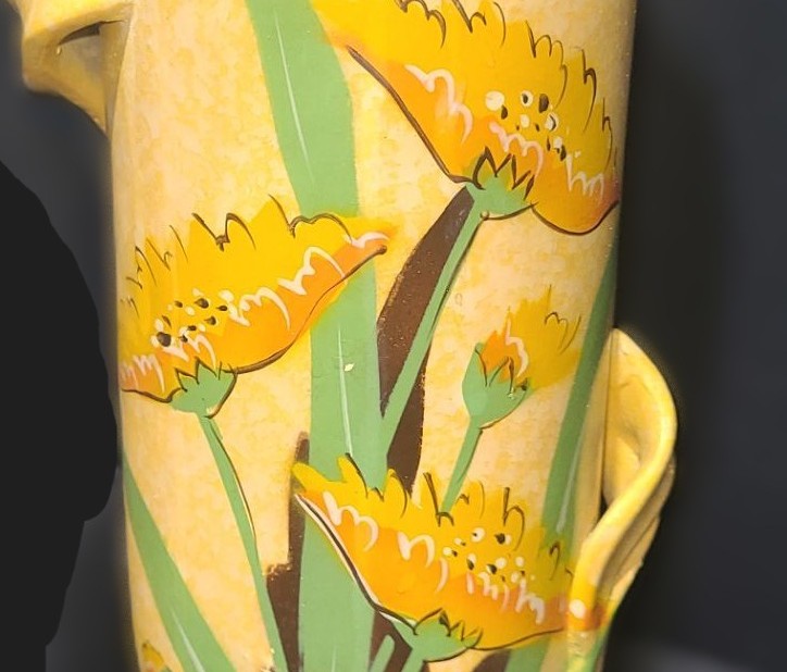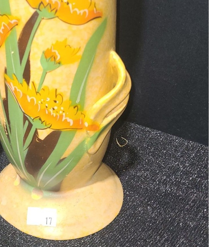 Lot 17 Soapstone Carved Face 2.5 W, 5 D, 7 T and Yellow Vase w/ Painted Flowers 4" Base, 10 T
