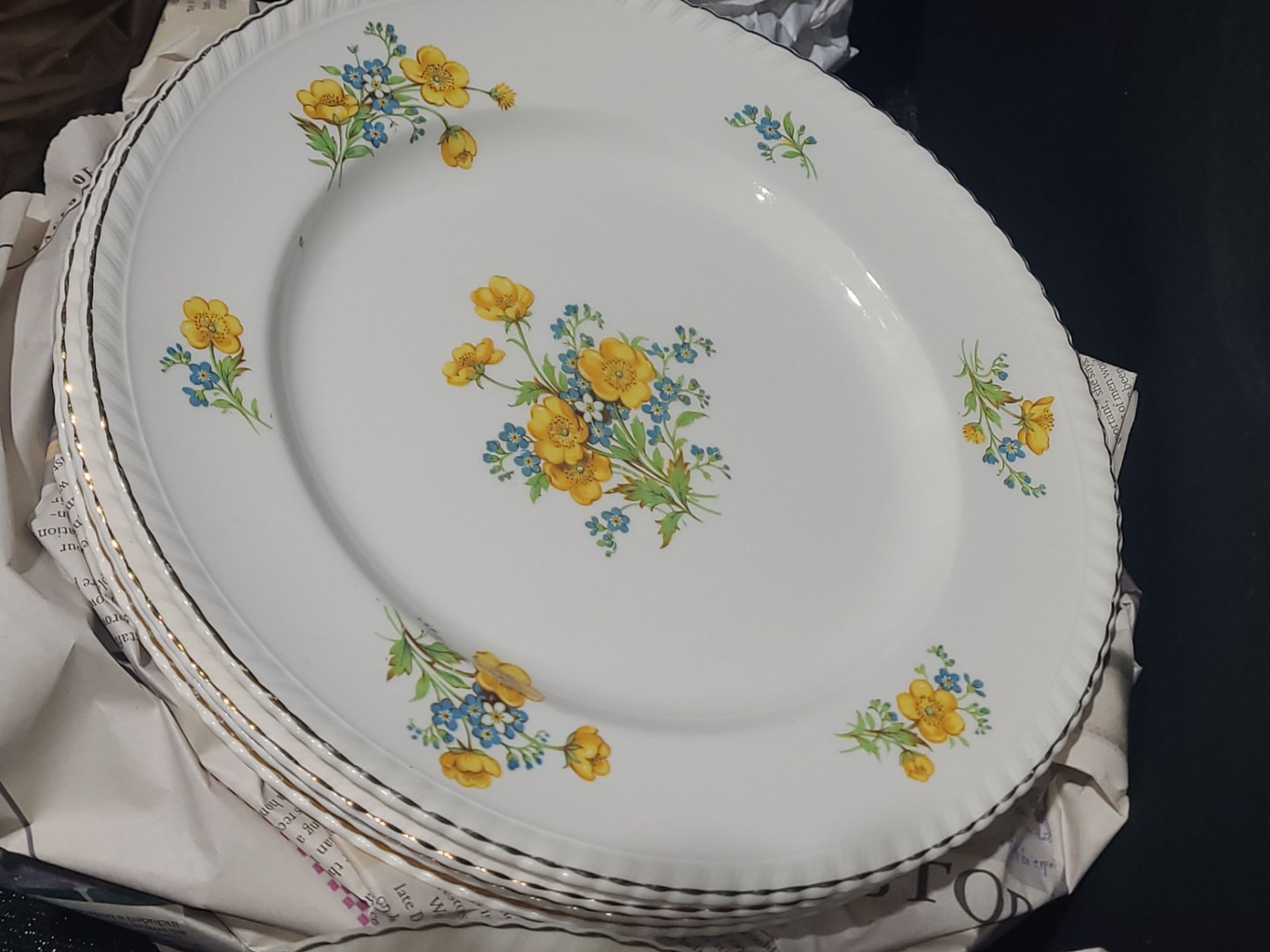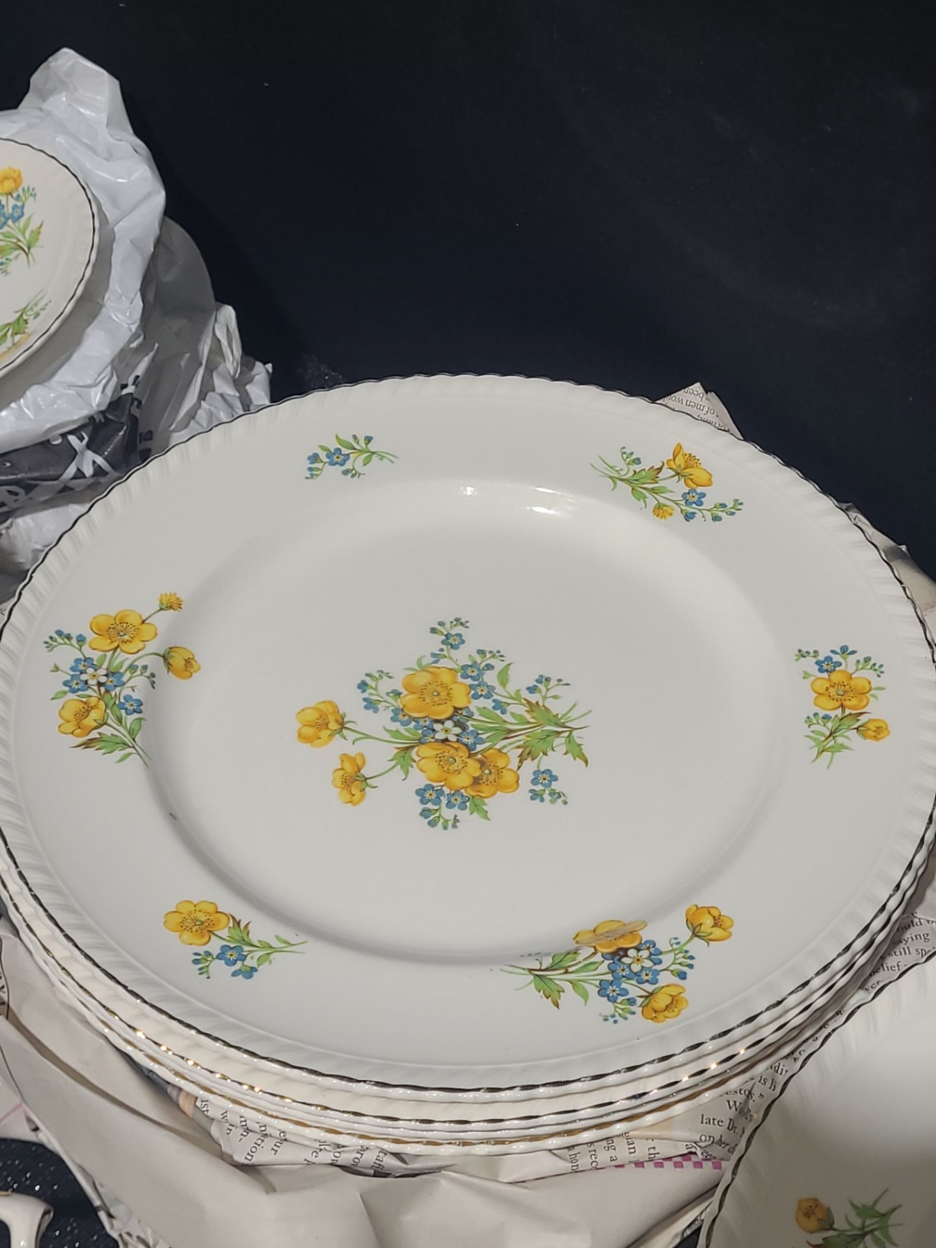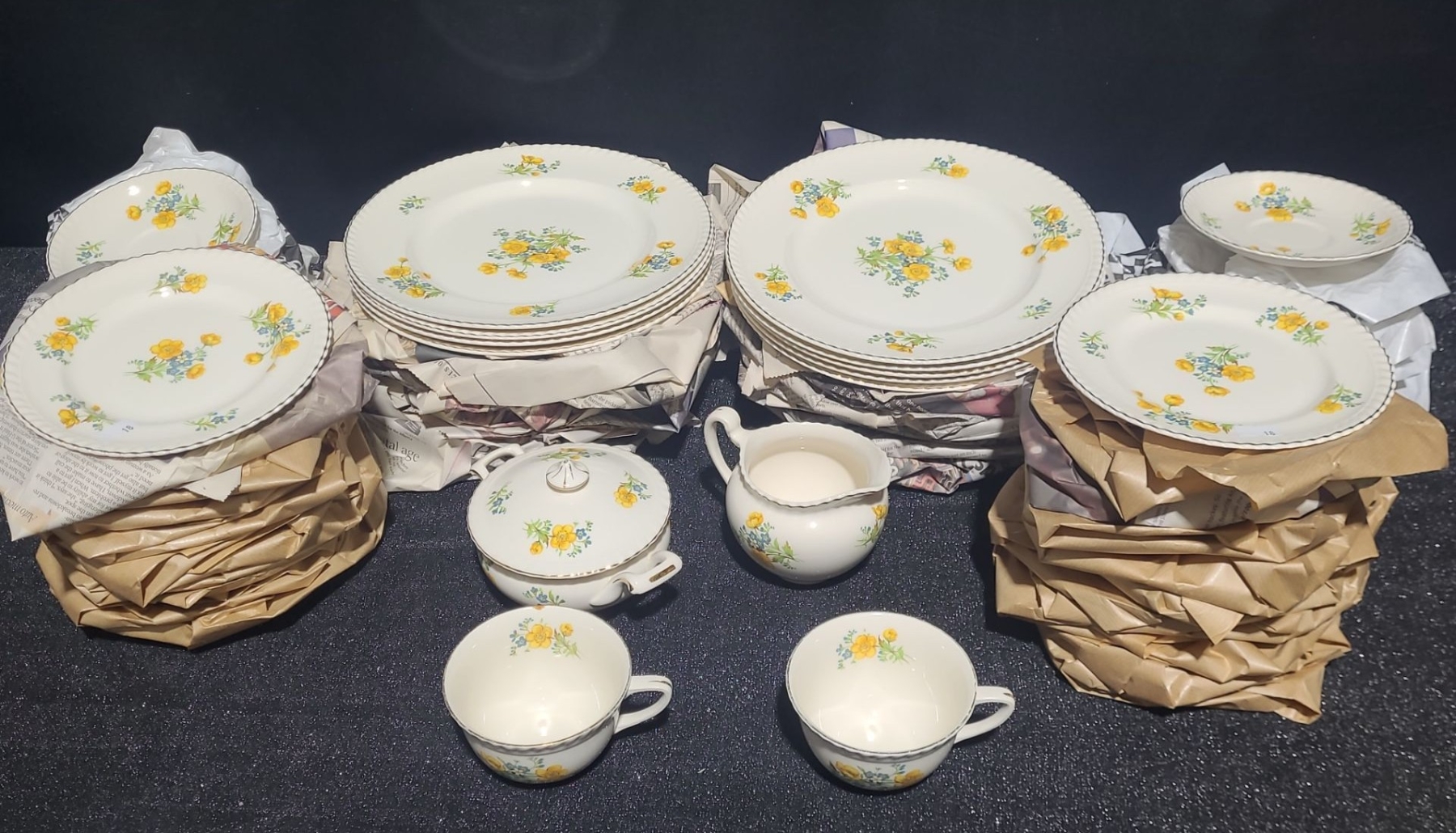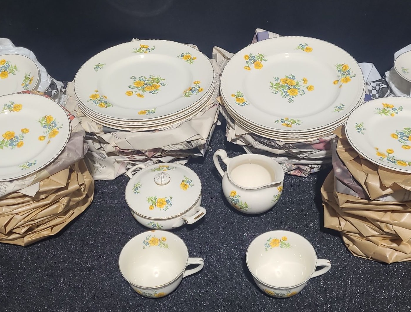 Lot 18 Johnson Bros. Dinnerware w/ Yellow and Blue Flowers- Includes Cream & Sugar Vessels