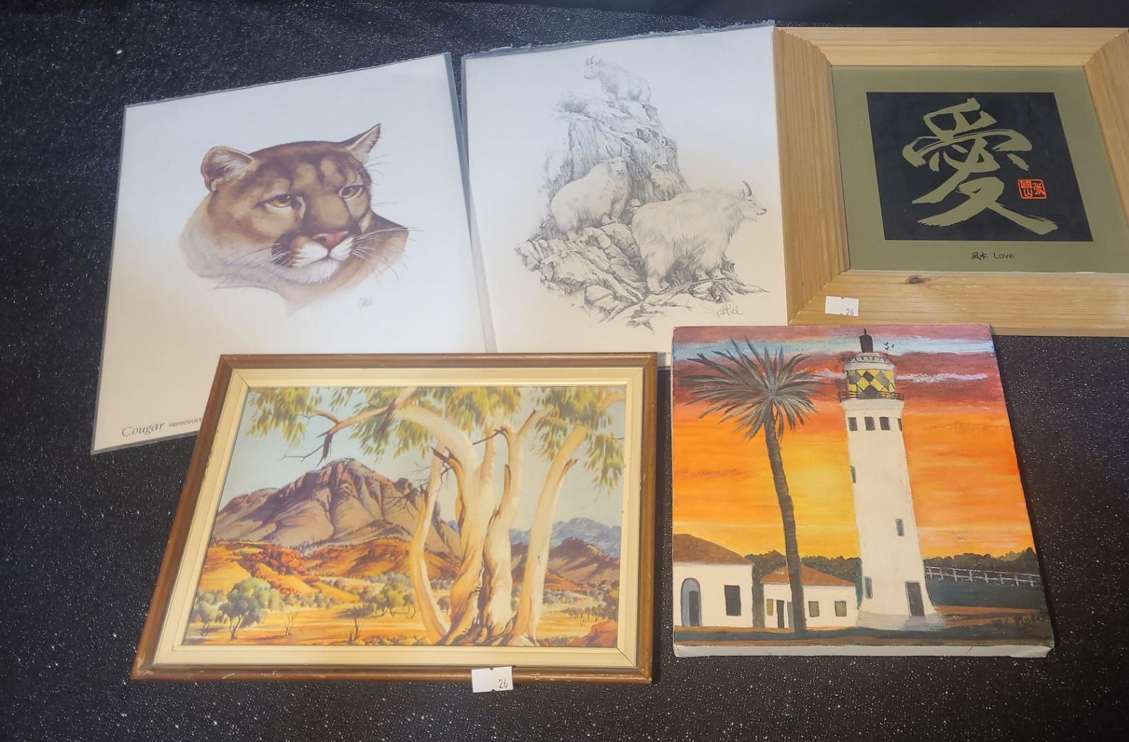 Lot 26 Art:Saltiel Wildlife Prints 10 X 12/ 12 X 10, Love 11 X 11,Watercolor 7.5 X 10.5, Glossy Map 20 X 16