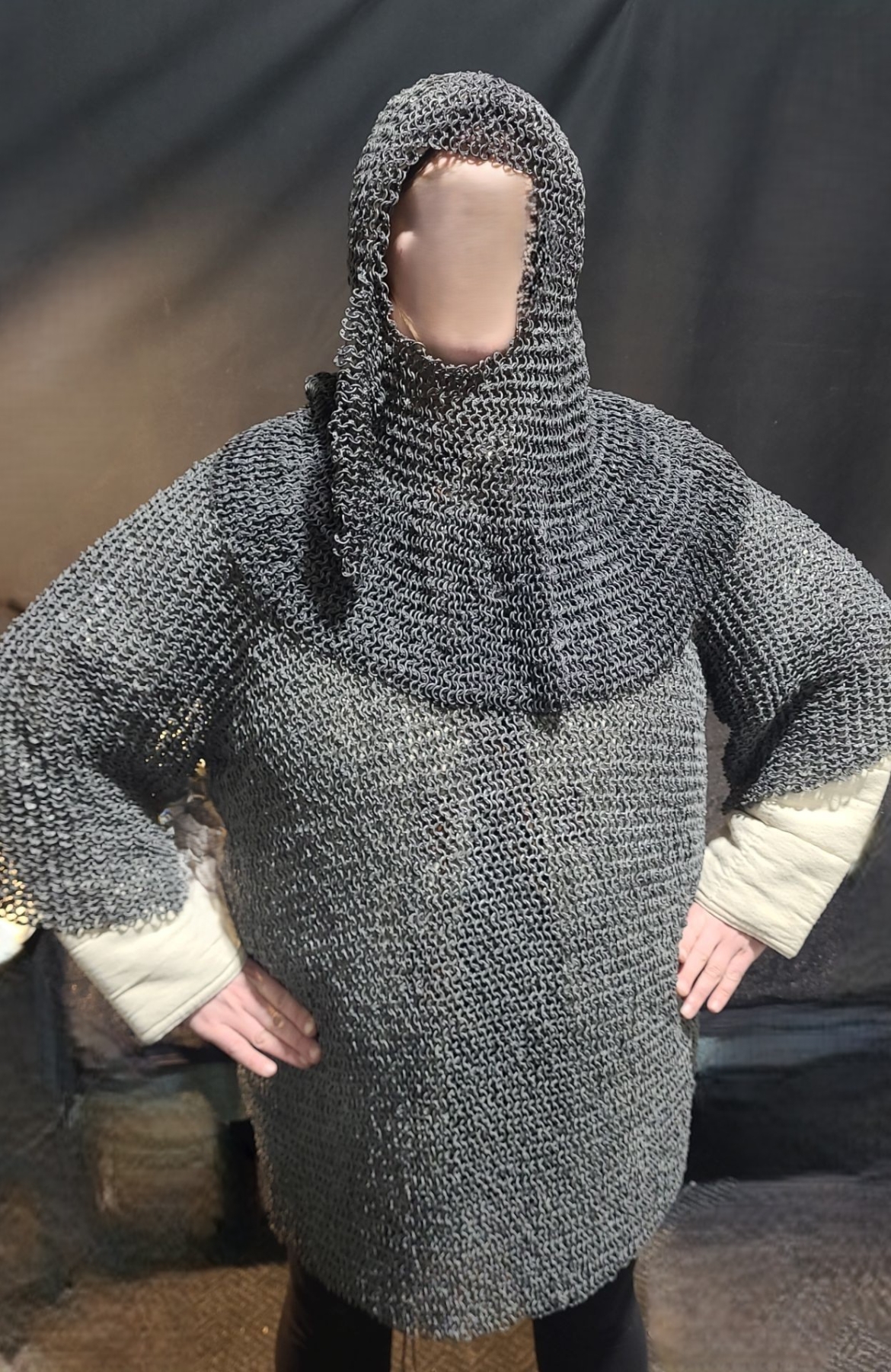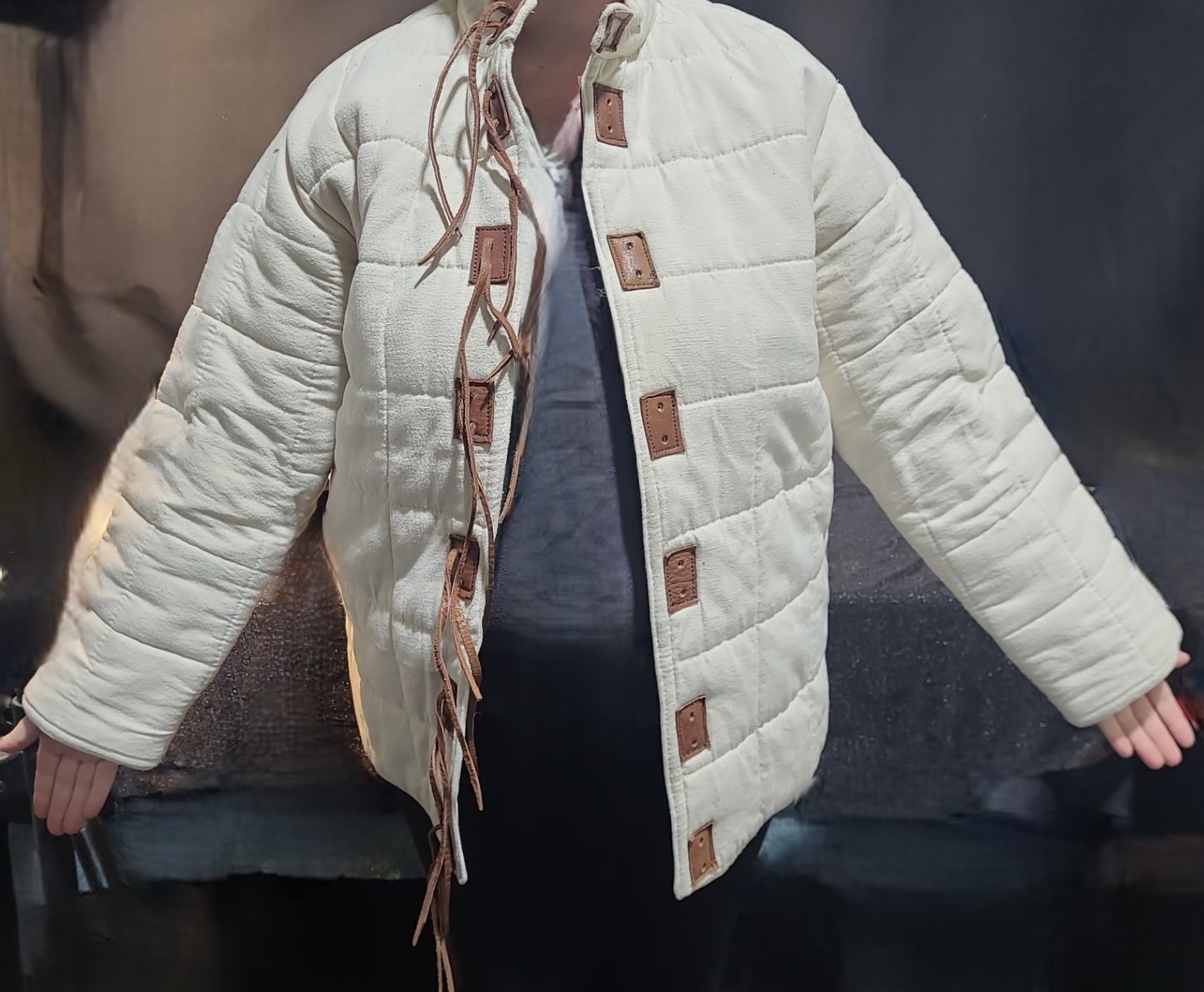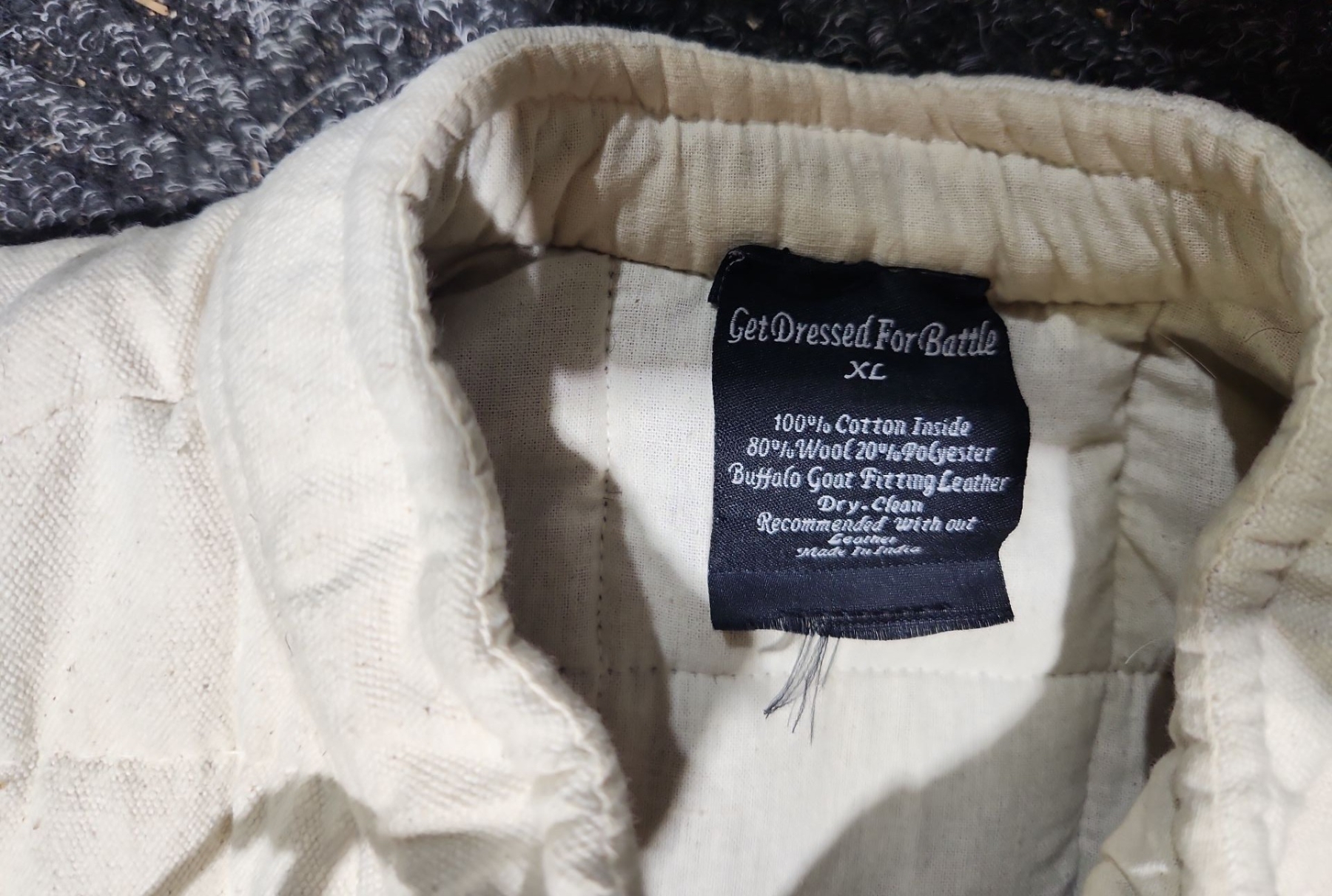 Lot 27 Paramount Costume: Chainmail Top, Robes, Boots/ 10, Belt/ Medium, Quilted Coat XL- See Description