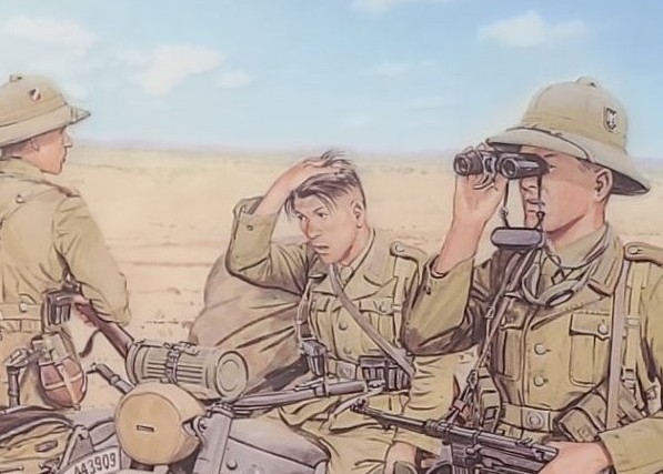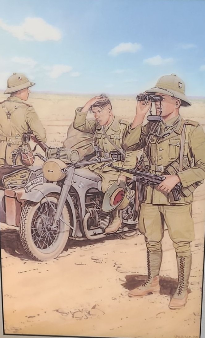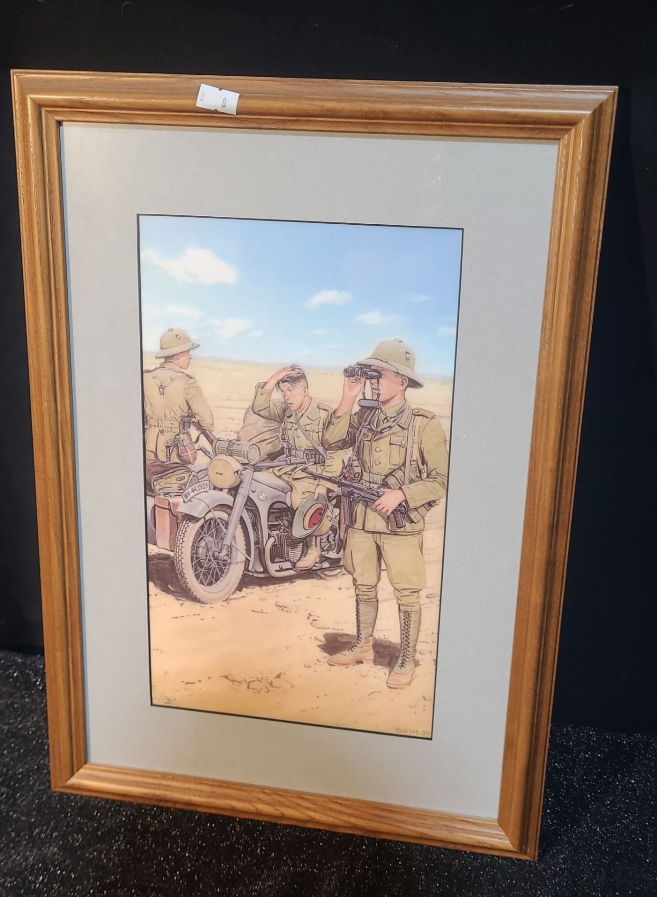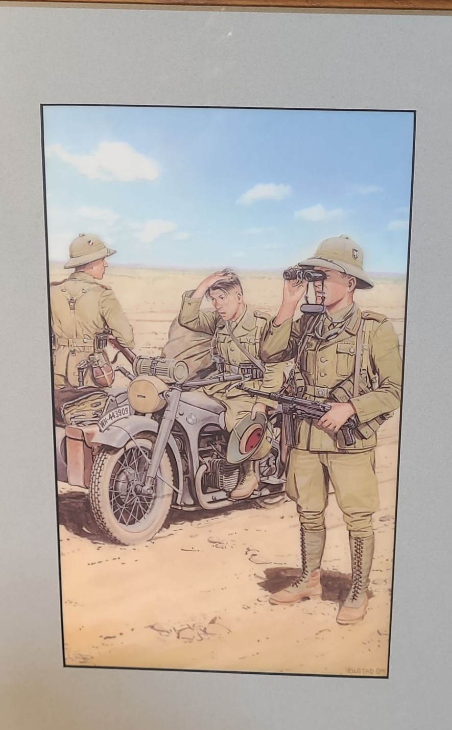 Lot 8 Soldiers w/ Motorcycle Scouting, Artist: Volstad, 13 x 18 Print Framed Under Glass