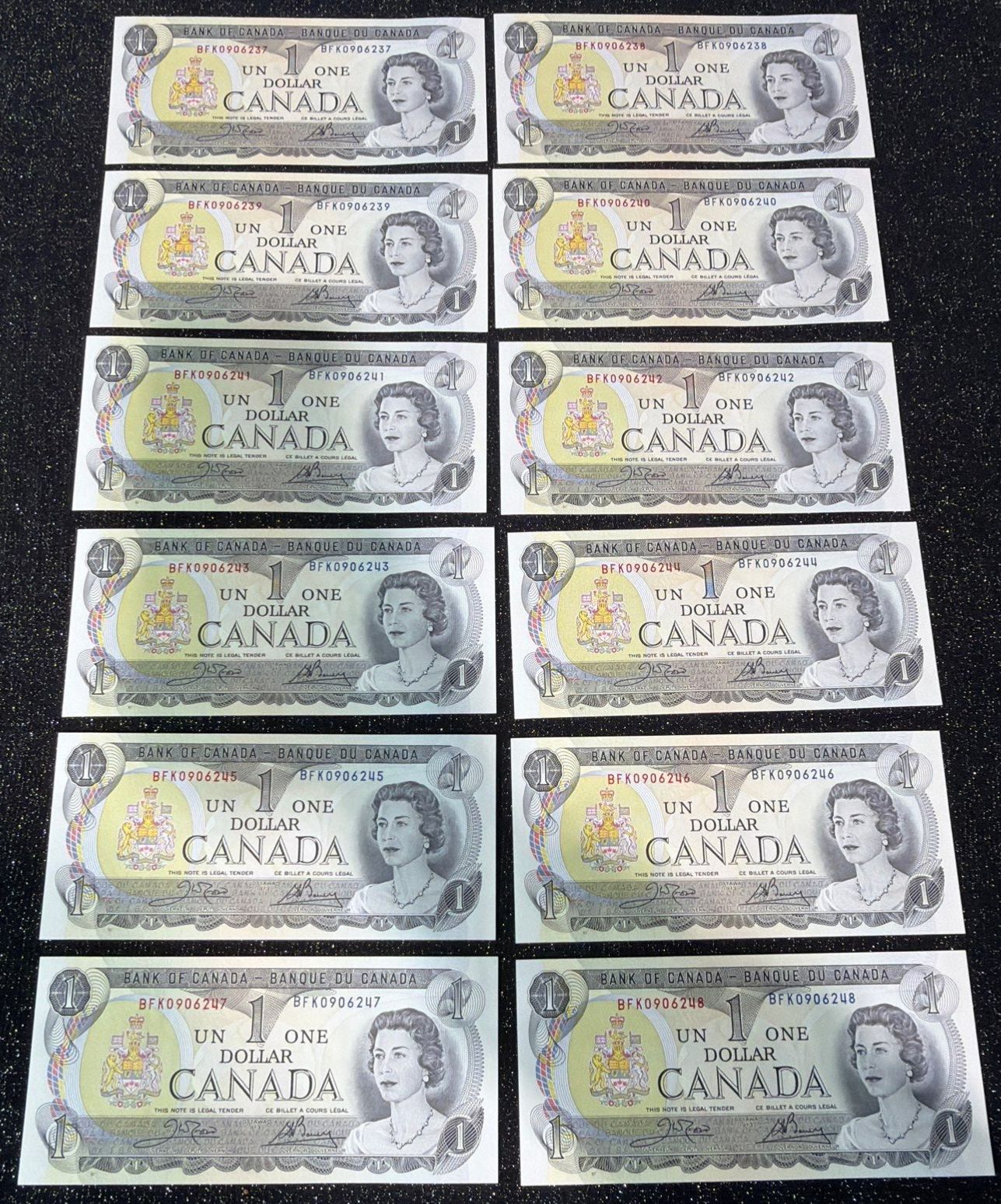 Lot 20 Canadian $1 Bills Consecutive Serial Numbers