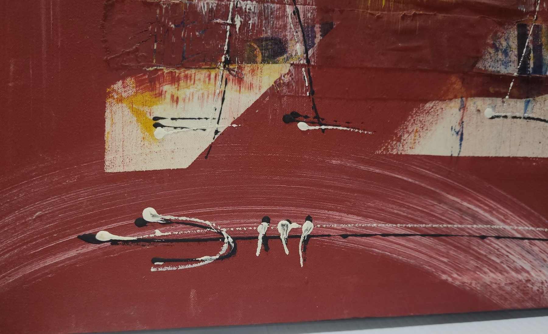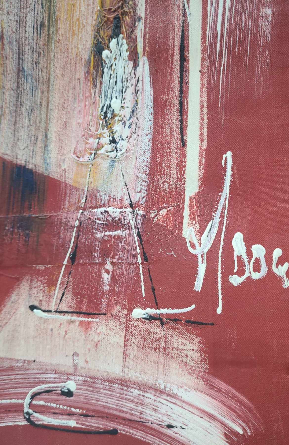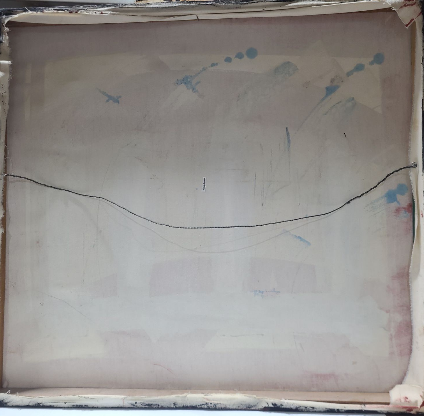 Lot 17 Abstract of Figures Walking w/Supplies, Artist Illegible, 28 x 25 Paint Print on Canvas