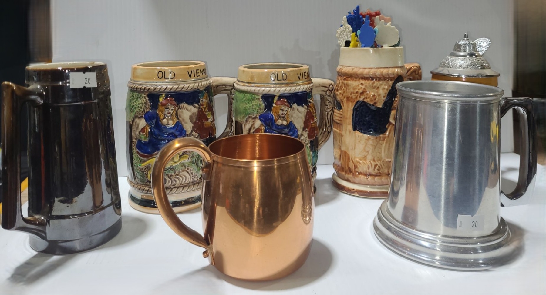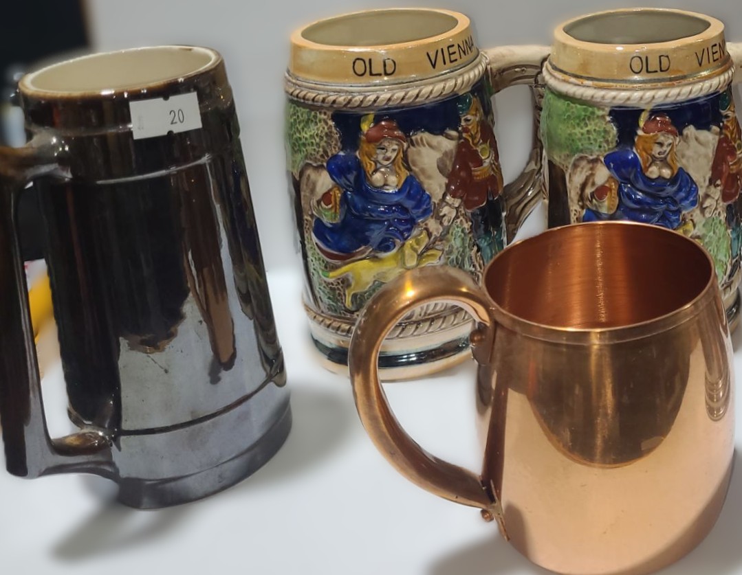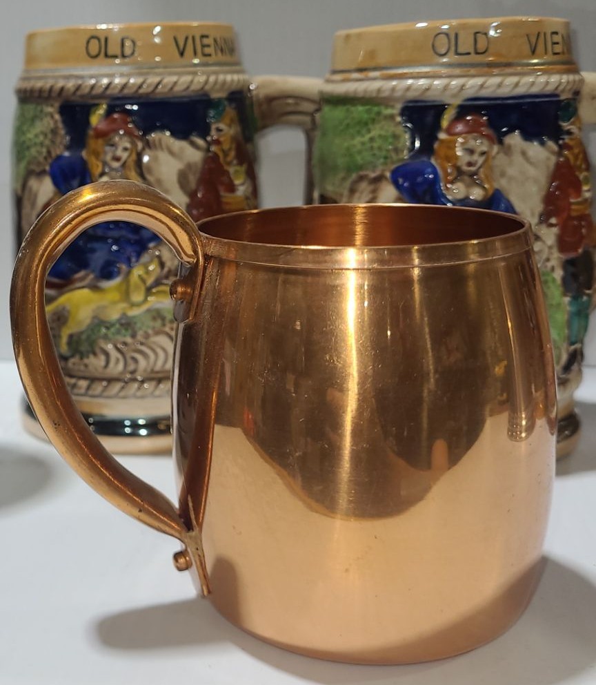 Lot 20 Westbend Copper Mug 3" Diameter Top, 3.5 T, Steins: "Old Vienna" 6 T