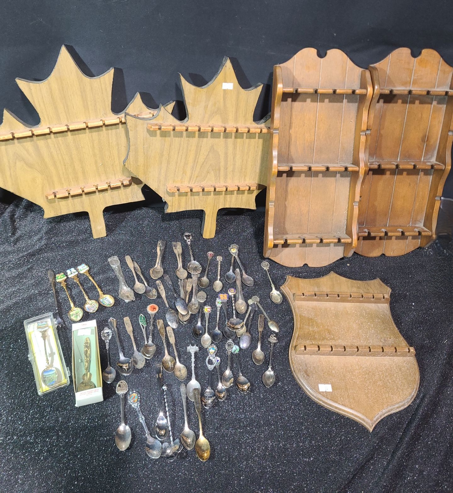 Lot 22 Spoon Racks- Largest Leaf:15 x 15.5, Rectangular: 7.5 x 17.5, Souvenir Spoons