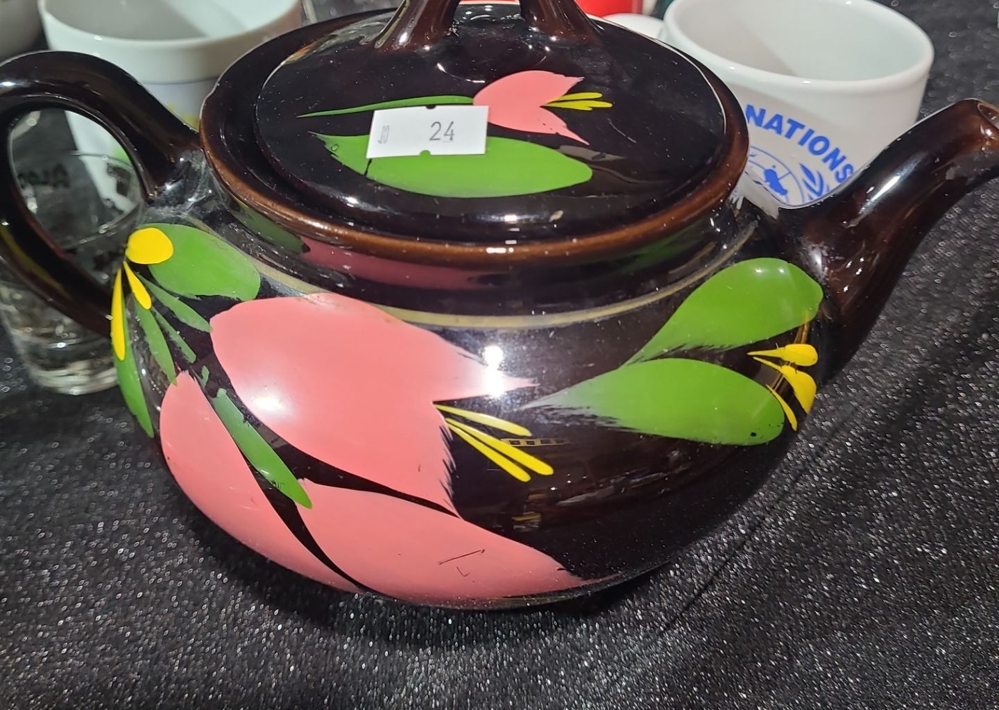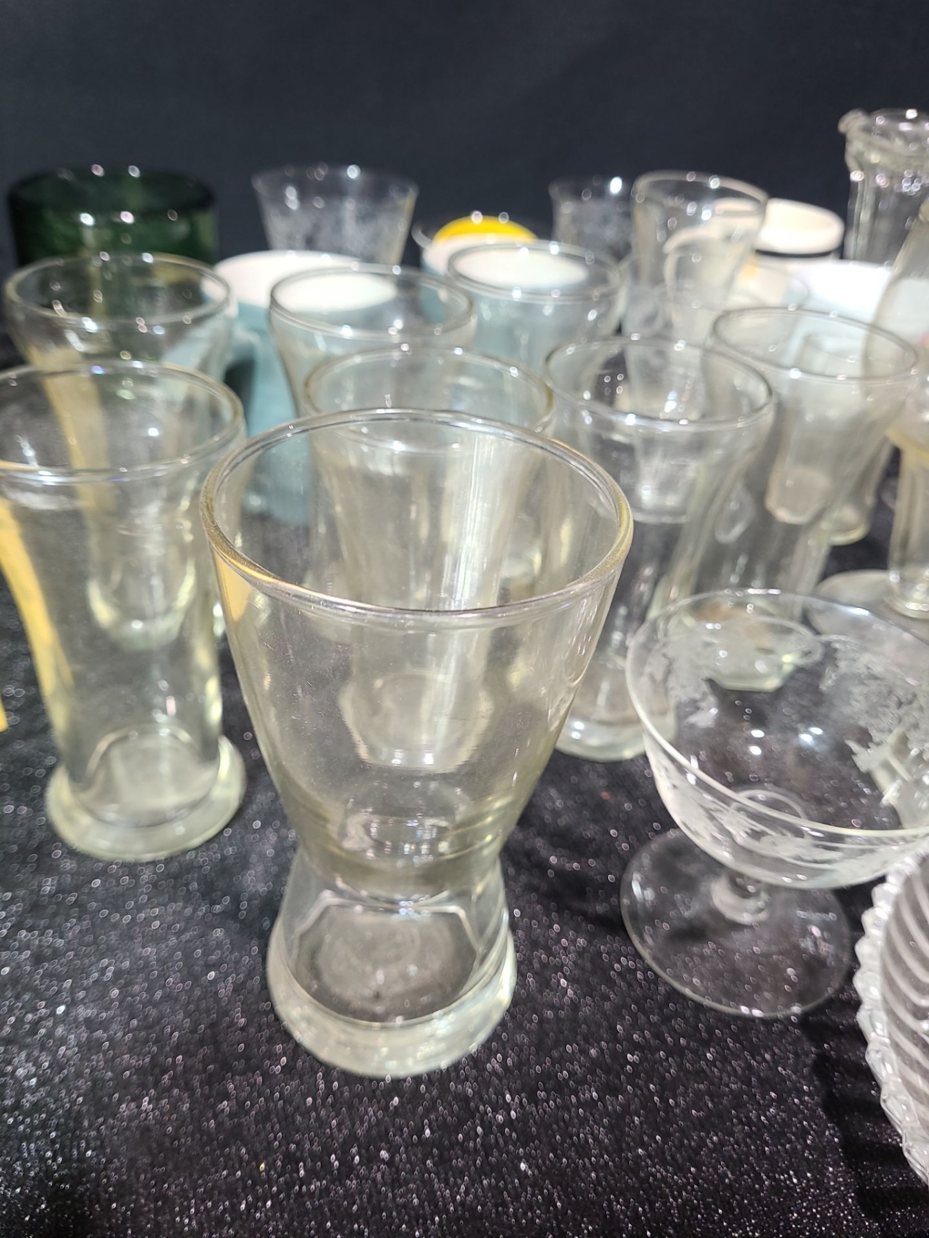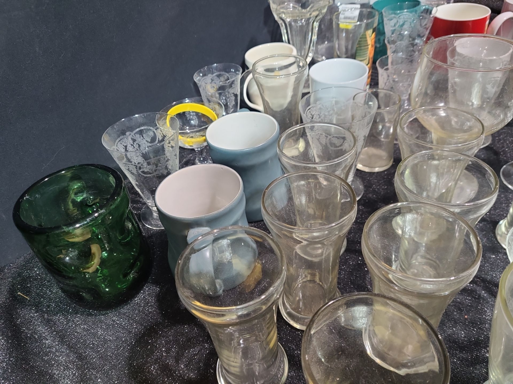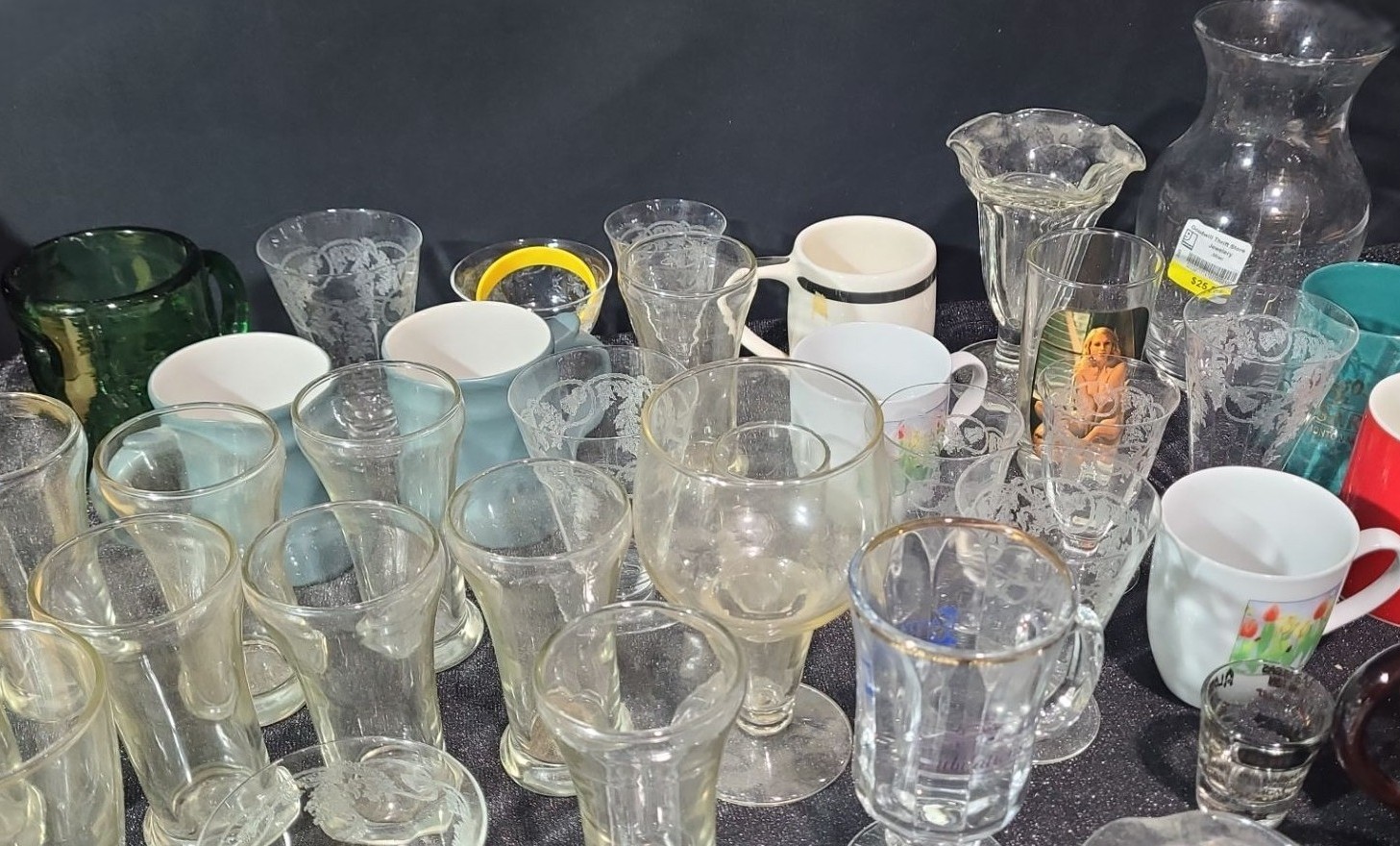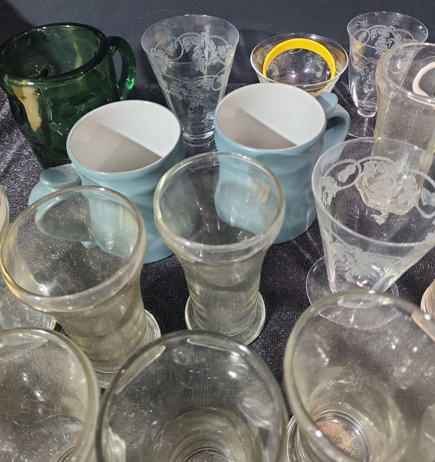 Lot 24 Teapot, Mugs and Assorted Glassware- Tallest vase: 7 T