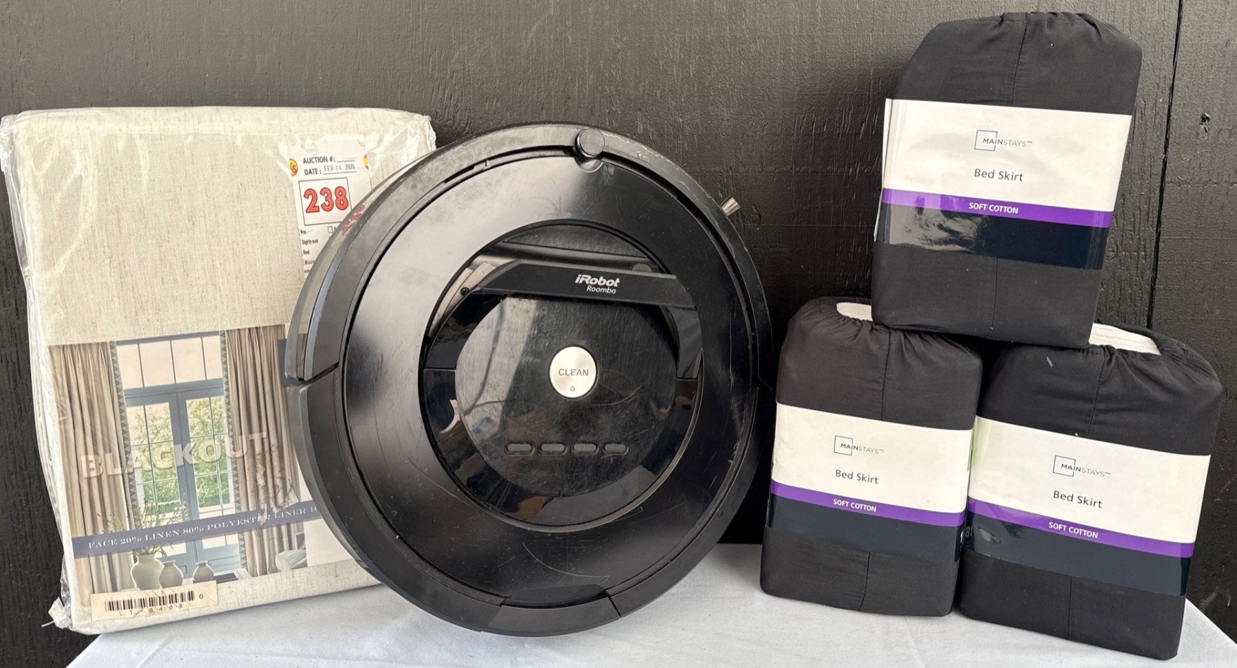 Lot 16 iRobot Roomba 880 Robo Vac w/ New Black Out Blinds & Soft Cotton Mainstay Bedskirts