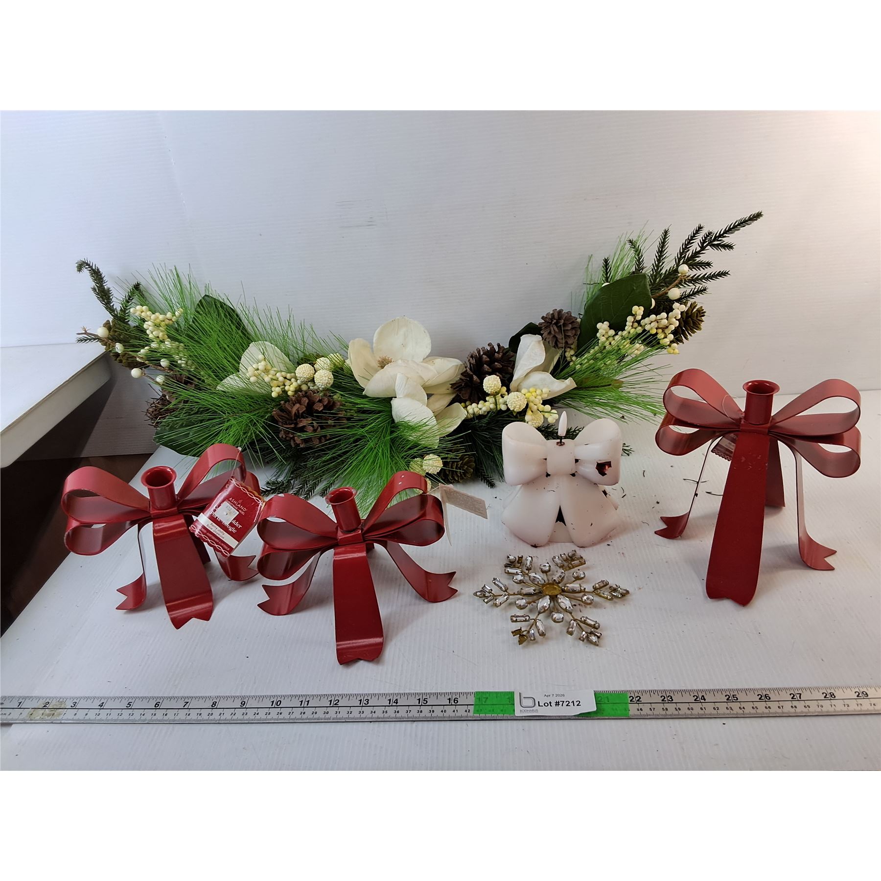 Lot 7212 Christmas Decor-Artificial Plant, Candle, Candle Holders Up to 7.5"