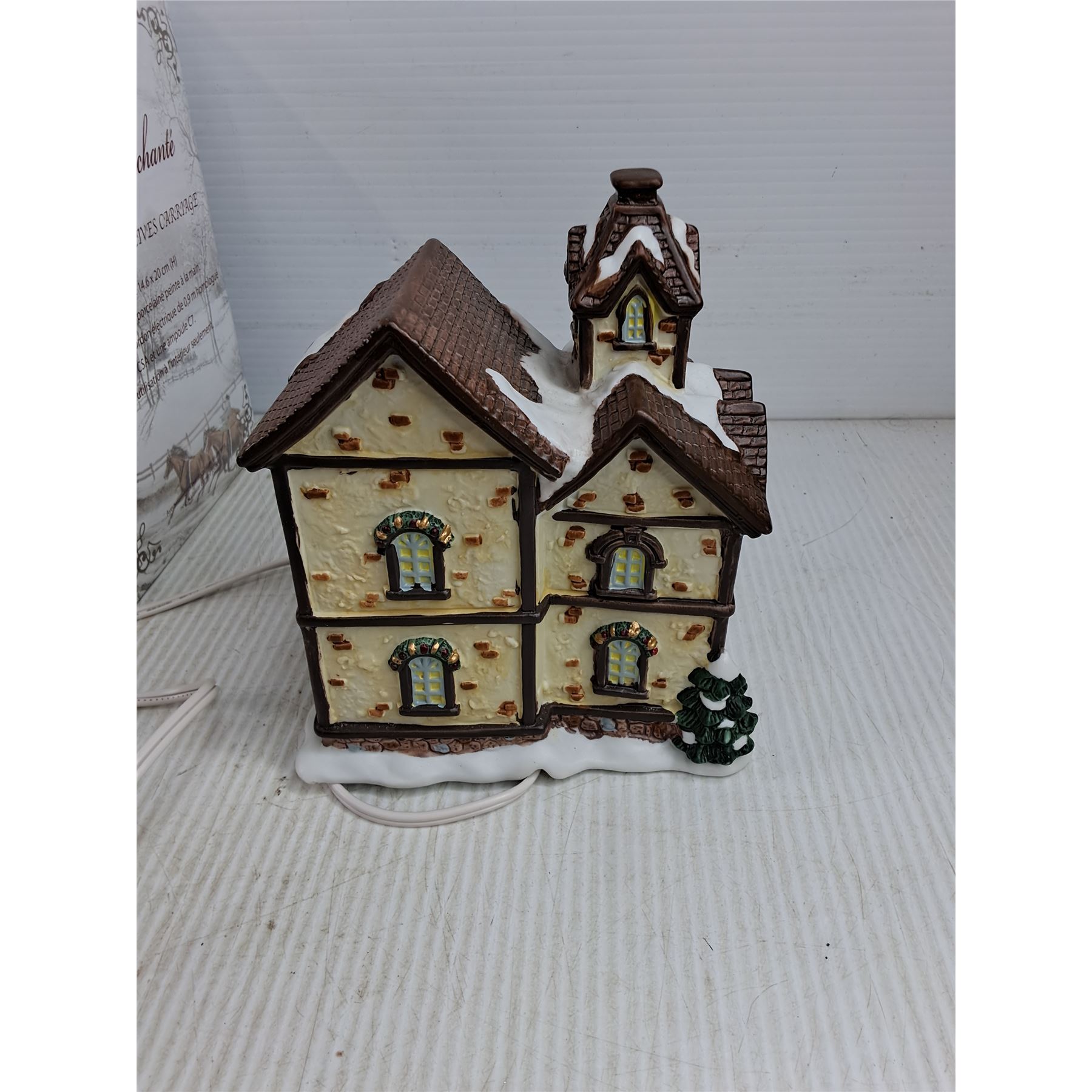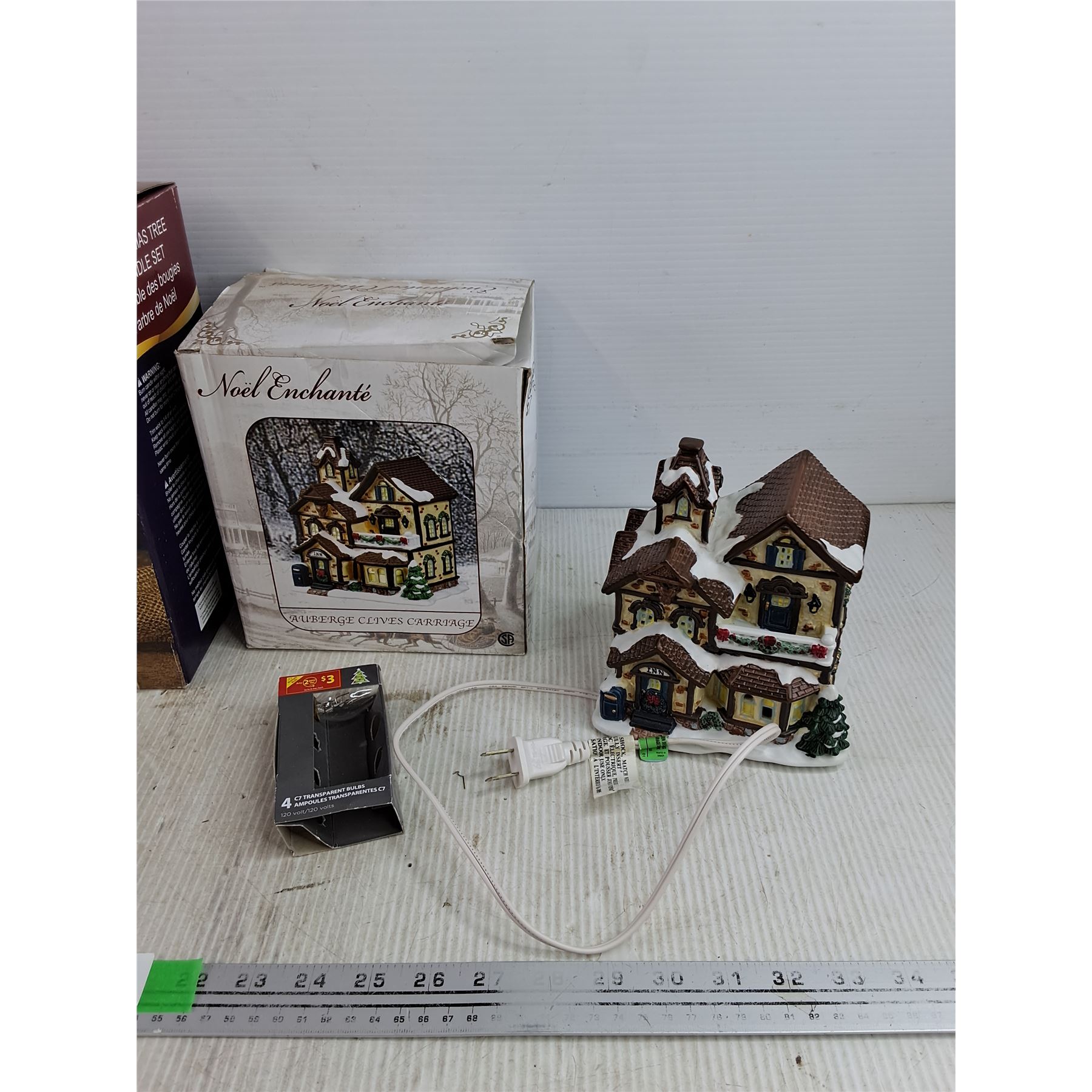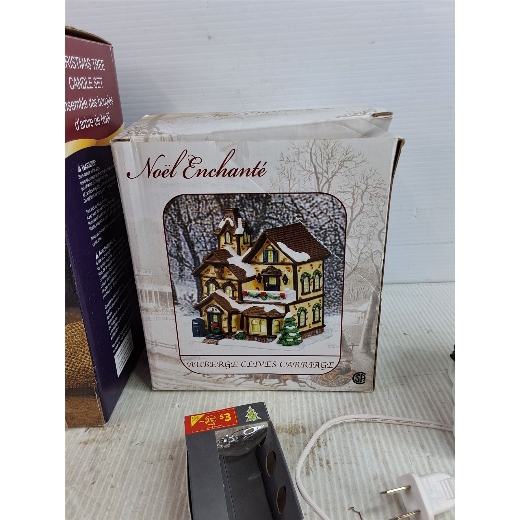 Lot 7274 Christmas Tree Candle Set, Noel Enchante Auberge Clives Carriage Light Up Mansion - Powers On, As Is