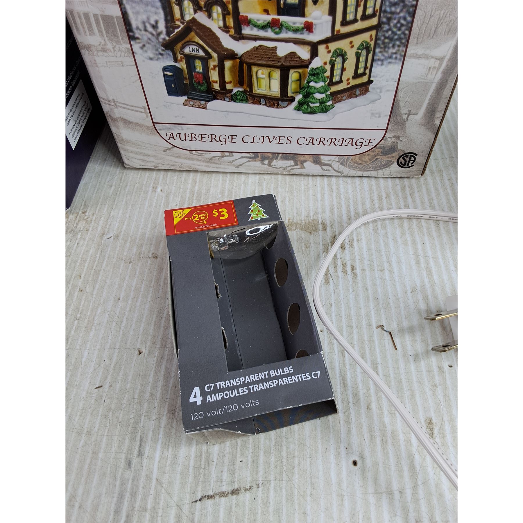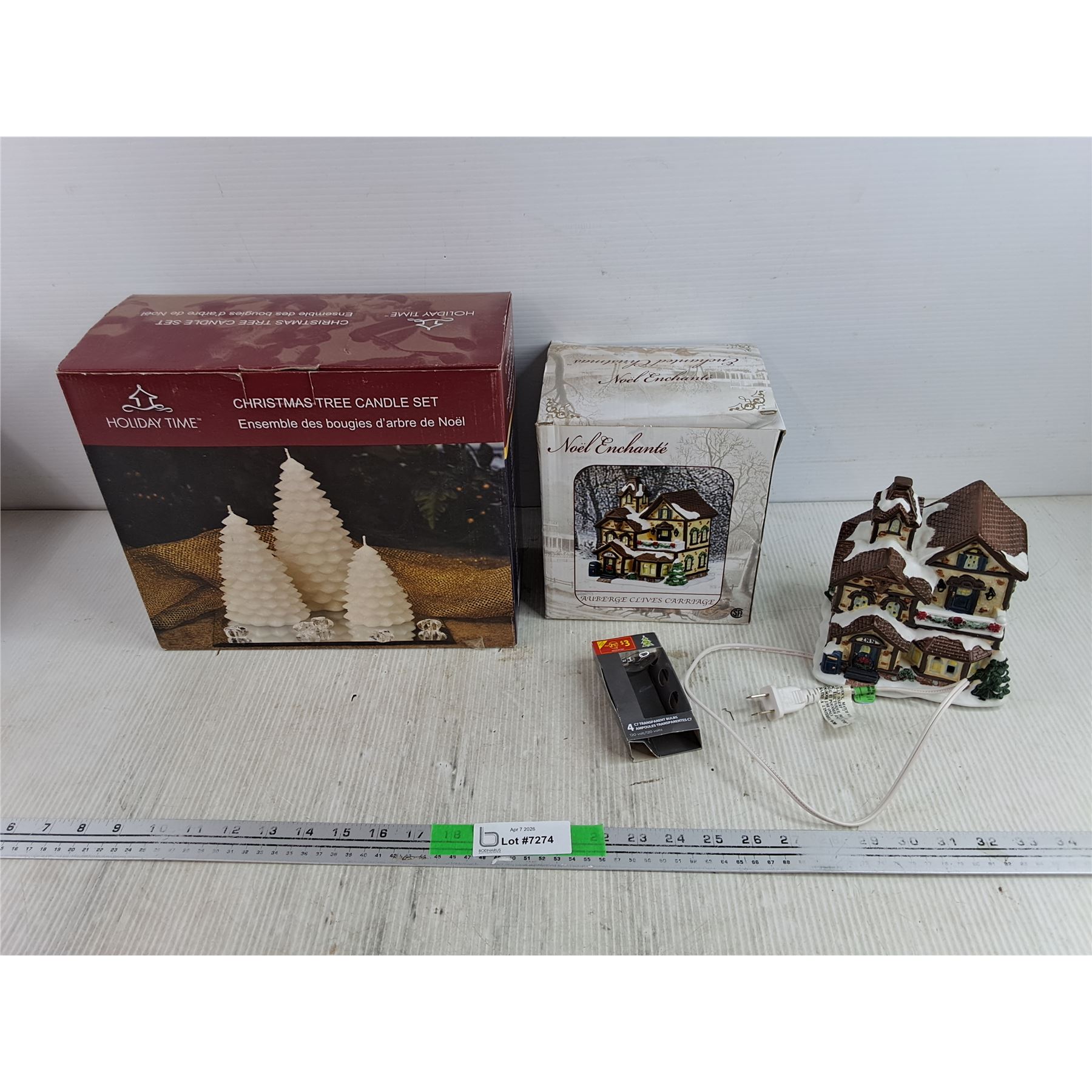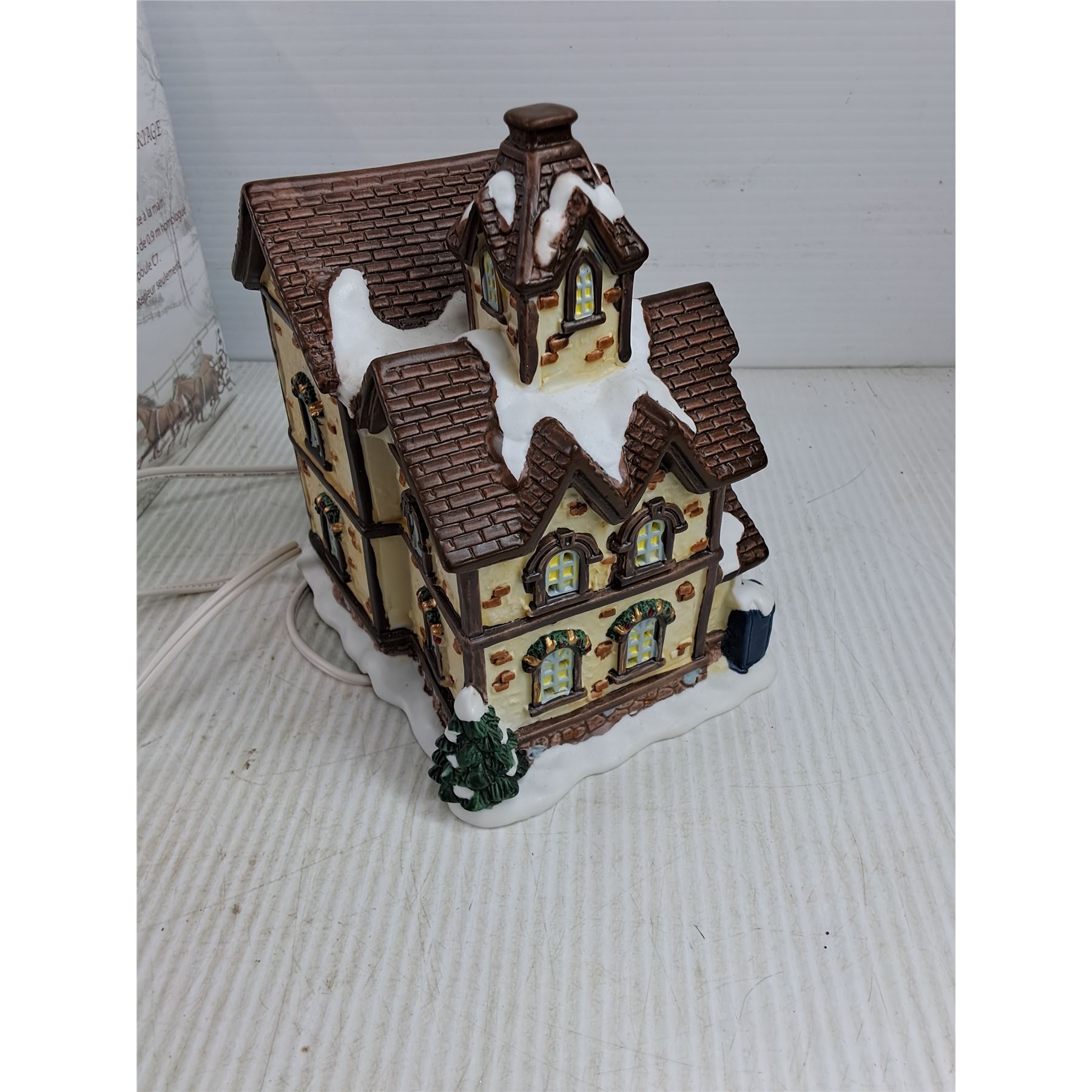 Lot 7274 Christmas Tree Candle Set, Noel Enchante Auberge Clives Carriage Light Up Mansion - Powers On, As Is
