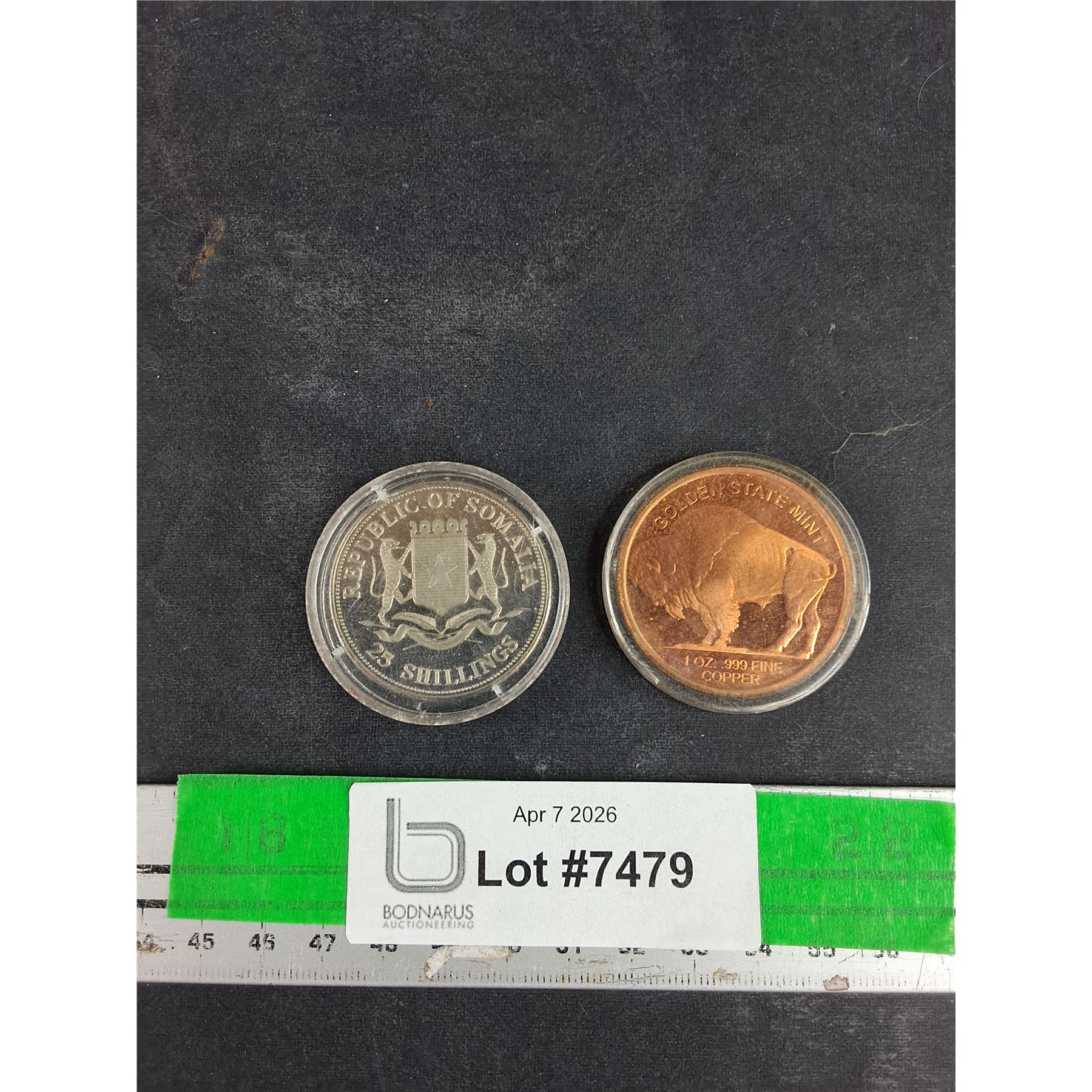 Lot 7479 25 Somalian Shillings Coin, Golden State Mint 1 Oz. 999 Copper Coin - CANNOT AUTHENTICATE