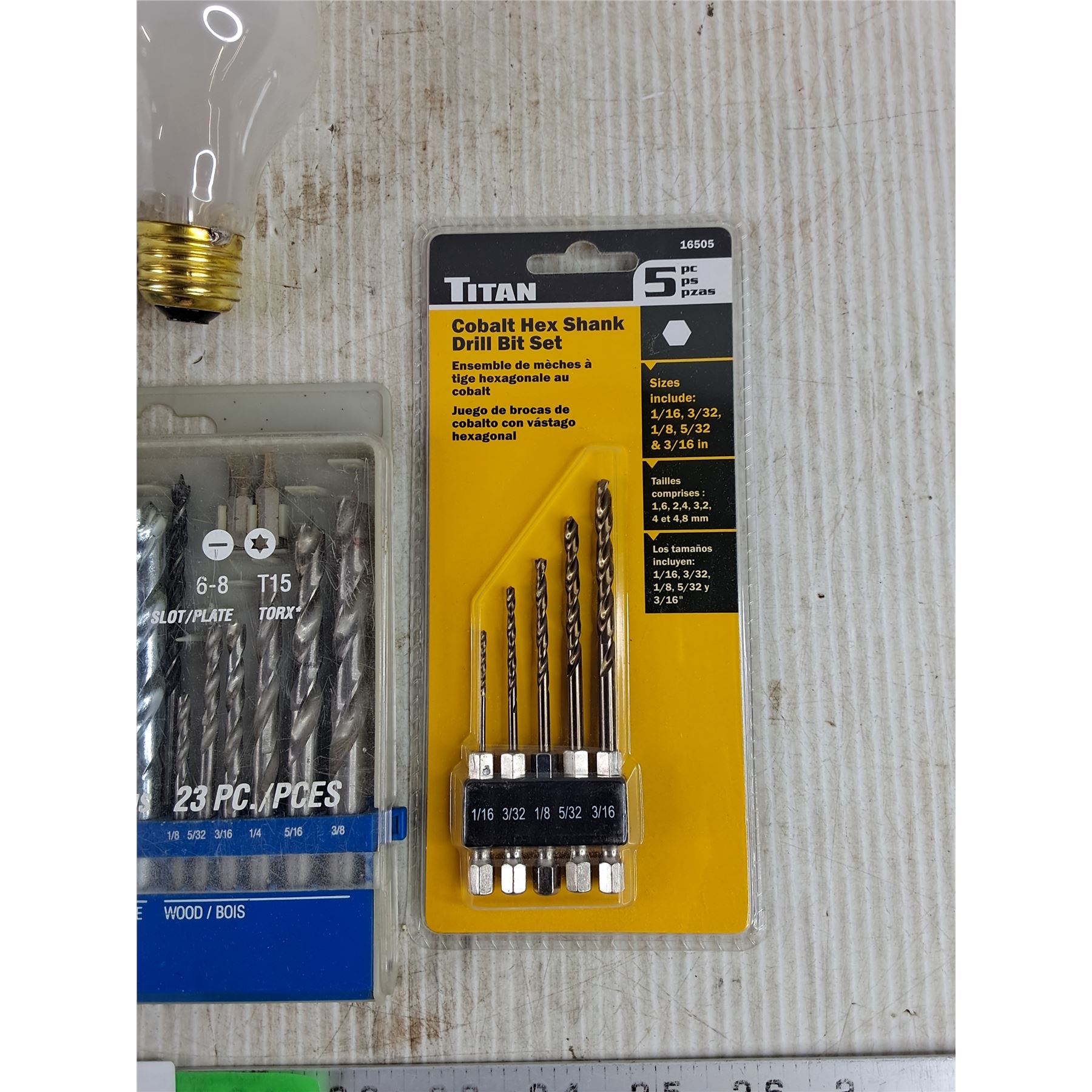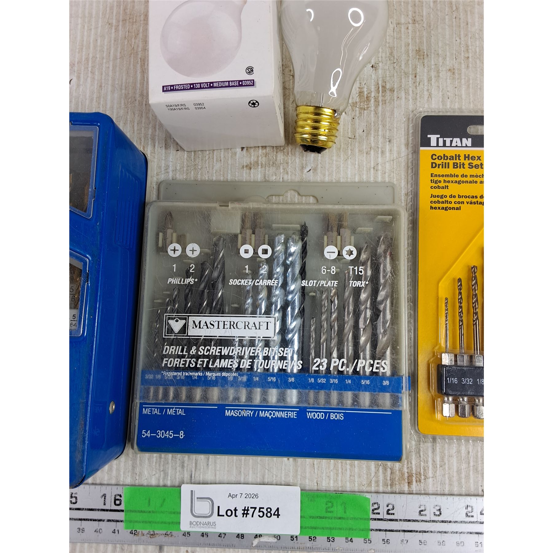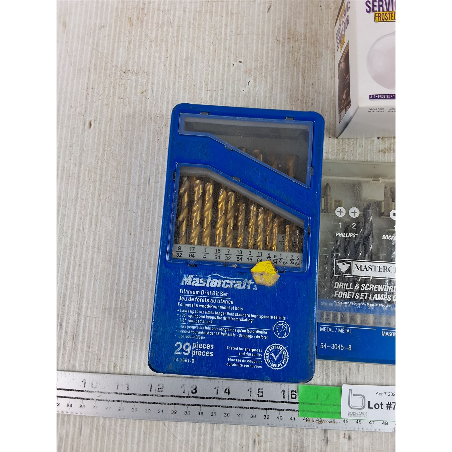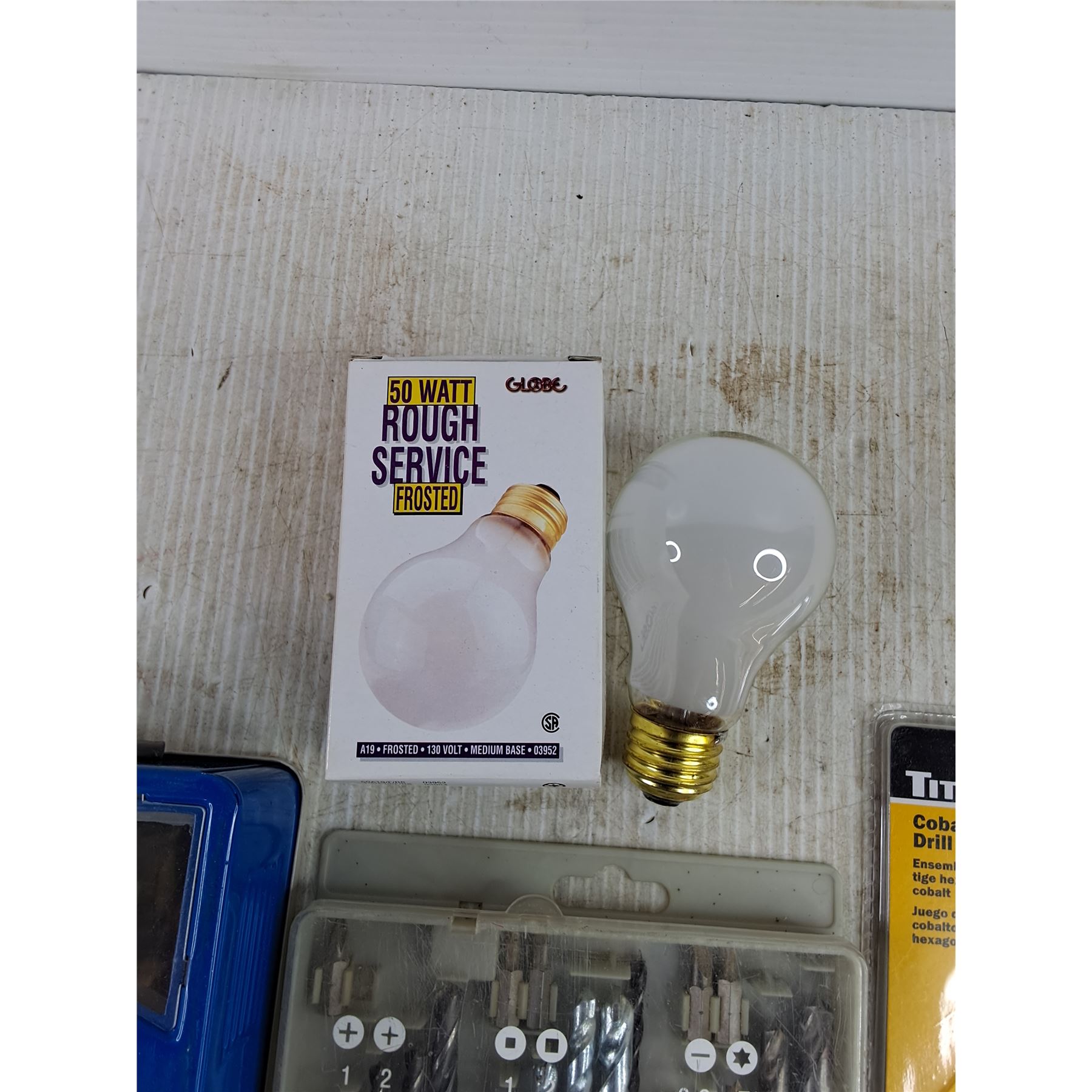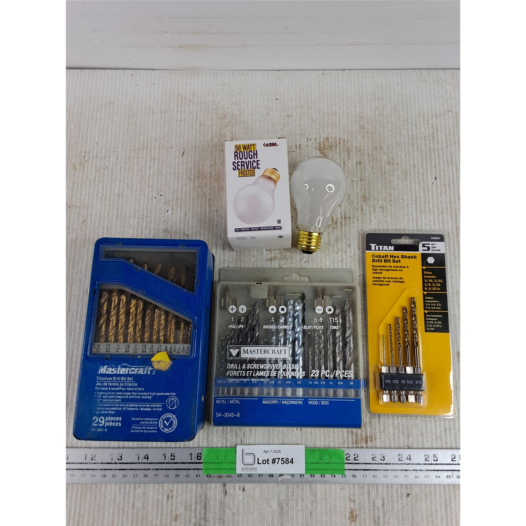 Lot 7584 Titan & Mastercraft Drill Bits, 50 Watt Rough Service Frosted Light Bulb