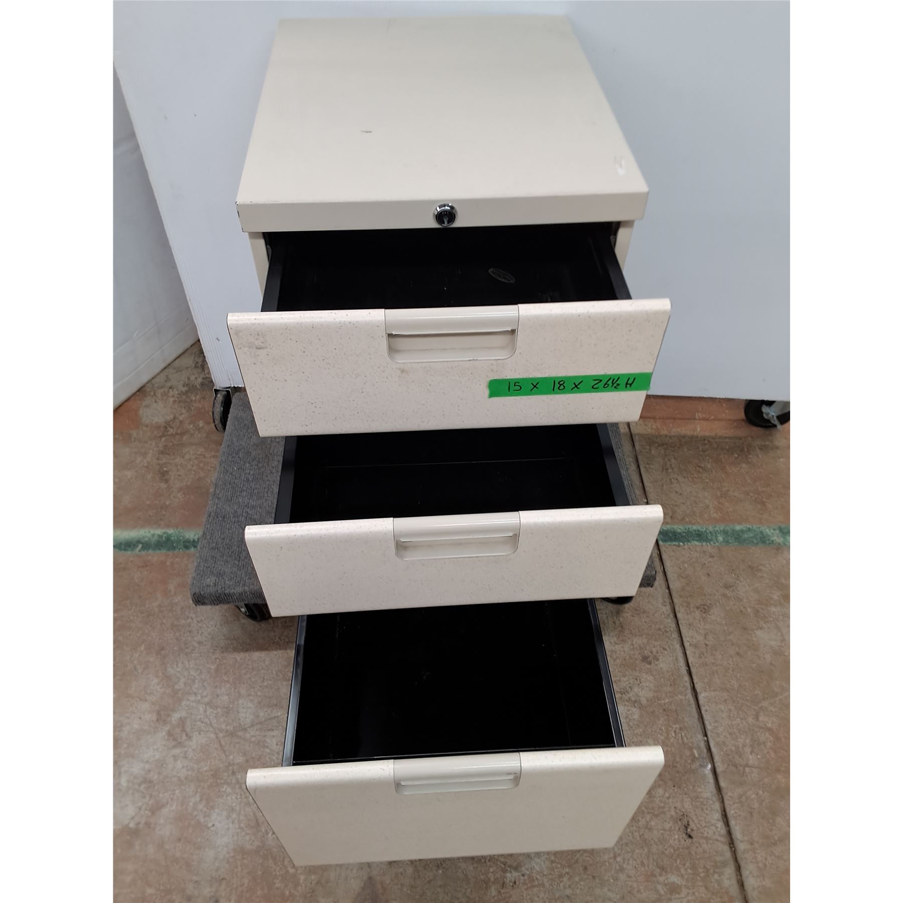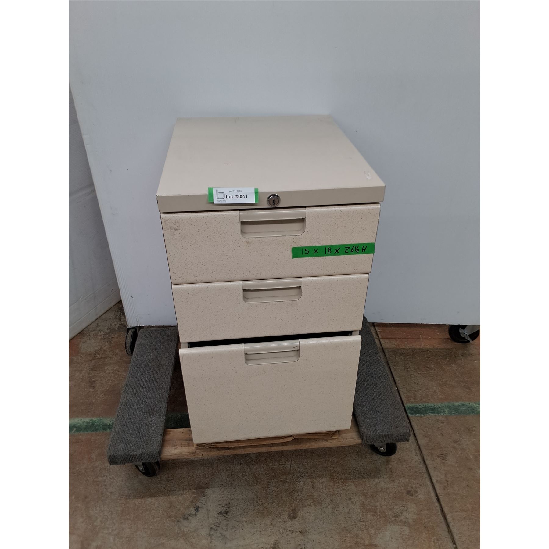 Lot 3041 * Heavy Duty Locking 3-Drawer File Cabinet, No Key - 15x18x27" - Pickup Only - Dolly Not Included