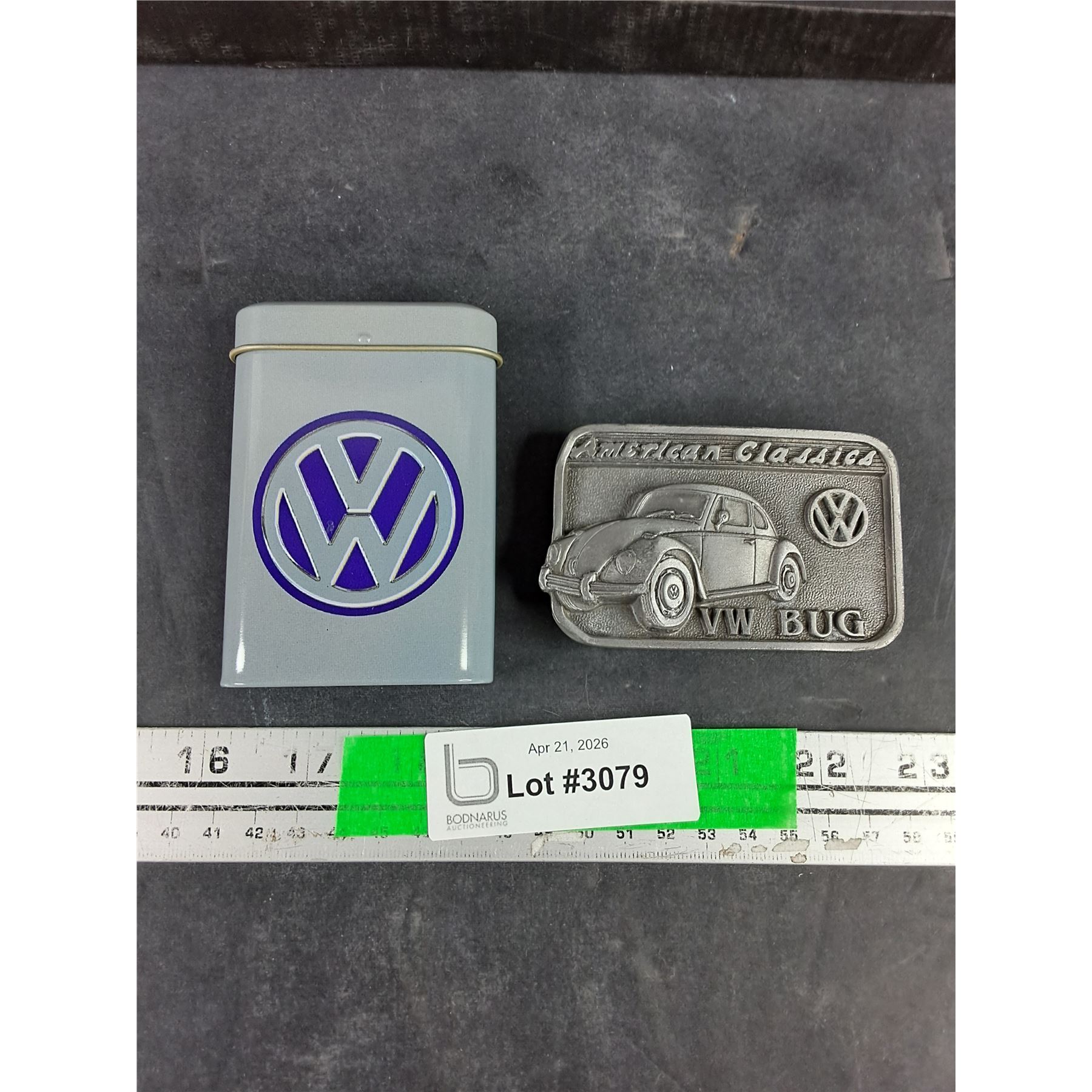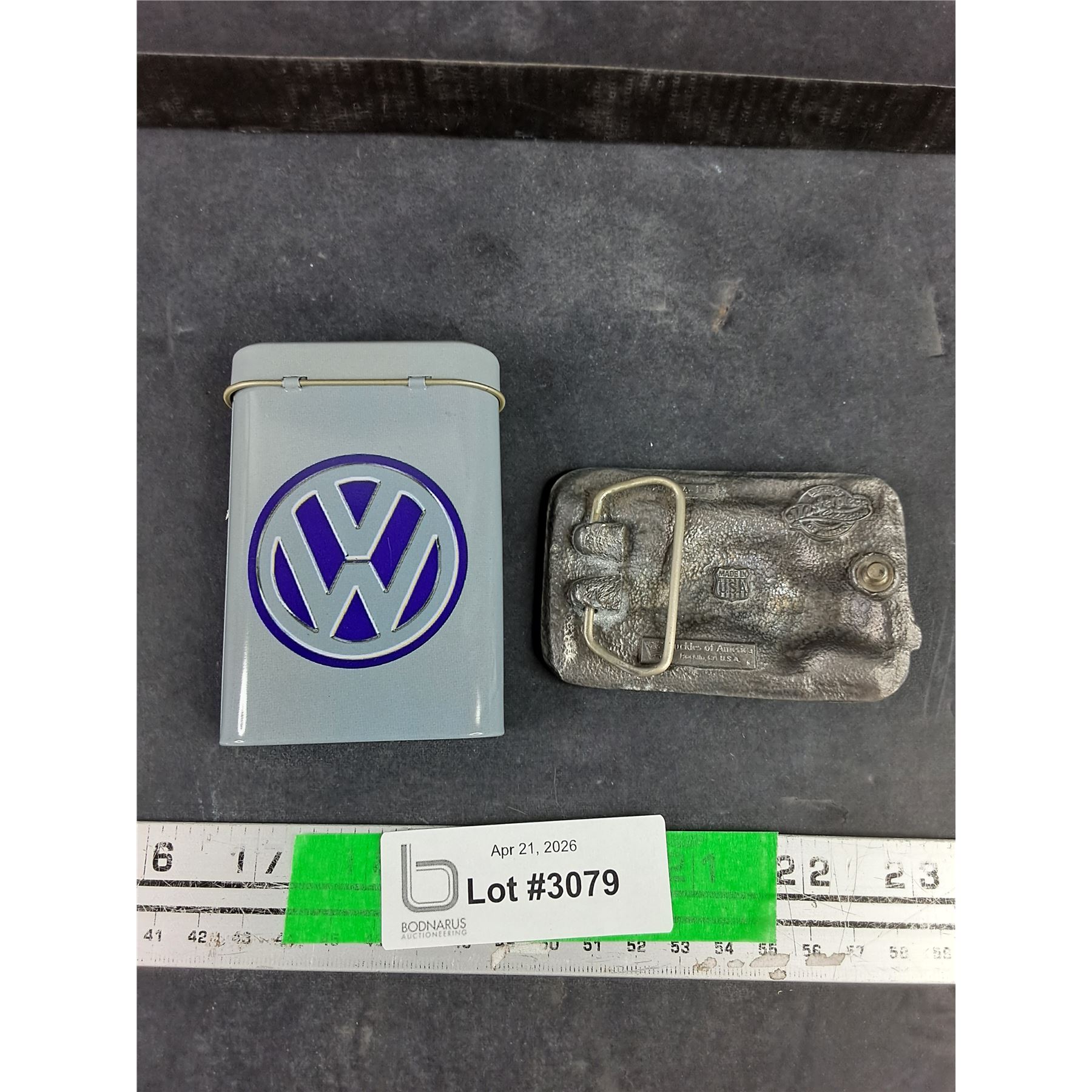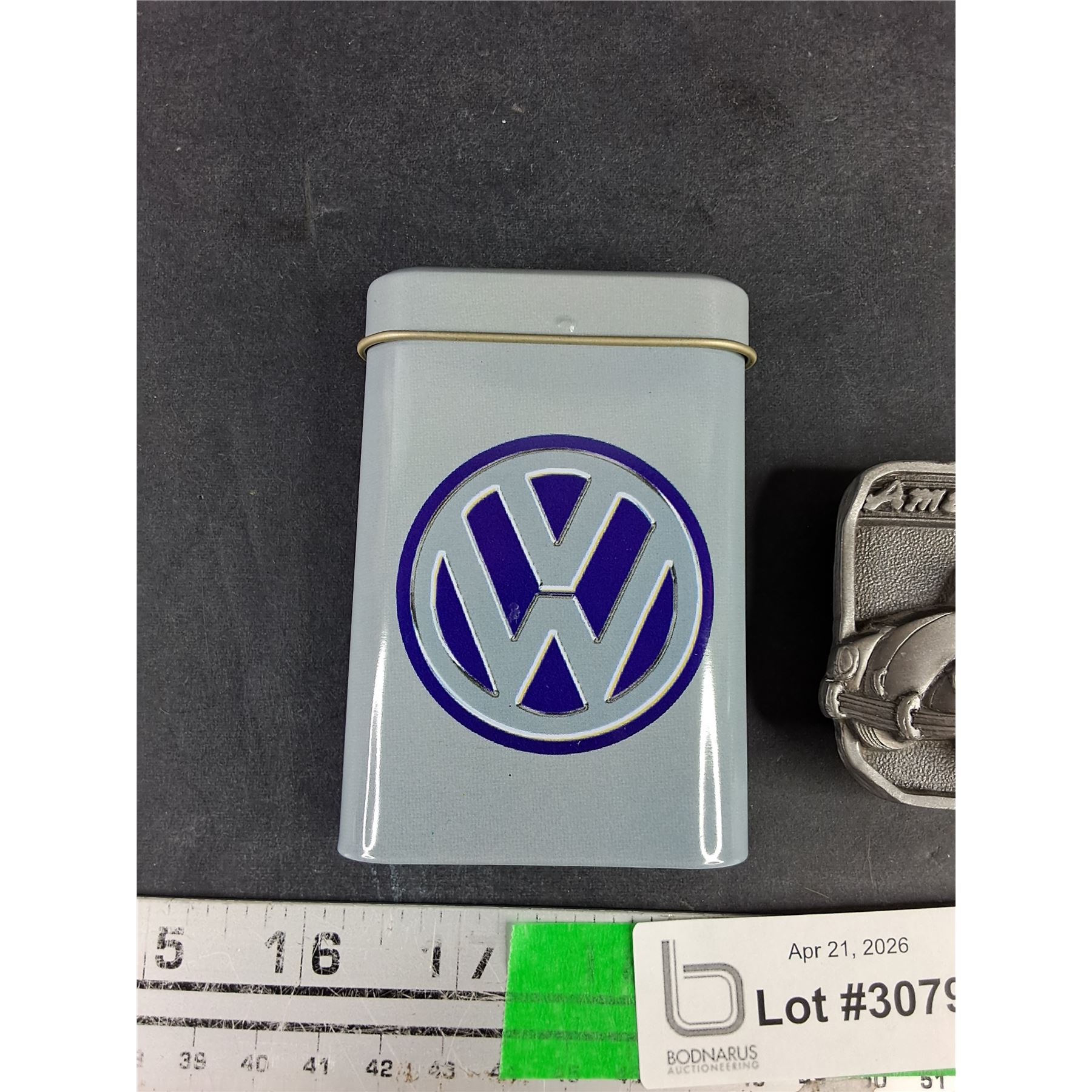 Lot 3079 Volkswagen Pocket Tobacco Can, American Classics VW Bug Belt Buckle