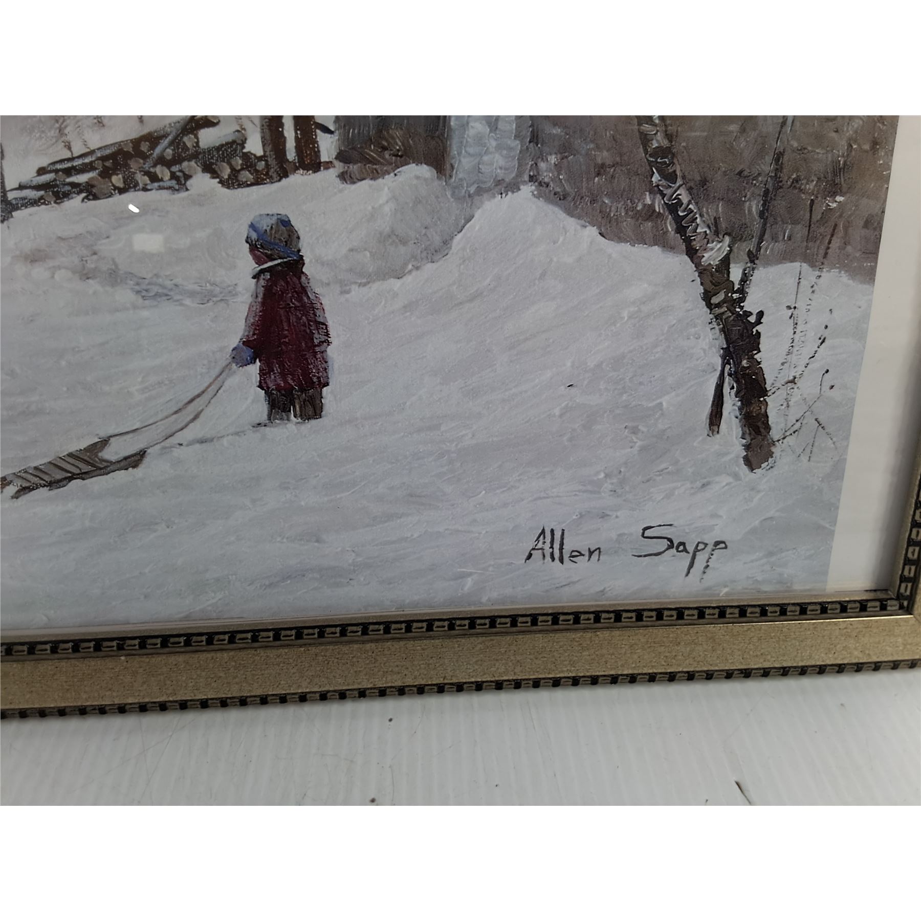 Lot 3164 "Kid Has Two Dogs" COPY of Allen Sapp Painting 25.5" x 13.75"- Cannot Ship