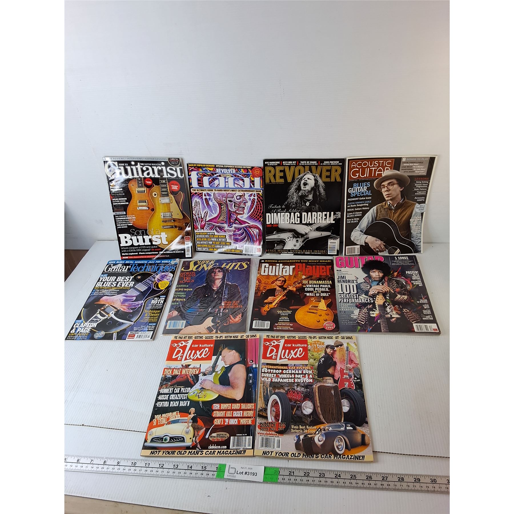 Lot 3193 Music/Car Magazines- Revolver, Acoustic Guitar, Car Kulture Deluxe, Misc.