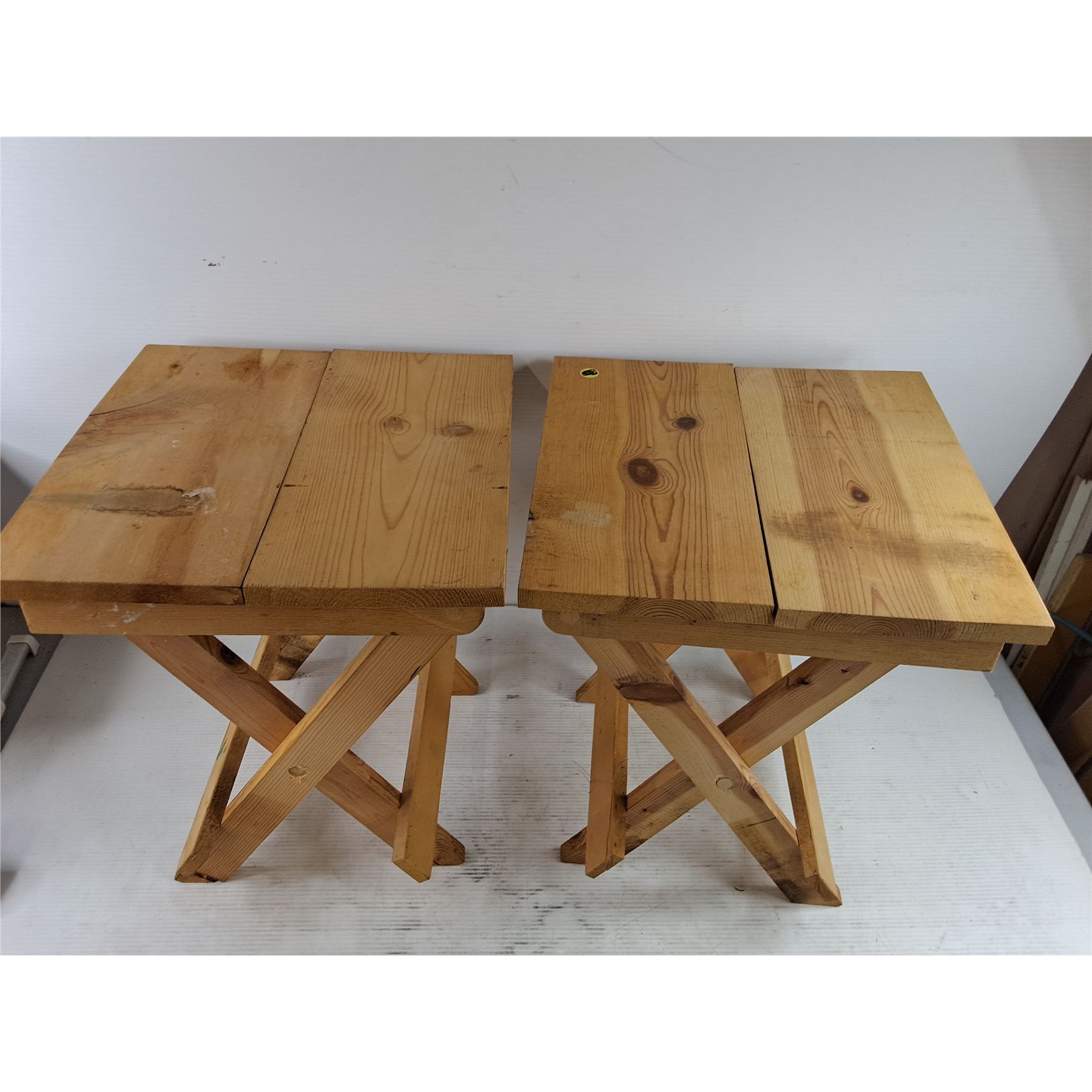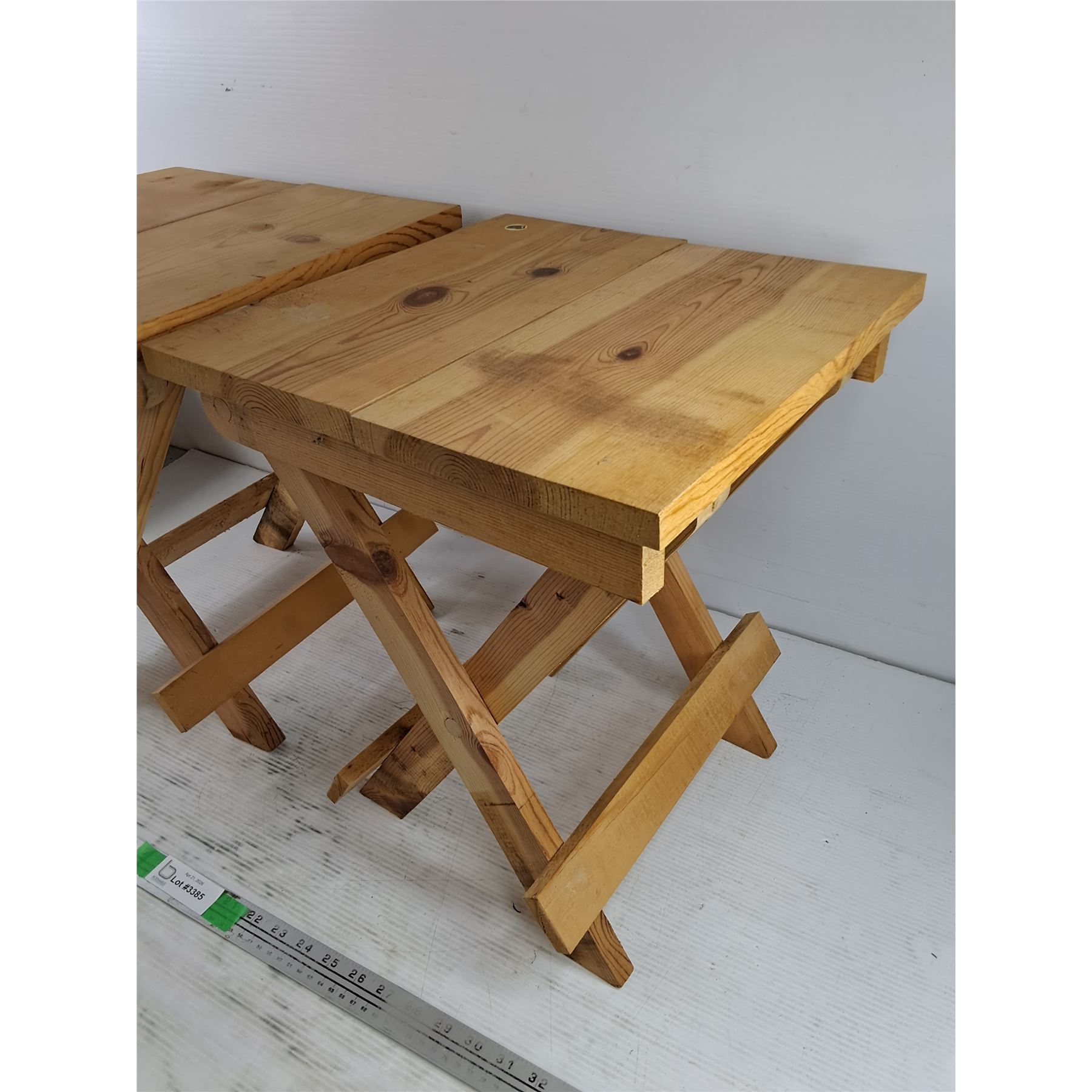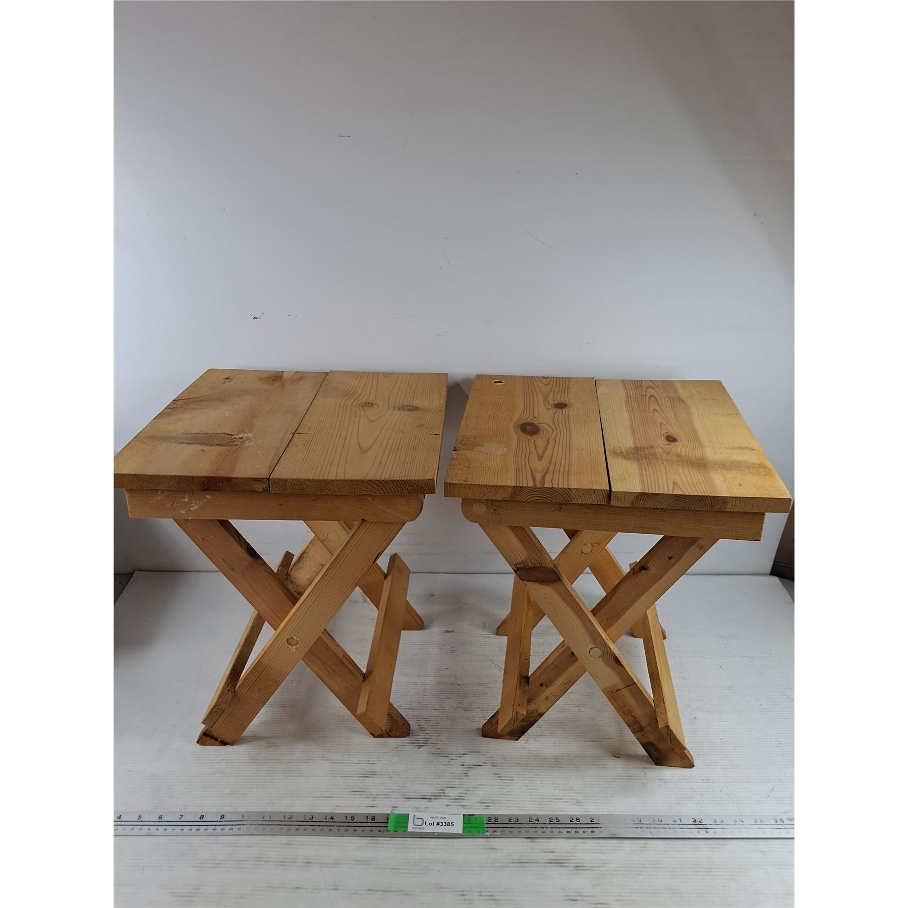 Lot 3385 (2) Wooden Folding Stools 17" x 15" x 14" - PICK UP