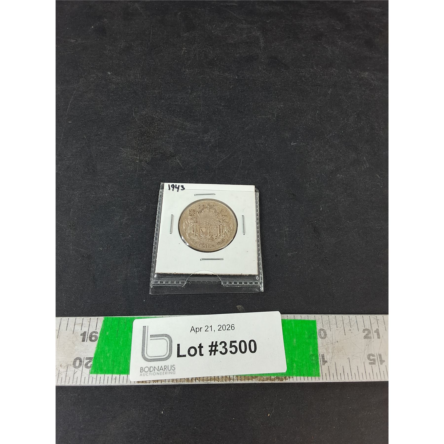 Lot 3500 1943 Vintage Canadian 50 Cent Collectible Coin ( as is, cannot authenticate)