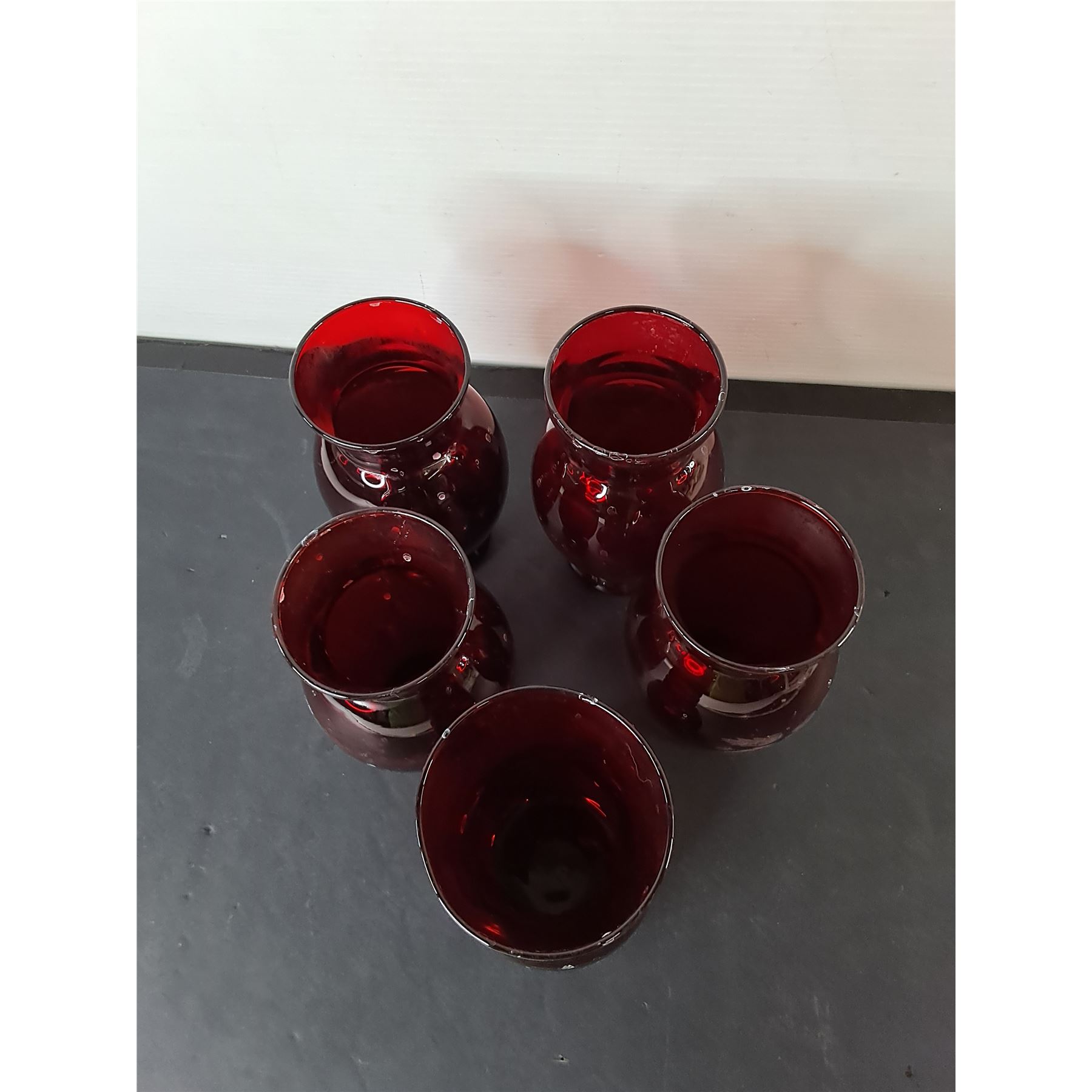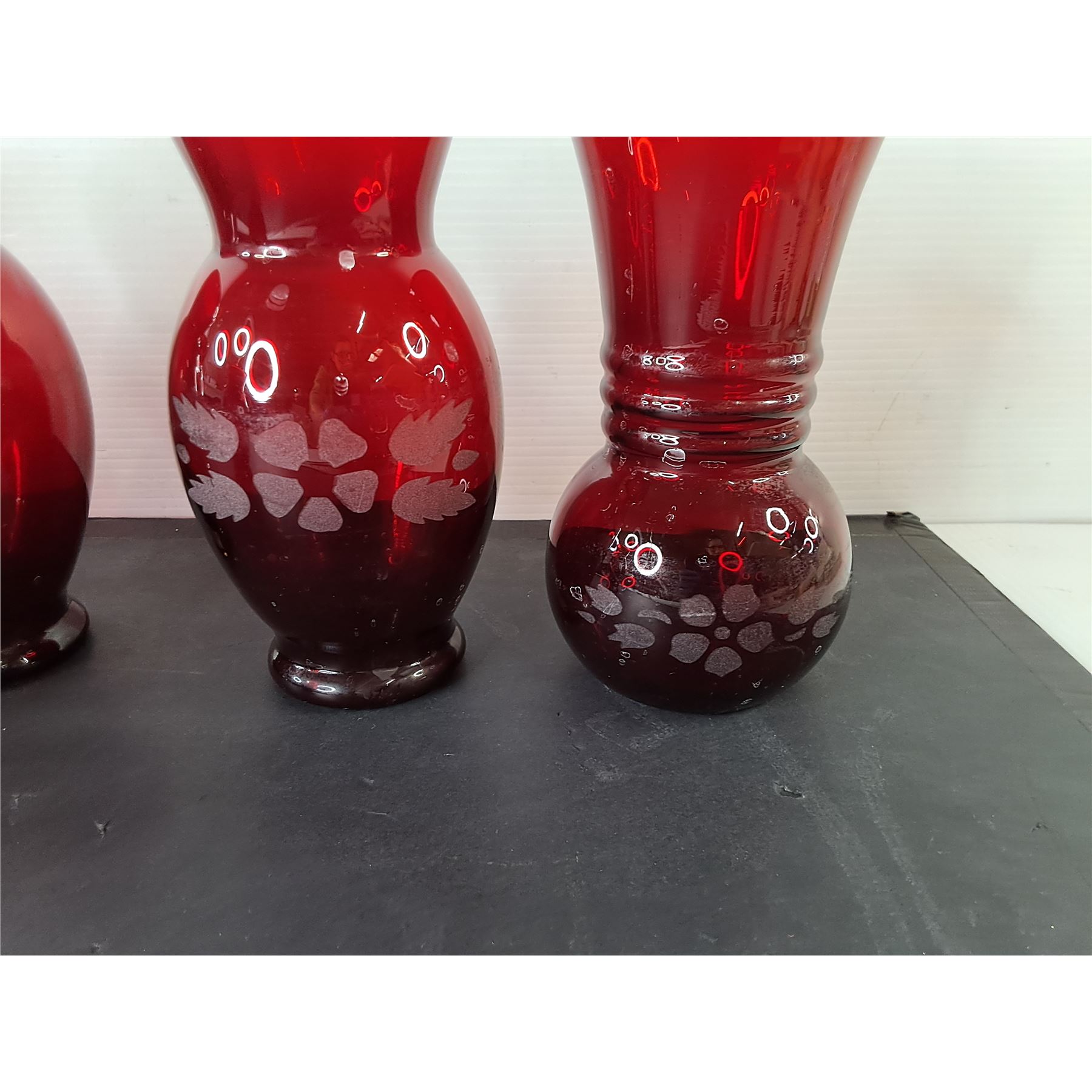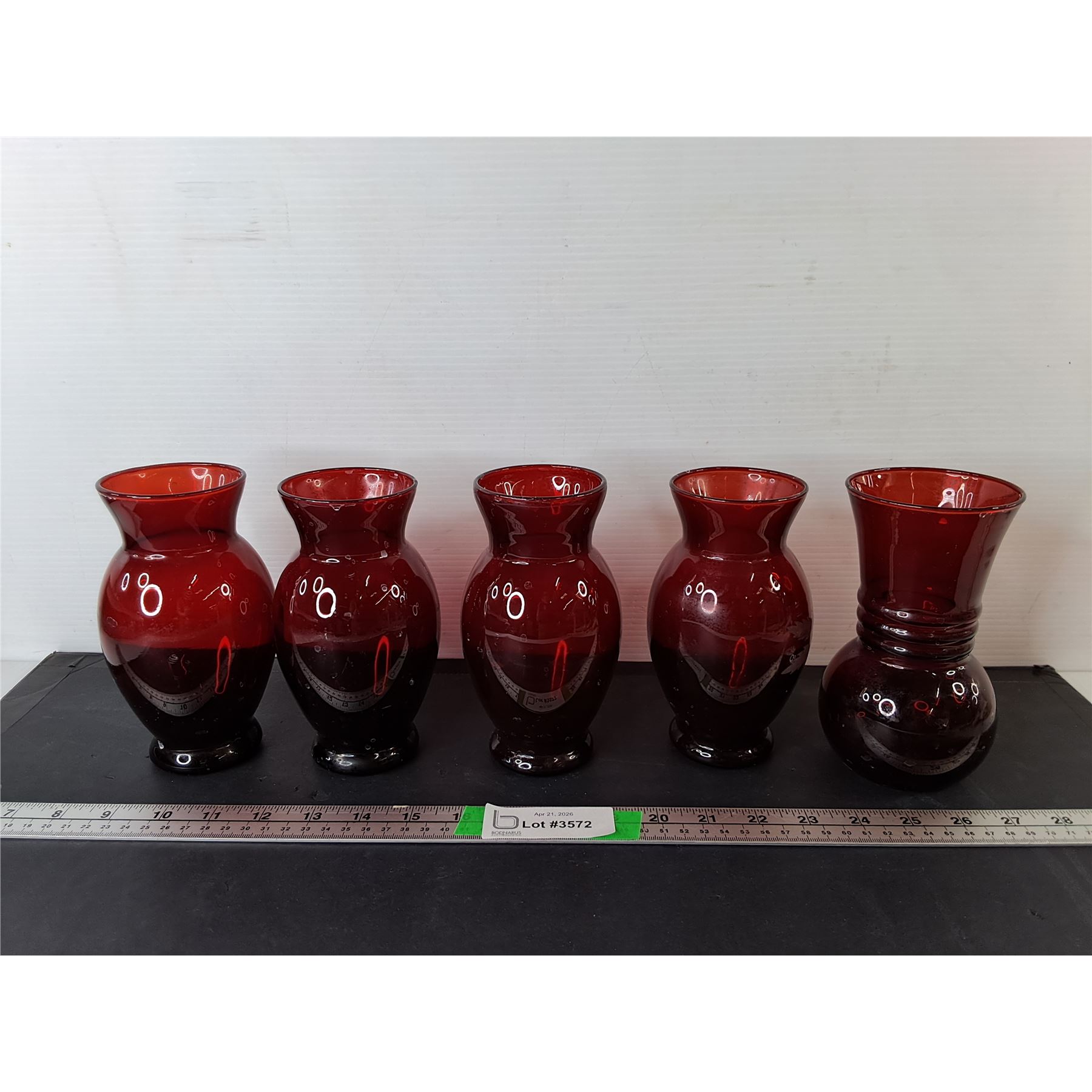 Lot 3572 (5) Ruby Red Glass Vases Up to 6.5" - PICK UP