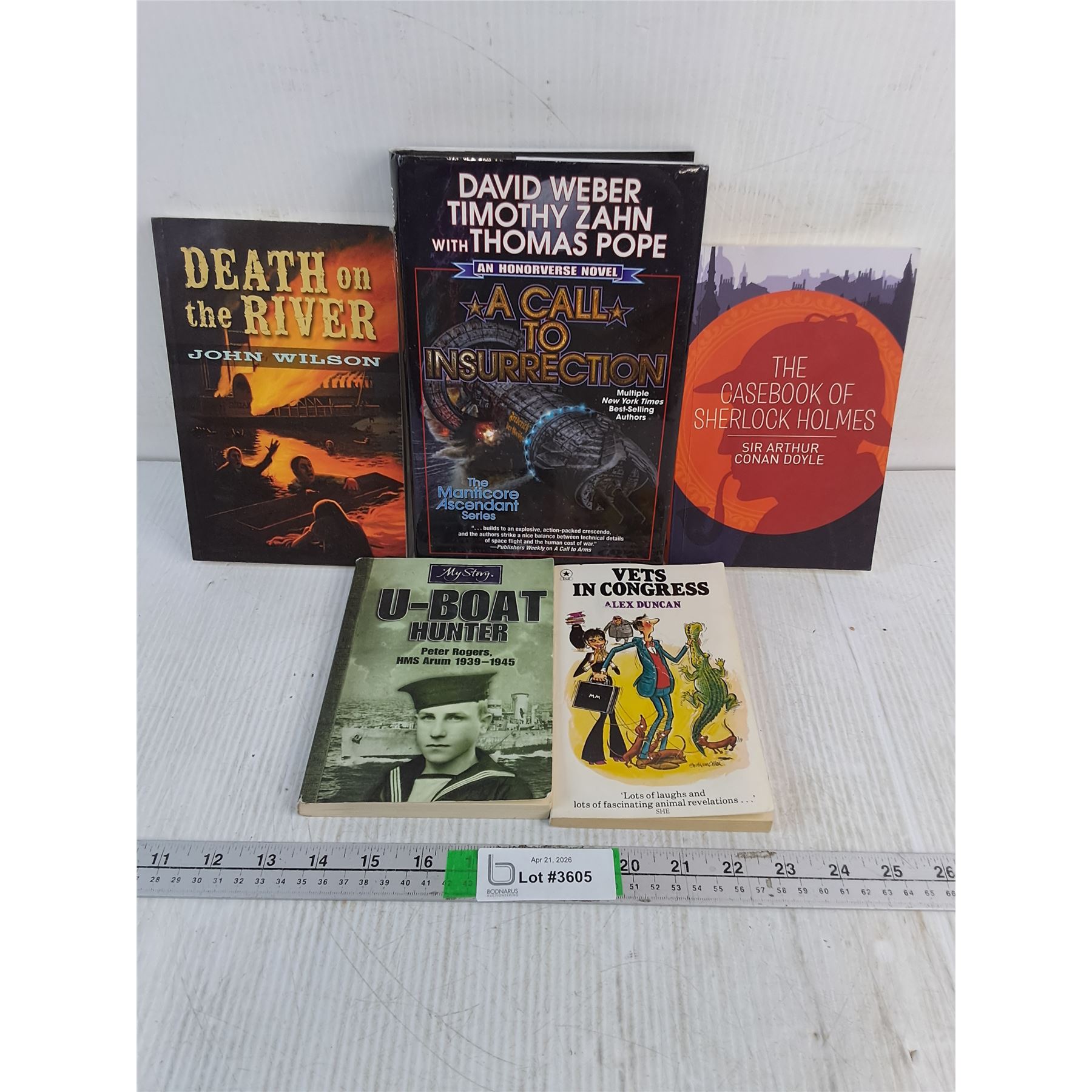 Lot 3605 (5) Books: Death on the River, U-Boat Hunter, Vets in Congress, Sherlock Holmes