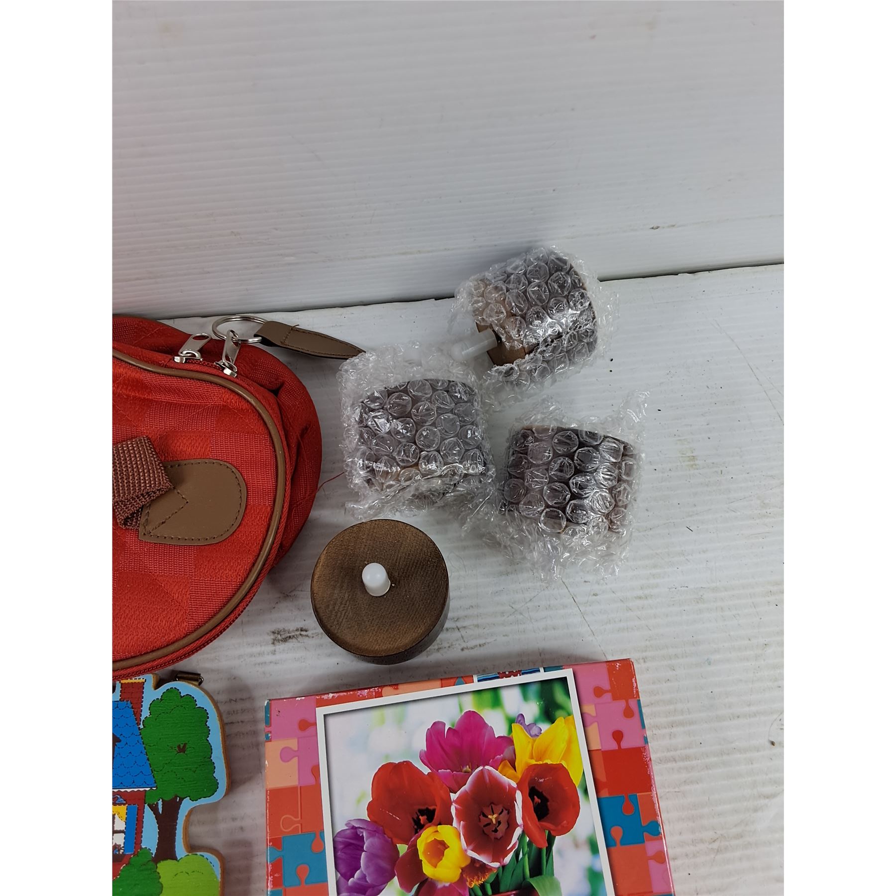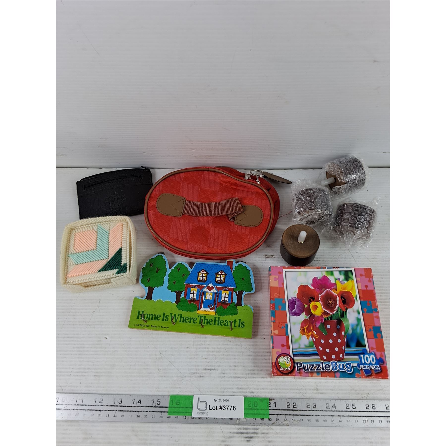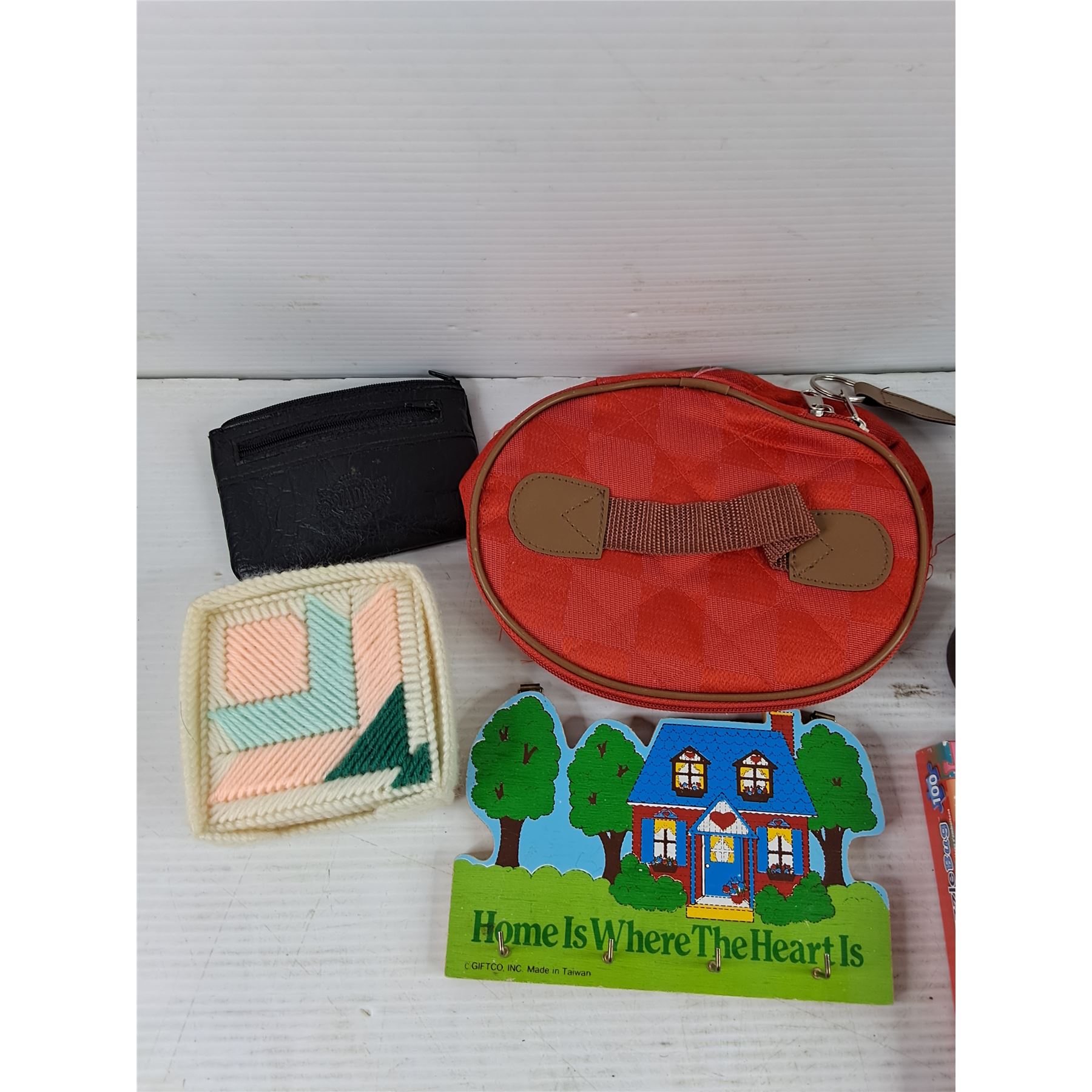 Lot 3776 Knitted Coasters, Wall Mounted Key Rack, Puzzle Bug, Coin Wallet, Make Up Bag, Misc