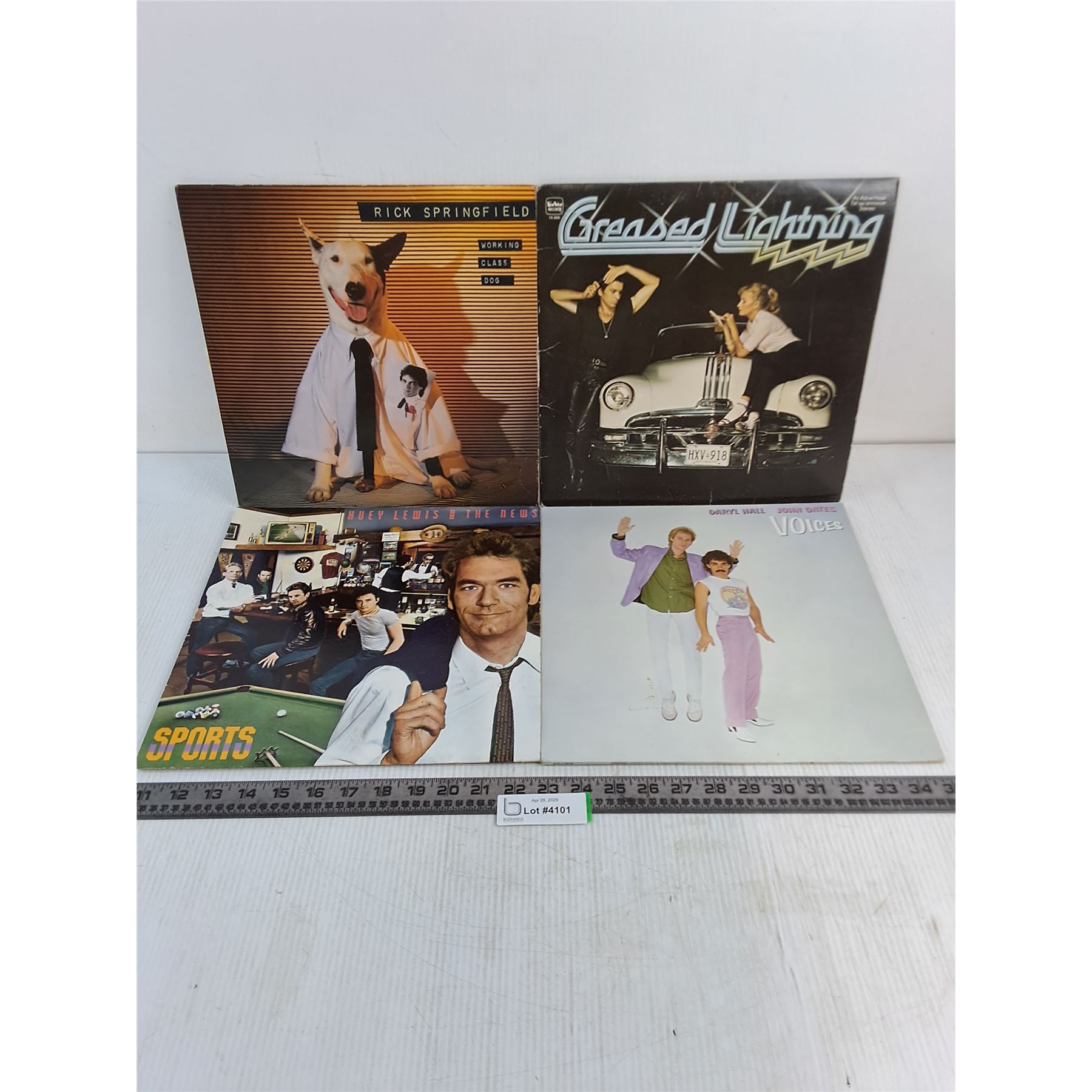Lot 4101 (4) Records (Rick Springfield, Greased Lightning, Huey Lewis, Hall & Oates)