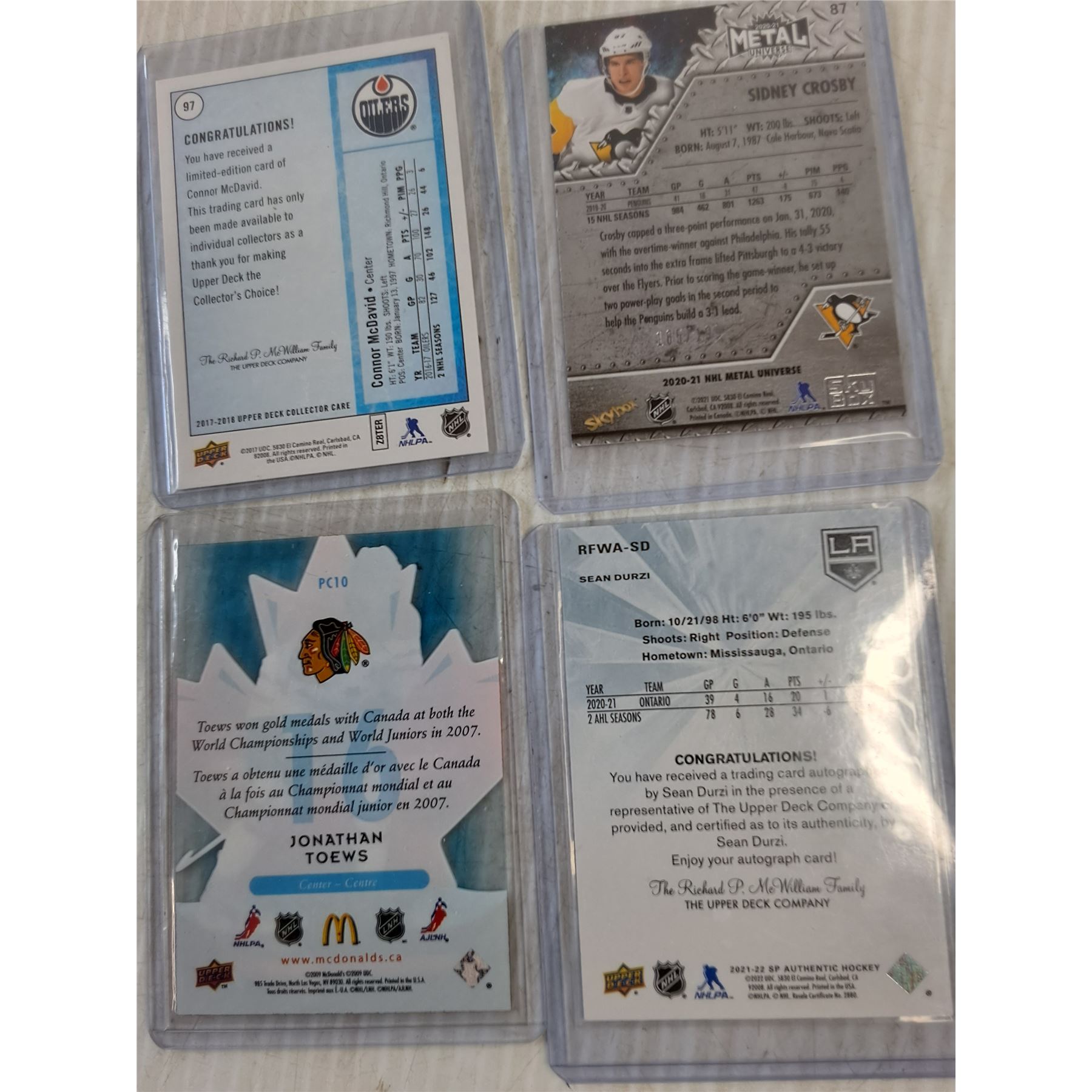 Lot 4329 (9) NFL & NHL Sports Cards-Bill Belichick, Connor McDavid, Jonathan Toews
