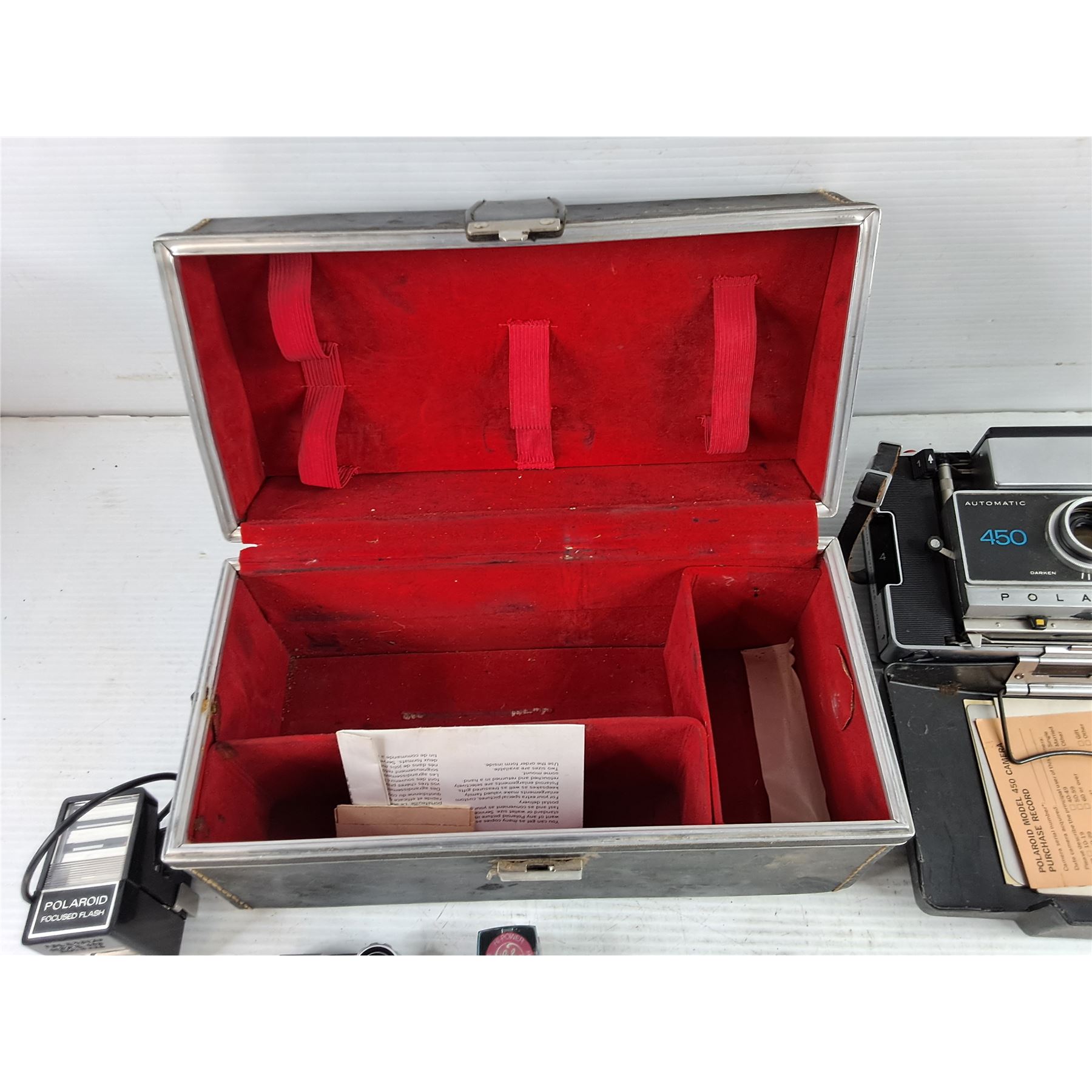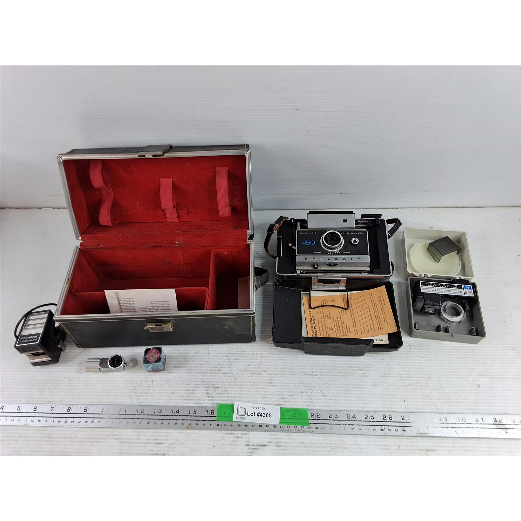 Lot 4365 Vintage Polaroid 450 Automatic Land Camera w/Accessories - As Is